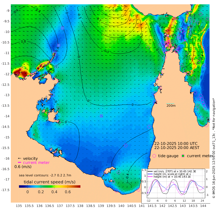 13cm/s -97T +3cm/s rms + 7cm/s -42T. ARA-GOC87 57m 10cm/s -125T +3cm/s rms + 2cm/s -2T. ARA-GOC87 60m 11cm/s -108T +2cm/s rms + 3cm/s 61T. ARA-GOC87 47m 14cm Daru 8cm Bobo Island 33cm Meer Island Barge 42cm Bramble Cay 34cm Unnamed Cay 19cm Pearce Cay 29cm Stephens Island 40cm Merrie England Shoals 26cm Mutacomal Reef 22cm Darnley Island Barge 40cm East Cay 11cm Yorke Island Barge 22cm Rennel Island 4cm Aureed Island 7cm Dungeness Reef -26cm Zagai Island -11cm Yam Island -23cm Dauan Island -32cm Saibai Island -15cm Phipi Reef -19cm Warrior Reef - West -16cm Mabuiag Island Barge 17cm Half Way Island 0cm Coconut Island 13cm Dugong Islet -6cm Poll Island 1cm Kirkcaldie Reef -18cm Suarji Island -13cm Sue Islet 27cm Hawkesbury Island -11cm Alert Patches -14cm Twin Island 18cm Badu Island -22cm St Pauls (Moa Island) 14cm Kubin (Moa Island) -8cm Ince Point -3cm Thursday Island -4cm Nardana Patches 14cm Turtle Head 15cm Round Island 30cm Goods Island 25cm Booby Island 34cm White Rocks Area -15cm Carpentaria -18cm Papou Point 17cm Bampfield Head 11cm Crab Island 22cm Red Wallis Island 22cm Packe Island 6cm Harrington Reef 23cm Herald Camp -15cm Sharp Point 7cm Red Island Point -11cm Possession Island -8cm Alpha Rock -6cm Frederick Point 14cm Wyborn Reef Light 7cm Tetley Island 23cm Triangle Reef 10cm Turtle Head Island 33cm Maclennan Cay 39cm Raine Island 25cm Mcsweeny Reef 27cm Collette Reef 33cm Shadwell Reef 34cm Hannibal Island 44cm Round Point -2cm Vrilya Point 41cm Cape Grenville 39cm Hicks Island 44cm Sir Charles Hardy Island 10cm Harvey Island 48cm Kay Reef 43cm Rocky Island 42cm Chapman Island 38cm Ham Reef 39cm Jubilee Reef 33cm Night Island 39cm Unnamed Reef No. 3 46cm Morris Island 41cm 1st 3 Mile Opening 39cm Creech Reef 41cm Fife Island 52cm Eden Reef 47cm Stanley Island 53cm Normanby River 126cm Yabooma Island 133cm Hutchison River 115cm Elcho Island 116cm North West Crocodile Island 42cm Cape Wessel 93cm Stevens Island 25cm Guluwuru Island 88cm Hopeful Bay 58cm Auster Point 58cm Two Island Bay 80cm Cadell Strait -19cm Mallison Island 33cm Melville Bay (Gove Harbour) 27cm Truant Island 10cm Cape Arnhem 11cm Cape Grey 7cm Hawk Island 2cm Milner Bay (Groote Eylandt) 9cm Cape Beatrice -4cm West Island -15cm Centre Island 19cm Mornington Island 23cm West Wellesley Islands 64cm Bountiful Island 69cm Albert River Mouth 56cm Sweers Island 62cm Karumba 38cm Nassau River Offshore 32cm Christmas Creek 24cm Archer River 11cm Boyd Point 30cm Weipa (Humbug Point) -5cm Pennefather River 4cm Cullen Point