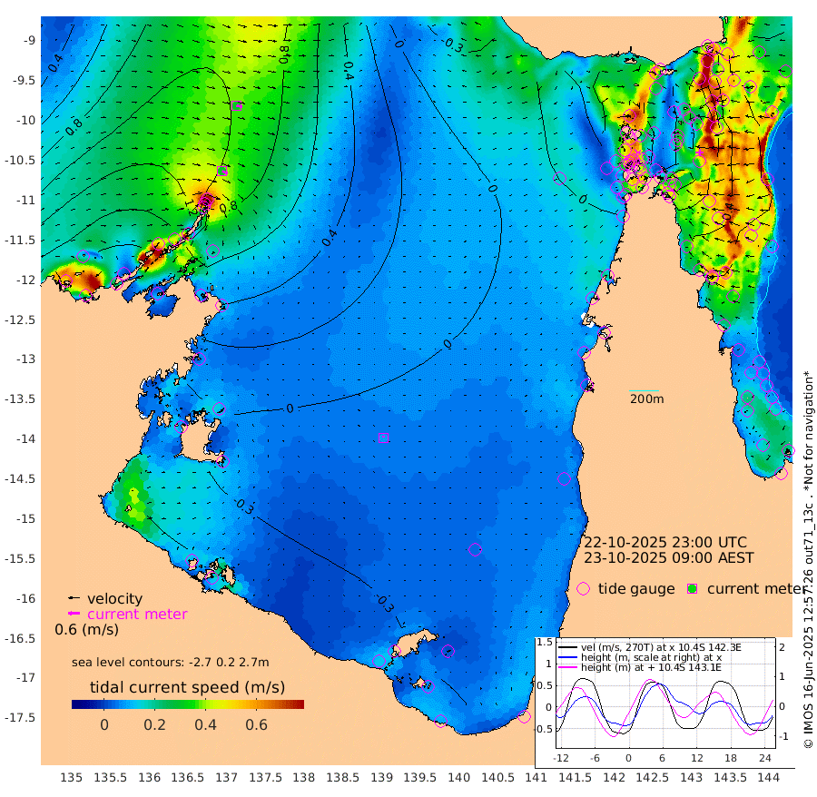 30cm/s 116T +3cm/s rms + 7cm/s -42T. ARA-GOC87 57m 8cm/s -11T +3cm/s rms + 2cm/s -2T. ARA-GOC87 60m 31cm/s 107T +2cm/s rms + 3cm/s 61T. ARA-GOC87 47m 43cm Daru 49cm Bobo Island 54cm Meer Island Barge 68cm Bramble Cay 60cm Unnamed Cay 57cm Pearce Cay 58cm Stephens Island 69cm Merrie England Shoals 49cm Mutacomal Reef 49cm Darnley Island Barge 63cm East Cay 40cm Yorke Island Barge 51cm Rennel Island 34cm Aureed Island 30cm Dungeness Reef -5cm Zagai Island -4cm Yam Island -34cm Dauan Island -40cm Saibai Island -9cm Phipi Reef -12cm Warrior Reef - West -12cm Mabuiag Island Barge 43cm Half Way Island 40cm Coconut Island 30cm Dugong Islet 15cm Poll Island 22cm Kirkcaldie Reef -5cm Suarji Island 7cm Sue Islet 47cm Hawkesbury Island 12cm Alert Patches 9cm Twin Island 37cm Badu Island -6cm St Pauls (Moa Island) 26cm Kubin (Moa Island) 6cm Ince Point 9cm Thursday Island 8cm Nardana Patches 23cm Turtle Head 43cm Round Island 41cm Goods Island 38cm Booby Island 41cm White Rocks Area 3cm Carpentaria 7cm Papou Point 63cm Bampfield Head 40cm Crab Island 30cm Red Wallis Island 30cm Packe Island 39cm Harrington Reef 33cm Herald Camp -14cm Sharp Point 30cm Red Island Point 26cm Possession Island 6cm Alpha Rock 23cm Frederick Point 51cm Wyborn Reef Light 43cm Tetley Island 43cm Triangle Reef 66cm Turtle Head Island 46cm Maclennan Cay 58cm Raine Island 52cm Mcsweeny Reef 56cm Collette Reef 54cm Shadwell Reef 64cm Hannibal Island 76cm Round Point 29cm Vrilya Point 61cm Cape Grenville 62cm Hicks Island 49cm Sir Charles Hardy Island 18cm Harvey Island 66cm Kay Reef 57cm Rocky Island 58cm Chapman Island 52cm Ham Reef 55cm Jubilee Reef 49cm Night Island 55cm Unnamed Reef No. 3 62cm Morris Island 56cm 1st 3 Mile Opening 55cm Creech Reef 58cm Fife Island 70cm Eden Reef 62cm Stanley Island 69cm Normanby River 171cm Yabooma Island 203cm Hutchison River 170cm Elcho Island 160cm North West Crocodile Island 102cm Cape Wessel 161cm Stevens Island 93cm Guluwuru Island 147cm Hopeful Bay 126cm Auster Point 120cm Two Island Bay 164cm Cadell Strait 79cm Mallison Island 90cm Melville Bay (Gove Harbour) 96cm Truant Island 54cm Cape Arnhem 29cm Cape Grey 18cm Hawk Island -19cm Milner Bay (Groote Eylandt) -29cm Cape Beatrice -78cm West Island -74cm Centre Island -61cm Mornington Island -71cm West Wellesley Islands -69cm Bountiful Island -62cm Albert River Mouth -57cm Sweers Island -52cm Karumba -46cm Nassau River Offshore -27cm Christmas Creek 10cm Archer River 5cm Boyd Point 13cm Weipa (Humbug Point) 27cm Pennefather River 13cm Cullen Point