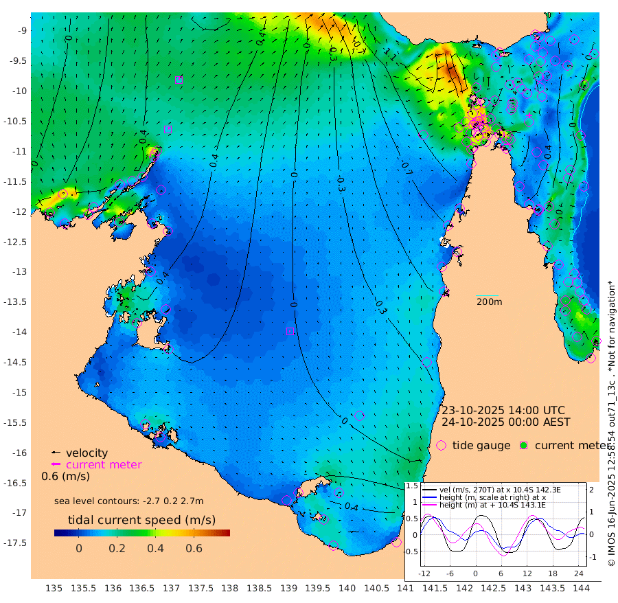 14cm/s 44T +3cm/s rms + 7cm/s -42T. ARA-GOC87 57m 6cm/s -95T +3cm/s rms + 2cm/s -2T. ARA-GOC87 60m 17cm/s 34T +2cm/s rms + 3cm/s 61T. ARA-GOC87 47m 43cm Daru 45cm Bobo Island -6cm Meer Island Barge 14cm Bramble Cay 28cm Unnamed Cay 31cm Pearce Cay 19cm Stephens Island 26cm Merrie England Shoals 45cm Mutacomal Reef 16cm Darnley Island Barge -6cm East Cay 29cm Yorke Island Barge 27cm Rennel Island 37cm Aureed Island 32cm Dungeness Reef 53cm Zagai Island 43cm Yam Island 38cm Dauan Island 43cm Saibai Island 33cm Phipi Reef 59cm Warrior Reef - West 1cm Mabuiag Island Barge 24cm Half Way Island 38cm Coconut Island 29cm Dugong Islet 39cm Poll Island 25cm Kirkcaldie Reef 30cm Suarji Island 35cm Sue Islet -96cm Hawkesbury Island 4cm Alert Patches 15cm Twin Island -68cm Badu Island 21cm St Pauls (Moa Island) -54cm Kubin (Moa Island) -11cm Ince Point -32cm Thursday Island -25cm Nardana Patches -55cm Turtle Head -77cm Round Island -97cm Goods Island -130cm Booby Island -113cm White Rocks Area -125cm Carpentaria 11cm Papou Point -143cm Bampfield Head -117cm Crab Island -111cm Red Wallis Island -70cm Packe Island 32cm Harrington Reef -114cm Herald Camp 15cm Sharp Point -57cm Red Island Point -31cm Possession Island 29cm Alpha Rock 26cm Frederick Point 44cm Wyborn Reef Light 45cm Tetley Island 4cm Triangle Reef 16cm Turtle Head Island -9cm Maclennan Cay -23cm Raine Island 23cm Mcsweeny Reef 17cm Collette Reef -5cm Shadwell Reef 20cm Hannibal Island 10cm Round Point -124cm Vrilya Point 0cm Cape Grenville -5cm Hicks Island -3cm Sir Charles Hardy Island -1cm Harvey Island -9cm Kay Reef -15cm Rocky Island -17cm Chapman Island -20cm Ham Reef -17cm Jubilee Reef -13cm Night Island -19cm Unnamed Reef No. 3 -17cm Morris Island -29cm 1st 3 Mile Opening -22cm Creech Reef -11cm Fife Island -19cm Eden Reef -22cm Stanley Island -15cm Normanby River 32cm Yabooma Island 60cm Hutchison River 49cm Elcho Island 48cm North West Crocodile Island 55cm Cape Wessel 62cm Stevens Island 79cm Guluwuru Island 46cm Hopeful Bay 41cm Auster Point 46cm Two Island Bay 76cm Cadell Strait 154cm Mallison Island 68cm Melville Bay (Gove Harbour) 67cm Truant Island 52cm Cape Arnhem 39cm Cape Grey 45cm Hawk Island 35cm Milner Bay (Groote Eylandt) 37cm Cape Beatrice 27cm West Island 19cm Centre Island 49cm Mornington Island 47cm West Wellesley Islands 60cm Bountiful Island 97cm Albert River Mouth 91cm Sweers Island 77cm Karumba 22cm Nassau River Offshore -13cm Christmas Creek -57cm Archer River -67cm Boyd Point -75cm Weipa (Humbug Point) -88cm Pennefather River -103cm Cullen Point