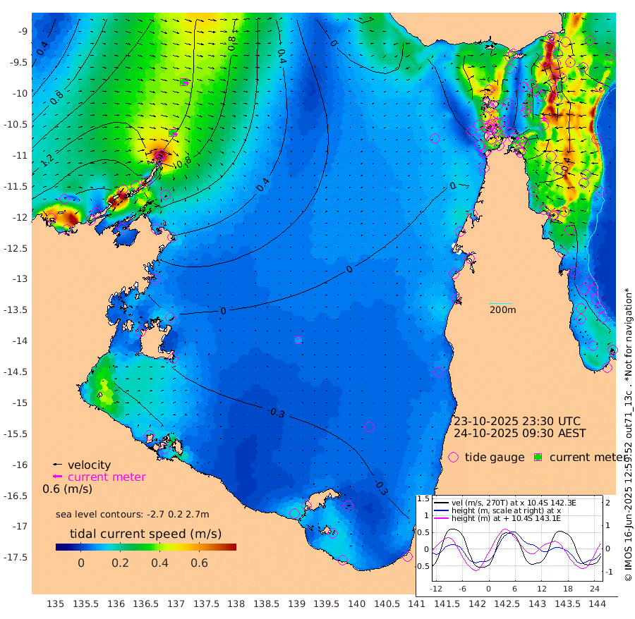 33cm/s 117T +3cm/s rms + 7cm/s -42T. ARA-GOC87 57m 8cm/s 0T +3cm/s rms + 2cm/s -2T. ARA-GOC87 60m 34cm/s 109T +2cm/s rms + 3cm/s 61T. ARA-GOC87 47m 49cm Daru 52cm Bobo Island 50cm Meer Island Barge 63cm Bramble Cay 61cm Unnamed Cay 57cm Pearce Cay 58cm Stephens Island 67cm Merrie England Shoals 53cm Mutacomal Reef 49cm Darnley Island Barge 57cm East Cay 43cm Yorke Island Barge 54cm Rennel Island 37cm Aureed Island 38cm Dungeness Reef 11cm Zagai Island 13cm Yam Island -14cm Dauan Island -23cm Saibai Island 7cm Phipi Reef 3cm Warrior Reef - West 4cm Mabuiag Island Barge 48cm Half Way Island 47cm Coconut Island 38cm Dugong Islet 28cm Poll Island 34cm Kirkcaldie Reef 11cm Suarji Island 18cm Sue Islet 64cm Hawkesbury Island 27cm Alert Patches 24cm Twin Island 53cm Badu Island 14cm St Pauls (Moa Island) 46cm Kubin (Moa Island) 23cm Ince Point 27cm Thursday Island 25cm Nardana Patches 39cm Turtle Head 62cm Round Island 56cm Goods Island 53cm Booby Island 55cm White Rocks Area 18cm Carpentaria 24cm Papou Point 83cm Bampfield Head 51cm Crab Island 44cm Red Wallis Island 46cm Packe Island 47cm Harrington Reef 54cm Herald Camp -9cm Sharp Point 40cm Red Island Point 43cm Possession Island 19cm Alpha Rock 35cm Frederick Point 58cm Wyborn Reef Light 52cm Tetley Island 41cm Triangle Reef 74cm Turtle Head Island 44cm Maclennan Cay 51cm Raine Island 52cm Mcsweeny Reef 54cm Collette Reef 49cm Shadwell Reef 61cm Hannibal Island 70cm Round Point 38cm Vrilya Point 56cm Cape Grenville 58cm Hicks Island 46cm Sir Charles Hardy Island 17cm Harvey Island 58cm Kay Reef 50cm Rocky Island 49cm Chapman Island 44cm Ham Reef 48cm Jubilee Reef 44cm Night Island 45cm Unnamed Reef No. 3 55cm Morris Island 52cm 1st 3 Mile Opening 48cm Creech Reef 49cm Fife Island 61cm Eden Reef 54cm Stanley Island 60cm Normanby River 178cm Yabooma Island 210cm Hutchison River 176cm Elcho Island 164cm North West Crocodile Island 107cm Cape Wessel 165cm Stevens Island 99cm Guluwuru Island 149cm Hopeful Bay 132cm Auster Point 129cm Two Island Bay 169cm Cadell Strait 70cm Mallison Island 94cm Melville Bay (Gove Harbour) 102cm Truant Island 57cm Cape Arnhem 28cm Cape Grey 16cm Hawk Island -23cm Milner Bay (Groote Eylandt) -36cm Cape Beatrice -88cm West Island -83cm Centre Island -78cm Mornington Island -89cm West Wellesley Islands -90cm Bountiful Island -85cm Albert River Mouth -84cm Sweers Island -76cm Karumba -61cm Nassau River Offshore -36cm Christmas Creek 5cm Archer River 7cm Boyd Point 14cm Weipa (Humbug Point) 29cm Pennefather River 23cm Cullen Point