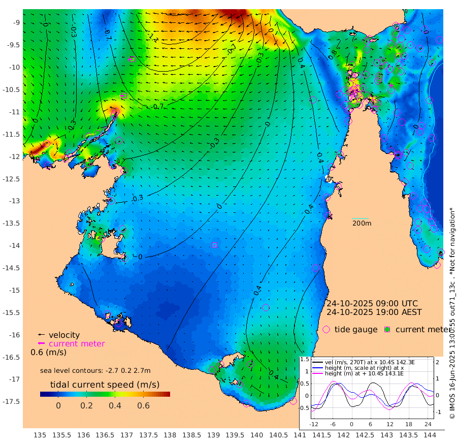 36cm/s -91T +3cm/s rms + 7cm/s -42T. ARA-GOC87 57m 12cm/s -156T +3cm/s rms + 2cm/s -2T. ARA-GOC87 60m 37cm/s -101T +2cm/s rms + 3cm/s 61T. ARA-GOC87 47m -17cm Daru -25cm Bobo Island 9cm Meer Island Barge 0cm Bramble Cay -7cm Unnamed Cay -11cm Pearce Cay -2cm Stephens Island -7cm Merrie England Shoals -17cm Mutacomal Reef -5cm Darnley Island Barge 12cm East Cay -13cm Yorke Island Barge -6cm Rennel Island -17cm Aureed Island -5cm Dungeness Reef -31cm Zagai Island -13cm Yam Island -7cm Dauan Island -18cm Saibai Island 4cm Phipi Reef -22cm Warrior Reef - West 8cm Mabuiag Island Barge -4cm Half Way Island -22cm Coconut Island -3cm Dugong Islet -15cm Poll Island -1cm Kirkcaldie Reef -4cm Suarji Island -17cm Sue Islet 70cm Hawkesbury Island 7cm Alert Patches -3cm Twin Island 53cm Badu Island -4cm St Pauls (Moa Island) 45cm Kubin (Moa Island) 17cm Ince Point 30cm Thursday Island 26cm Nardana Patches 50cm Turtle Head 49cm Round Island 75cm Goods Island 88cm Booby Island 84cm White Rocks Area 58cm Carpentaria -3cm Papou Point 70cm Bampfield Head 69cm Crab Island 77cm Red Wallis Island 57cm Packe Island -10cm Harrington Reef 79cm Herald Camp -6cm Sharp Point 48cm Red Island Point 18cm Possession Island -15cm Alpha Rock -9cm Frederick Point -27cm Wyborn Reef Light -29cm Tetley Island 0cm Triangle Reef -13cm Turtle Head Island 16cm Maclennan Cay 20cm Raine Island -6cm Mcsweeny Reef -5cm Collette Reef 7cm Shadwell Reef -6cm Hannibal Island 1cm Round Point 65cm Vrilya Point 9cm Cape Grenville 12cm Hicks Island 16cm Sir Charles Hardy Island 4cm Harvey Island 14cm Kay Reef 19cm Rocky Island 17cm Chapman Island 18cm Ham Reef 17cm Jubilee Reef 14cm Night Island 18cm Unnamed Reef No. 3 20cm Morris Island 26cm 1st 3 Mile Opening 21cm Creech Reef 15cm Fife Island 21cm Eden Reef 22cm Stanley Island 22cm Normanby River -24cm Yabooma Island -48cm Hutchison River -41cm Elcho Island -30cm North West Crocodile Island -77cm Cape Wessel -69cm Stevens Island -98cm Guluwuru Island -54cm Hopeful Bay -63cm Auster Point -65cm Two Island Bay -82cm Cadell Strait -224cm Mallison Island -79cm Melville Bay (Gove Harbour) -91cm Truant Island -65cm Cape Arnhem -33cm Cape Grey -32cm Hawk Island -11cm Milner Bay (Groote Eylandt) 4cm Cape Beatrice 32cm West Island 26cm Centre Island 43cm Mornington Island 48cm West Wellesley Islands 82cm Bountiful Island 58cm Albert River Mouth 52cm Sweers Island 70cm Karumba 68cm Nassau River Offshore 68cm Christmas Creek 63cm Archer River 55cm Boyd Point 73cm Weipa (Humbug Point) 45cm Pennefather River 62cm Cullen Point