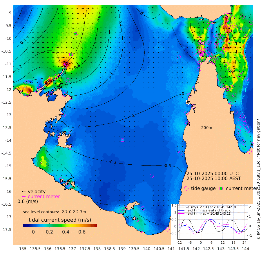 35cm/s 118T +3cm/s rms + 7cm/s -42T. ARA-GOC87 57m 8cm/s 9T +3cm/s rms + 2cm/s -2T. ARA-GOC87 60m 35cm/s 110T +2cm/s rms + 3cm/s 61T. ARA-GOC87 47m 50cm Daru 51cm Bobo Island 44cm Meer Island Barge 56cm Bramble Cay 57cm Unnamed Cay 54cm Pearce Cay 55cm Stephens Island 60cm Merrie England Shoals 51cm Mutacomal Reef 45cm Darnley Island Barge 49cm East Cay 42cm Yorke Island Barge 53cm Rennel Island 38cm Aureed Island 42cm Dungeness Reef 23cm Zagai Island 25cm Yam Island 3cm Dauan Island -10cm Saibai Island 19cm Phipi Reef 15cm Warrior Reef - West 17cm Mabuiag Island Barge 49cm Half Way Island 49cm Coconut Island 41cm Dugong Islet 36cm Poll Island 40cm Kirkcaldie Reef 23cm Suarji Island 24cm Sue Islet 73cm Hawkesbury Island 36cm Alert Patches 35cm Twin Island 63cm Badu Island 28cm St Pauls (Moa Island) 60cm Kubin (Moa Island) 35cm Ince Point 39cm Thursday Island 38cm Nardana Patches 50cm Turtle Head 74cm Round Island 66cm Goods Island 64cm Booby Island 65cm White Rocks Area 31cm Carpentaria 36cm Papou Point 95cm Bampfield Head 59cm Crab Island 55cm Red Wallis Island 58cm Packe Island 49cm Harrington Reef 67cm Herald Camp -5cm Sharp Point 45cm Red Island Point 53cm Possession Island 28cm Alpha Rock 41cm Frederick Point 59cm Wyborn Reef Light 55cm Tetley Island 37cm Triangle Reef 77cm Turtle Head Island 40cm Maclennan Cay 44cm Raine Island 49cm Mcsweeny Reef 48cm Collette Reef 42cm Shadwell Reef 55cm Hannibal Island 61cm Round Point 45cm Vrilya Point 49cm Cape Grenville 52cm Hicks Island 41cm Sir Charles Hardy Island 15cm Harvey Island 47cm Kay Reef 42cm Rocky Island 38cm Chapman Island 35cm Ham Reef 41cm Jubilee Reef 38cm Night Island 36cm Unnamed Reef No. 3 46cm Morris Island 46cm 1st 3 Mile Opening 41cm Creech Reef 39cm Fife Island 51cm Eden Reef 45cm Stanley Island 49cm Normanby River 179cm Yabooma Island 212cm Hutchison River 176cm Elcho Island 165cm North West Crocodile Island 110cm Cape Wessel 165cm Stevens Island 103cm Guluwuru Island 146cm Hopeful Bay 133cm Auster Point 134cm Two Island Bay 171cm Cadell Strait 59cm Mallison Island 97cm Melville Bay (Gove Harbour) 106cm Truant Island 60cm Cape Arnhem 27cm Cape Grey 13cm Hawk Island -26cm Milner Bay (Groote Eylandt) -41cm Cape Beatrice -94cm West Island -88cm Centre Island -91cm Mornington Island -102cm West Wellesley Islands -107cm Bountiful Island -102cm Albert River Mouth -106cm Sweers Island -96cm Karumba -73cm Nassau River Offshore -44cm Christmas Creek -1cm Archer River 8cm Boyd Point 14cm Weipa (Humbug Point) 30cm Pennefather River 30cm Cullen Point