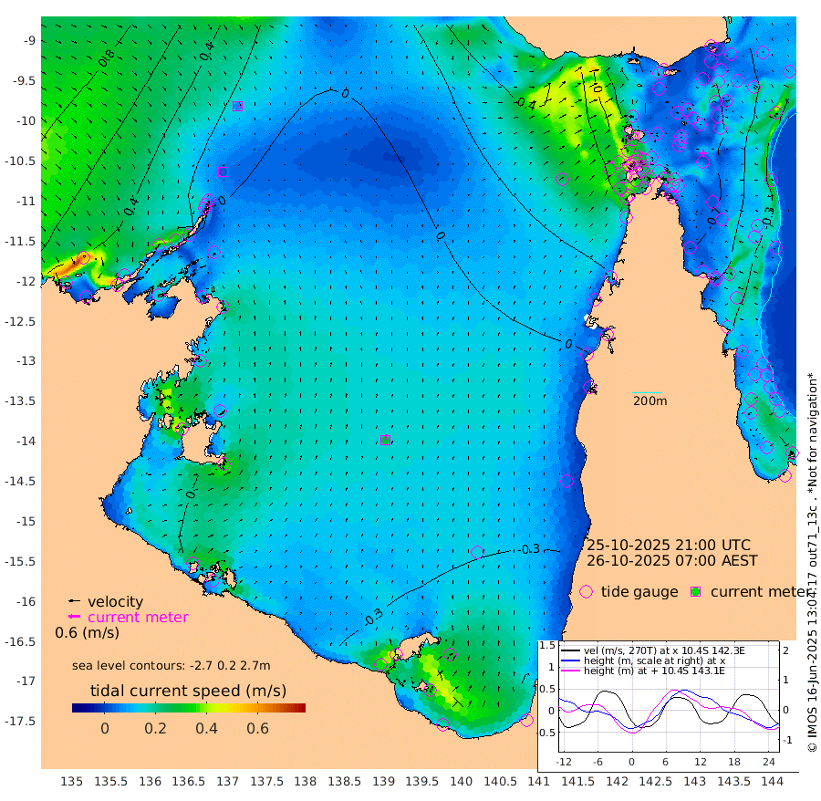 2cm/s -94T +3cm/s rms + 7cm/s -42T. ARA-GOC87 57m 26cm/s 7T +3cm/s rms + 2cm/s -2T. ARA-GOC87 60m 7cm/s 149T +2cm/s rms + 3cm/s 61T. ARA-GOC87 47m -83cm Daru -75cm Bobo Island -33cm Meer Island Barge -49cm Bramble Cay -67cm Unnamed Cay -66cm Pearce Cay -53cm Stephens Island -60cm Merrie England Shoals -80cm Mutacomal Reef -57cm Darnley Island Barge -33cm East Cay -70cm Yorke Island Barge -63cm Rennel Island -71cm Aureed Island -80cm Dungeness Reef -100cm Zagai Island -92cm Yam Island -122cm Dauan Island -121cm Saibai Island -131cm Phipi Reef -117cm Warrior Reef - West -75cm Mabuiag Island Barge -57cm Half Way Island -76cm Coconut Island -67cm Dugong Islet -79cm Poll Island -75cm Kirkcaldie Reef -87cm Suarji Island -87cm Sue Islet -19cm Hawkesbury Island -73cm Alert Patches -71cm Twin Island -41cm Badu Island -80cm St Pauls (Moa Island) -33cm Kubin (Moa Island) -58cm Ince Point -45cm Thursday Island -51cm Nardana Patches -38cm Turtle Head -22cm Round Island -10cm Goods Island 18cm Booby Island 17cm White Rocks Area 45cm Carpentaria -61cm Papou Point 20cm Bampfield Head 23cm Crab Island 16cm Red Wallis Island -20cm Packe Island -65cm Harrington Reef -8cm Herald Camp -29cm Sharp Point -32cm Red Island Point -46cm Possession Island -68cm Alpha Rock -72cm Frederick Point -77cm Wyborn Reef Light -79cm Tetley Island -41cm Triangle Reef -59cm Turtle Head Island -30cm Maclennan Cay -18cm Raine Island -59cm Mcsweeny Reef -57cm Collette Reef -39cm Shadwell Reef -60cm Hannibal Island -45cm Round Point 36cm Vrilya Point -38cm Cape Grenville -35cm Hicks Island -46cm Sir Charles Hardy Island -11cm Harvey Island -31cm Kay Reef -28cm Rocky Island -27cm Chapman Island -22cm Ham Reef -25cm Jubilee Reef -21cm Night Island -20cm Unnamed Reef No. 3 -23cm Morris Island -18cm 1st 3 Mile Opening -21cm Creech Reef -19cm Fife Island -24cm Eden Reef -20cm Stanley Island -20cm Normanby River 38cm Yabooma Island 23cm Hutchison River 36cm Elcho Island 35cm North West Crocodile Island 14cm Cape Wessel 21cm Stevens Island -35cm Guluwuru Island 19cm Hopeful Bay 20cm Auster Point 24cm Two Island Bay -5cm Cadell Strait -133cm Mallison Island -25cm Melville Bay (Gove Harbour) -21cm Truant Island -21cm Cape Arnhem -17cm Cape Grey -18cm Hawk Island 8cm Milner Bay (Groote Eylandt) 4cm Cape Beatrice 13cm West Island 17cm Centre Island -43cm Mornington Island -39cm West Wellesley Islands -74cm Bountiful Island -54cm Albert River Mouth -51cm Sweers Island -59cm Karumba -60cm Nassau River Offshore -58cm Christmas Creek -27cm Archer River -14cm Boyd Point -17cm Weipa (Humbug Point) 14cm Pennefather River 17cm Cullen Point