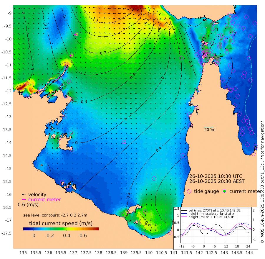 38cm/s -91T +3cm/s rms + 7cm/s -42T. ARA-GOC87 57m 16cm/s -145T +3cm/s rms + 2cm/s -2T. ARA-GOC87 60m 38cm/s -98T +2cm/s rms + 3cm/s 61T. ARA-GOC87 47m 13cm Daru 8cm Bobo Island 12cm Meer Island Barge 12cm Bramble Cay 12cm Unnamed Cay 19cm Pearce Cay 17cm Stephens Island 10cm Merrie England Shoals 10cm Mutacomal Reef 8cm Darnley Island Barge 19cm East Cay 8cm Yorke Island Barge 20cm Rennel Island 12cm Aureed Island 27cm Dungeness Reef 4cm Zagai Island 21cm Yam Island 25cm Dauan Island 7cm Saibai Island 49cm Phipi Reef 19cm Warrior Reef - West 27cm Mabuiag Island Barge 19cm Half Way Island 12cm Coconut Island 23cm Dugong Islet 19cm Poll Island 29cm Kirkcaldie Reef 34cm Suarji Island 10cm Sue Islet 74cm Hawkesbury Island 36cm Alert Patches 28cm Twin Island 61cm Badu Island 29cm St Pauls (Moa Island) 59cm Kubin (Moa Island) 39cm Ince Point 46cm Thursday Island 44cm Nardana Patches 62cm Turtle Head 60cm Round Island 74cm Goods Island 74cm Booby Island 74cm White Rocks Area 28cm Carpentaria 25cm Papou Point 58cm Bampfield Head 58cm Crab Island 67cm Red Wallis Island 66cm Packe Island 23cm Harrington Reef 79cm Herald Camp 4cm Sharp Point 62cm Red Island Point 43cm Possession Island 9cm Alpha Rock 23cm Frederick Point 3cm Wyborn Reef Light 3cm Tetley Island 10cm Triangle Reef 16cm Turtle Head Island 20cm Maclennan Cay 16cm Raine Island 12cm Mcsweeny Reef 9cm Collette Reef 9cm Shadwell Reef 9cm Hannibal Island 15cm Round Point 45cm Vrilya Point 16cm Cape Grenville 20cm Hicks Island 18cm Sir Charles Hardy Island 6cm Harvey Island 14cm Kay Reef 19cm Rocky Island 14cm Chapman Island 13cm Ham Reef 14cm Jubilee Reef 15cm Night Island 14cm Unnamed Reef No. 3 19cm Morris Island 19cm 1st 3 Mile Opening 18cm Creech Reef 16cm Fife Island 16cm Eden Reef 17cm Stanley Island 21cm Normanby River -4cm Yabooma Island -13cm Hutchison River -14cm Elcho Island -2cm North West Crocodile Island -68cm Cape Wessel -49cm Stevens Island -90cm Guluwuru Island -36cm Hopeful Bay -49cm Auster Point -49cm Two Island Bay -54cm Cadell Strait -254cm Mallison Island -66cm Melville Bay (Gove Harbour) -80cm Truant Island -57cm Cape Arnhem -27cm Cape Grey -18cm Hawk Island -8cm Milner Bay (Groote Eylandt) 10cm Cape Beatrice 31cm West Island 27cm Centre Island 64cm Mornington Island 60cm West Wellesley Islands 105cm Bountiful Island 91cm Albert River Mouth 89cm Sweers Island 110cm Karumba 86cm Nassau River Offshore 77cm Christmas Creek 60cm Archer River 46cm Boyd Point 65cm Weipa (Humbug Point) 35cm Pennefather River 47cm Cullen Point