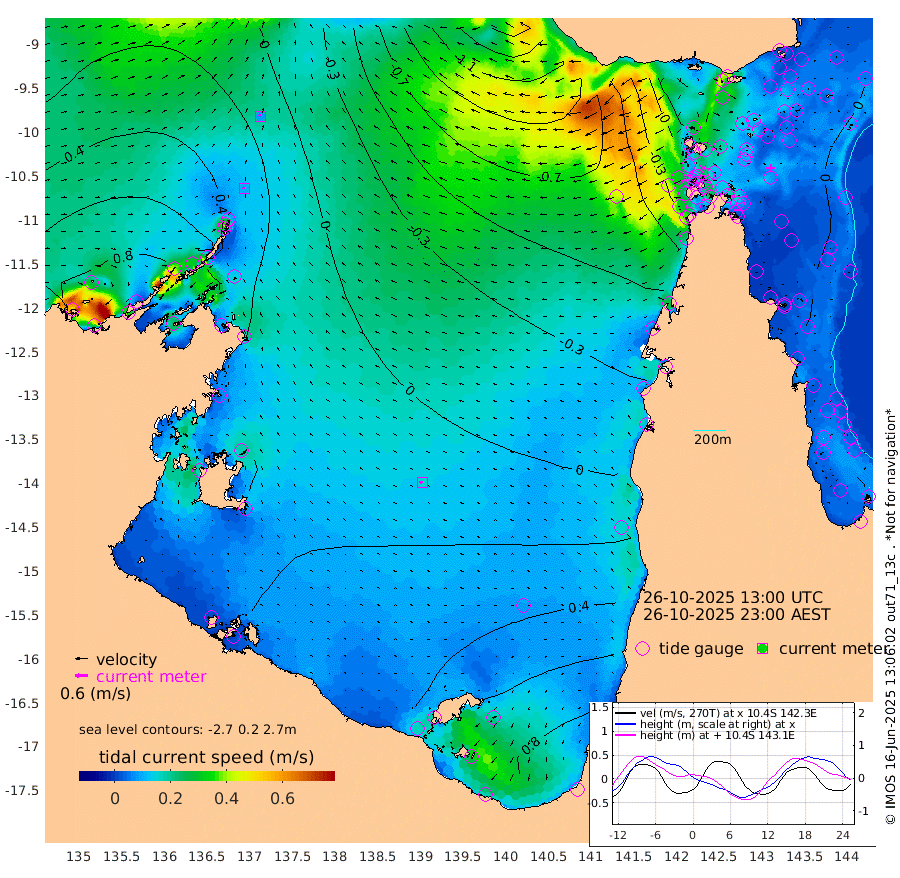 9cm/s -70T +3cm/s rms + 7cm/s -42T. ARA-GOC87 57m 15cm/s -100T +3cm/s rms + 2cm/s -2T. ARA-GOC87 60m 8cm/s -39T +2cm/s rms + 3cm/s 61T. ARA-GOC87 47m 22cm Daru 16cm Bobo Island -3cm Meer Island Barge 6cm Bramble Cay 12cm Unnamed Cay 17cm Pearce Cay 8cm Stephens Island 7cm Merrie England Shoals 15cm Mutacomal Reef 4cm Darnley Island Barge -3cm East Cay 10cm Yorke Island Barge 13cm Rennel Island 11cm Aureed Island 25cm Dungeness Reef 25cm Zagai Island 26cm Yam Island 42cm Dauan Island 27cm Saibai Island 63cm Phipi Reef 38cm Warrior Reef - West 12cm Mabuiag Island Barge 11cm Half Way Island 12cm Coconut Island 14cm Dugong Islet 19cm Poll Island 19cm Kirkcaldie Reef 21cm Suarji Island 14cm Sue Islet -16cm Hawkesbury Island 9cm Alert Patches 7cm Twin Island 0cm Badu Island 15cm St Pauls (Moa Island) -6cm Kubin (Moa Island) 3cm Ince Point -5cm Thursday Island -1cm Nardana Patches -4cm Turtle Head -17cm Round Island -19cm Goods Island -44cm Booby Island -37cm White Rocks Area -91cm Carpentaria 10cm Papou Point -67cm Bampfield Head -41cm Crab Island -46cm Red Wallis Island -22cm Packe Island 10cm Harrington Reef -35cm Herald Camp 6cm Sharp Point -2cm Red Island Point -3cm Possession Island 0cm Alpha Rock 9cm Frederick Point 10cm Wyborn Reef Light 9cm Tetley Island -4cm Triangle Reef 10cm Turtle Head Island -4cm Maclennan Cay -8cm Raine Island 6cm Mcsweeny Reef 3cm Collette Reef -4cm Shadwell Reef 5cm Hannibal Island 2cm Round Point -59cm Vrilya Point -4cm Cape Grenville 0cm Hicks Island -5cm Sir Charles Hardy Island -1cm Harvey Island -9cm Kay Reef -5cm Rocky Island -13cm Chapman Island -15cm Ham Reef -8cm Jubilee Reef -9cm Night Island -17cm Unnamed Reef No. 3 -6cm Morris Island -8cm 1st 3 Mile Opening -10cm Creech Reef -12cm Fife Island -7cm Eden Reef -12cm Stanley Island -7cm Normanby River 88cm Yabooma Island 116cm Hutchison River 94cm Elcho Island 100cm North West Crocodile Island 18cm Cape Wessel 66cm Stevens Island 31cm Guluwuru Island 58cm Hopeful Bay 38cm Auster Point 42cm Two Island Bay 85cm Cadell Strait -70cm Mallison Island 35cm Melville Bay (Gove Harbour) 24cm Truant Island 17cm Cape Arnhem 32cm Cape Grey 34cm Hawk Island 30cm Milner Bay (Groote Eylandt) 39cm Cape Beatrice 32cm West Island 25cm Centre Island 83cm Mornington Island 75cm West Wellesley Islands 134cm Bountiful Island 168cm Albert River Mouth 165cm Sweers Island 164cm Karumba 73cm Nassau River Offshore 37cm Christmas Creek 0cm Archer River -23cm Boyd Point -10cm Weipa (Humbug Point) -36cm Pennefather River -50cm Cullen Point