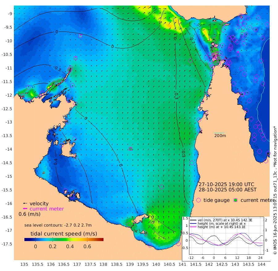 17cm/s 9T +3cm/s rms + 7cm/s -42T. ARA-GOC87 57m 25cm/s 5T +3cm/s rms + 2cm/s -2T. ARA-GOC87 60m 17cm/s 23T +2cm/s rms + 3cm/s 61T. ARA-GOC87 47m -68cm Daru -59cm Bobo Island -43cm Meer Island Barge -47cm Bramble Cay -58cm Unnamed Cay -65cm Pearce Cay -57cm Stephens Island -49cm Merrie England Shoals -60cm Mutacomal Reef -50cm Darnley Island Barge -44cm East Cay -56cm Yorke Island Barge -64cm Rennel Island -59cm Aureed Island -82cm Dungeness Reef -78cm Zagai Island -89cm Yam Island -114cm Dauan Island -85cm Saibai Island -127cm Phipi Reef -93cm Warrior Reef - West -92cm Mabuiag Island Barge -64cm Half Way Island -69cm Coconut Island -70cm Dugong Islet -80cm Poll Island -82cm Kirkcaldie Reef -94cm Suarji Island -67cm Sue Islet -150cm Hawkesbury Island -97cm Alert Patches -93cm Twin Island -141cm Badu Island -100cm St Pauls (Moa Island) -138cm Kubin (Moa Island) -105cm Ince Point -112cm Thursday Island -111cm Nardana Patches -130cm Turtle Head -140cm Round Island -144cm Goods Island -140cm Booby Island -132cm White Rocks Area -80cm Carpentaria -88cm Papou Point -150cm Bampfield Head -112cm Crab Island -129cm Red Wallis Island -141cm Packe Island -69cm Harrington Reef -161cm Herald Camp -18cm Sharp Point -109cm Red Island Point -109cm Possession Island -68cm Alpha Rock -82cm Frederick Point -64cm Wyborn Reef Light -67cm Tetley Island -46cm Triangle Reef -79cm Turtle Head Island -48cm Maclennan Cay -39cm Raine Island -53cm Mcsweeny Reef -46cm Collette Reef -40cm Shadwell Reef -49cm Hannibal Island -50cm Round Point -89cm Vrilya Point -44cm Cape Grenville -50cm Hicks Island -54cm Sir Charles Hardy Island -15cm Harvey Island -35cm Kay Reef -41cm Rocky Island -35cm Chapman Island -32cm Ham Reef -37cm Jubilee Reef -38cm Night Island -32cm Unnamed Reef No. 3 -41cm Morris Island -46cm 1st 3 Mile Opening -40cm Creech Reef -32cm Fife Island -42cm Eden Reef -37cm Stanley Island -37cm Normanby River -67cm Yabooma Island -82cm Hutchison River -56cm Elcho Island -56cm North West Crocodile Island -7cm Cape Wessel -32cm Stevens Island -11cm Guluwuru Island -30cm Hopeful Bay -25cm Auster Point -32cm Two Island Bay -51cm Cadell Strait 89cm Mallison Island -14cm Melville Bay (Gove Harbour) -14cm Truant Island -3cm Cape Arnhem 15cm Cape Grey 18cm Hawk Island 53cm Milner Bay (Groote Eylandt) 50cm Cape Beatrice 76cm West Island 75cm Centre Island 38cm Mornington Island 50cm West Wellesley Islands 24cm Bountiful Island 53cm Albert River Mouth 73cm Sweers Island 34cm Karumba -15cm Nassau River Offshore -50cm Christmas Creek -64cm Archer River -72cm Boyd Point -89cm Weipa (Humbug Point) -61cm Pennefather River -92cm Cullen Point