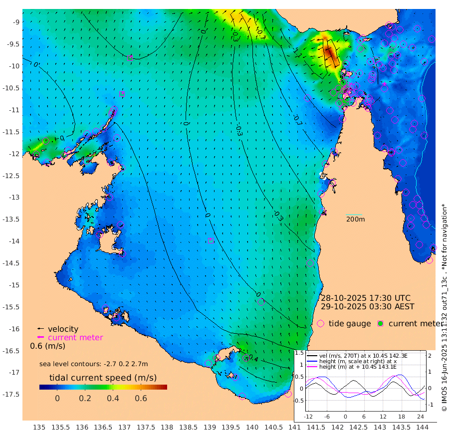 20cm/s 32T +3cm/s rms + 7cm/s -42T. ARA-GOC87 57m 17cm/s -20T +3cm/s rms + 2cm/s -2T. ARA-GOC87 60m 26cm/s 34T +2cm/s rms + 3cm/s 61T. ARA-GOC87 47m -47cm Daru -43cm Bobo Island -26cm Meer Island Barge -30cm Bramble Cay -39cm Unnamed Cay -49cm Pearce Cay -42cm Stephens Island -35cm Merrie England Shoals -47cm Mutacomal Reef -30cm Darnley Island Barge -33cm East Cay -36cm Yorke Island Barge -52cm Rennel Island -46cm Aureed Island -62cm Dungeness Reef -58cm Zagai Island -74cm Yam Island -74cm Dauan Island -56cm Saibai Island -73cm Phipi Reef -65cm Warrior Reef - West -86cm Mabuiag Island Barge -53cm Half Way Island -62cm Coconut Island -59cm Dugong Islet -70cm Poll Island -72cm Kirkcaldie Reef -90cm Suarji Island -53cm Sue Islet -164cm Hawkesbury Island -96cm Alert Patches -96cm Twin Island -145cm Badu Island -97cm St Pauls (Moa Island) -148cm Kubin (Moa Island) -111cm Ince Point -124cm Thursday Island -120cm Nardana Patches -139cm Turtle Head -150cm Round Island -163cm Goods Island -176cm Booby Island -173cm White Rocks Area -146cm Carpentaria -90cm Papou Point -189cm Bampfield Head -145cm Crab Island -173cm Red Wallis Island -165cm Packe Island -68cm Harrington Reef -180cm Herald Camp -16cm Sharp Point -121cm Red Island Point -112cm Possession Island -73cm Alpha Rock -82cm Frederick Point -54cm Wyborn Reef Light -59cm Tetley Island -35cm Triangle Reef -66cm Turtle Head Island -39cm Maclennan Cay -29cm Raine Island -40cm Mcsweeny Reef -31cm Collette Reef -24cm Shadwell Reef -30cm Hannibal Island -37cm Round Point -130cm Vrilya Point -34cm Cape Grenville -36cm Hicks Island -40cm Sir Charles Hardy Island -11cm Harvey Island -27cm Kay Reef -27cm Rocky Island -27cm Chapman Island -25cm Ham Reef -25cm Jubilee Reef -30cm Night Island -28cm Unnamed Reef No. 3 -29cm Morris Island -32cm 1st 3 Mile Opening -30cm Creech Reef -27cm Fife Island -25cm Eden Reef -26cm Stanley Island -27cm Normanby River -16cm Yabooma Island -12cm Hutchison River -4cm Elcho Island -5cm North West Crocodile Island 13cm Cape Wessel 14cm Stevens Island 42cm Guluwuru Island 14cm Hopeful Bay 10cm Auster Point 7cm Two Island Bay 23cm Cadell Strait 154cm Mallison Island 33cm Melville Bay (Gove Harbour) 28cm Truant Island 29cm Cape Arnhem 45cm Cape Grey 47cm Hawk Island 63cm Milner Bay (Groote Eylandt) 61cm Cape Beatrice 69cm West Island 67cm Centre Island 78cm Mornington Island 83cm West Wellesley Islands 93cm Bountiful Island 133cm Albert River Mouth 159cm Sweers Island 115cm Karumba 24cm Nassau River Offshore -24cm Christmas Creek -59cm Archer River -80cm Boyd Point -90cm Weipa (Humbug Point) -79cm Pennefather River -124cm Cullen Point