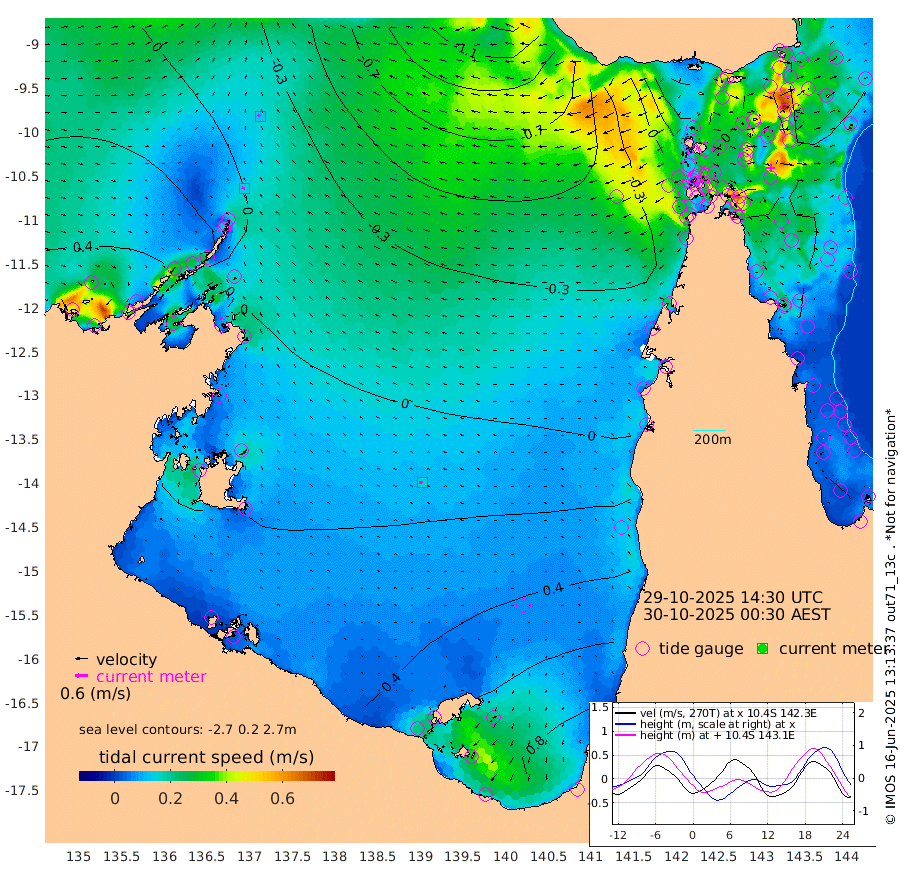 14cm/s -77T +3cm/s rms + 7cm/s -42T. ARA-GOC87 57m 16cm/s -98T +3cm/s rms + 2cm/s -2T. ARA-GOC87 60m 12cm/s -57T +2cm/s rms + 3cm/s 61T. ARA-GOC87 47m -48cm Daru -50cm Bobo Island -41cm Meer Island Barge -54cm Bramble Cay -60cm Unnamed Cay -46cm Pearce Cay -55cm Stephens Island -69cm Merrie England Shoals -63cm Mutacomal Reef -51cm Darnley Island Barge -50cm East Cay -48cm Yorke Island Barge -54cm Rennel Island -44cm Aureed Island -31cm Dungeness Reef -16cm Zagai Island -21cm Yam Island 31cm Dauan Island 11cm Saibai Island 45cm Phipi Reef -3cm Warrior Reef - West -7cm Mabuiag Island Barge -53cm Half Way Island -50cm Coconut Island -50cm Dugong Islet -34cm Poll Island -41cm Kirkcaldie Reef -18cm Suarji Island -37cm Sue Islet -25cm Hawkesbury Island -31cm Alert Patches -35cm Twin Island -13cm Badu Island -22cm St Pauls (Moa Island) -20cm Kubin (Moa Island) -26cm Ince Point -27cm Thursday Island -24cm Nardana Patches -19cm Turtle Head -22cm Round Island -24cm Goods Island -35cm Booby Island -40cm White Rocks Area -70cm Carpentaria -28cm Papou Point -57cm Bampfield Head -31cm Crab Island -40cm Red Wallis Island -29cm Packe Island -60cm Harrington Reef -25cm Herald Camp -3cm Sharp Point -21cm Red Island Point -23cm Possession Island -48cm Alpha Rock -46cm Frederick Point -64cm Wyborn Reef Light -61cm Tetley Island -38cm Triangle Reef -61cm Turtle Head Island -43cm Maclennan Cay -38cm Raine Island -57cm Mcsweeny Reef -55cm Collette Reef -44cm Shadwell Reef -60cm Hannibal Island -60cm Round Point -42cm Vrilya Point -58cm Cape Grenville -47cm Hicks Island -52cm Sir Charles Hardy Island -16cm Harvey Island -60cm Kay Reef -42cm Rocky Island -44cm Chapman Island -45cm Ham Reef -44cm Jubilee Reef -38cm Night Island -49cm Unnamed Reef No. 3 -46cm Morris Island -39cm 1st 3 Mile Opening -44cm Creech Reef -48cm Fife Island -46cm Eden Reef -51cm Stanley Island -54cm Normanby River 33cm Yabooma Island 49cm Hutchison River 43cm Elcho Island 48cm North West Crocodile Island -21cm Cape Wessel 10cm Stevens Island -15cm Guluwuru Island 16cm Hopeful Bay 0cm Auster Point 6cm Two Island Bay 30cm Cadell Strait -128cm Mallison Island -3cm Melville Bay (Gove Harbour) -14cm Truant Island -5cm Cape Arnhem 10cm Cape Grey 27cm Hawk Island 28cm Milner Bay (Groote Eylandt) 37cm Cape Beatrice 40cm West Island 41cm Centre Island 93cm Mornington Island 82cm West Wellesley Islands 129cm Bountiful Island 170cm Albert River Mouth 177cm Sweers Island 172cm Karumba 78cm Nassau River Offshore 43cm Christmas Creek 9cm Archer River -11cm Boyd Point 1cm Weipa (Humbug Point) -21cm Pennefather River -29cm Cullen Point