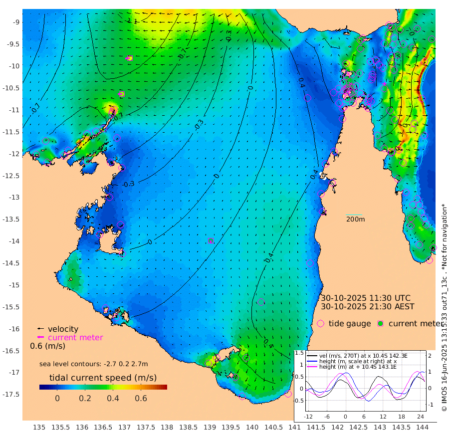 39cm/s -92T +3cm/s rms + 7cm/s -42T. ARA-GOC87 57m 23cm/s -172T +3cm/s rms + 2cm/s -2T. ARA-GOC87 60m 44cm/s -97T +2cm/s rms + 3cm/s 61T. ARA-GOC87 47m 49cm Daru 38cm Bobo Island -9cm Meer Island Barge 7cm Bramble Cay 27cm Unnamed Cay 35cm Pearce Cay 21cm Stephens Island 27cm Merrie England Shoals 53cm Mutacomal Reef 8cm Darnley Island Barge -1cm East Cay 25cm Yorke Island Barge 42cm Rennel Island 40cm Aureed Island 60cm Dungeness Reef 69cm Zagai Island 81cm Yam Island 92cm Dauan Island 78cm Saibai Island 102cm Phipi Reef 88cm Warrior Reef - West 82cm Mabuiag Island Barge 40cm Half Way Island 59cm Coconut Island 52cm Dugong Islet 74cm Poll Island 71cm Kirkcaldie Reef 96cm Suarji Island 60cm Sue Islet 91cm Hawkesbury Island 94cm Alert Patches 91cm Twin Island 87cm Badu Island 97cm St Pauls (Moa Island) 93cm Kubin (Moa Island) 94cm Ince Point 94cm Thursday Island 95cm Nardana Patches 95cm Turtle Head 87cm Round Island 86cm Goods Island 81cm Booby Island 84cm White Rocks Area 53cm Carpentaria 77cm Papou Point 69cm Bampfield Head 67cm Crab Island 92cm Red Wallis Island 108cm Packe Island 62cm Harrington Reef 96cm Herald Camp 32cm Sharp Point 82cm Red Island Point 82cm Possession Island 78cm Alpha Rock 79cm Frederick Point 52cm Wyborn Reef Light 60cm Tetley Island 12cm Triangle Reef 39cm Turtle Head Island 4cm Maclennan Cay -13cm Raine Island 27cm Mcsweeny Reef 18cm Collette Reef -1cm Shadwell Reef 16cm Hannibal Island 13cm Round Point 57cm Vrilya Point 10cm Cape Grenville 2cm Hicks Island 3cm Sir Charles Hardy Island 2cm Harvey Island -3cm Kay Reef -8cm Rocky Island -9cm Chapman Island -12cm Ham Reef -13cm Jubilee Reef -1cm Night Island -7cm Unnamed Reef No. 3 -9cm Morris Island -16cm 1st 3 Mile Opening -10cm Creech Reef -4cm Fife Island -22cm Eden Reef -13cm Stanley Island -14cm Normanby River -103cm Yabooma Island -117cm Hutchison River -103cm Elcho Island -91cm North West Crocodile Island -101cm Cape Wessel -110cm Stevens Island -118cm Guluwuru Island -98cm Hopeful Bay -104cm Auster Point -105cm Two Island Bay -130cm Cadell Strait -169cm Mallison Island -95cm Melville Bay (Gove Harbour) -104cm Truant Island -69cm Cape Arnhem -55cm Cape Grey -28cm Hawk Island -25cm Milner Bay (Groote Eylandt) -5cm Cape Beatrice 22cm West Island 20cm Centre Island 49cm Mornington Island 41cm West Wellesley Islands 48cm Bountiful Island 36cm Albert River Mouth 24cm Sweers Island 56cm Karumba 75cm Nassau River Offshore 76cm Christmas Creek 57cm Archer River 53cm Boyd Point 59cm Weipa (Humbug Point) 44cm Pennefather River 64cm Cullen Point