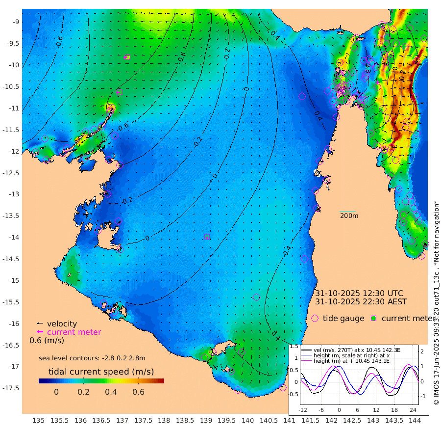 34cm/s -92T +3cm/s rms + 7cm/s -42T. ARA-GOC87 57m 20cm/s -169T +3cm/s rms + 2cm/s -2T. ARA-GOC87 60m 39cm/s -97T +2cm/s rms + 3cm/s 61T. ARA-GOC87 47m 28cm Daru 16cm Bobo Island -37cm Meer Island Barge -23cm Bramble Cay -1cm Unnamed Cay 9cm Pearce Cay -9cm Stephens Island -4cm Merrie England Shoals 30cm Mutacomal Reef -19cm Darnley Island Barge -34cm East Cay 2cm Yorke Island Barge 16cm Rennel Island 19cm Aureed Island 42cm Dungeness Reef 69cm Zagai Island 77cm Yam Island 104cm Dauan Island 89cm Saibai Island 107cm Phipi Reef 88cm Warrior Reef - West 86cm Mabuiag Island Barge 16cm Half Way Island 41cm Coconut Island 30cm Dugong Islet 63cm Poll Island 56cm Kirkcaldie Reef 90cm Suarji Island 51cm Sue Islet 77cm Hawkesbury Island 85cm Alert Patches 84cm Twin Island 83cm Badu Island 94cm St Pauls (Moa Island) 84cm Kubin (Moa Island) 89cm Ince Point 88cm Thursday Island 89cm Nardana Patches 85cm Turtle Head 74cm Round Island 73cm Goods Island 67cm Booby Island 69cm White Rocks Area 43cm Carpentaria 73cm Papou Point 47cm Bampfield Head 57cm Crab Island 79cm Red Wallis Island 95cm Packe Island 38cm Harrington Reef 77cm Herald Camp 34cm Sharp Point 71cm Red Island Point 71cm Possession Island 70cm Alpha Rock 65cm Frederick Point 31cm Wyborn Reef Light 42cm Tetley Island -10cm Triangle Reef 14cm Turtle Head Island -24cm Maclennan Cay -40cm Raine Island 0cm Mcsweeny Reef -9cm Collette Reef -27cm Shadwell Reef -15cm Hannibal Island -20cm Round Point 48cm Vrilya Point -22cm Cape Grenville -29cm Hicks Island -29cm Sir Charles Hardy Island -8cm Harvey Island -37cm Kay Reef -38cm Rocky Island -38cm Chapman Island -41cm Ham Reef -41cm Jubilee Reef -27cm Night Island -36cm Unnamed Reef No. 3 -41cm Morris Island -45cm 1st 3 Mile Opening -40cm Creech Reef -36cm Fife Island -56cm Eden Reef -46cm Stanley Island -50cm Normanby River -104cm Yabooma Island -114cm Hutchison River -98cm Elcho Island -86cm North West Crocodile Island -97cm Cape Wessel -105cm Stevens Island -110cm Guluwuru Island -97cm Hopeful Bay -102cm Auster Point -101cm Two Island Bay -122cm Cadell Strait -162cm Mallison Island -90cm Melville Bay (Gove Harbour) -99cm Truant Island -64cm Cape Arnhem -52cm Cape Grey -24cm Hawk Island -18cm Milner Bay (Groote Eylandt) 1cm Cape Beatrice 26cm West Island 26cm Centre Island 50cm Mornington Island 41cm West Wellesley Islands 44cm Bountiful Island 49cm Albert River Mouth 32cm Sweers Island 62cm Karumba 68cm Nassau River Offshore 64cm Christmas Creek 44cm Archer River 41cm Boyd Point 45cm Weipa (Humbug Point) 36cm Pennefather River 54cm Cullen Point