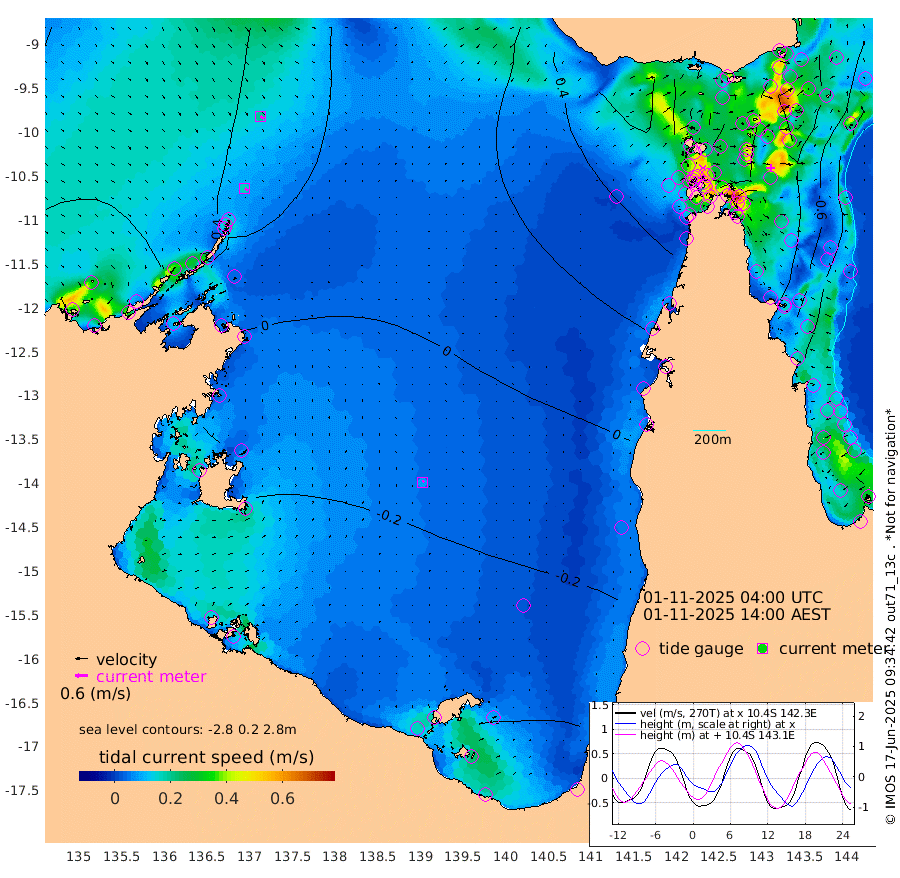 17cm/s 126T +3cm/s rms + 7cm/s -42T. ARA-GOC87 57m 8cm/s 35T +3cm/s rms + 2cm/s -2T. ARA-GOC87 60m 20cm/s 123T +2cm/s rms + 3cm/s 61T. ARA-GOC87 47m -88cm Daru -81cm Bobo Island -38cm Meer Island Barge -68cm Bramble Cay -86cm Unnamed Cay -75cm Pearce Cay -76cm Stephens Island -98cm Merrie England Shoals -99cm Mutacomal Reef -65cm Darnley Island Barge -47cm East Cay -70cm Yorke Island Barge -82cm Rennel Island -70cm Aureed Island -69cm Dungeness Reef -40cm Zagai Island -41cm Yam Island 6cm Dauan Island 8cm Saibai Island -22cm Phipi Reef -44cm Warrior Reef - West 12cm Mabuiag Island Barge -78cm Half Way Island -76cm Coconut Island -76cm Dugong Islet -60cm Poll Island -67cm Kirkcaldie Reef -40cm Suarji Island -55cm Sue Islet 55cm Hawkesbury Island -40cm Alert Patches -39cm Twin Island 50cm Badu Island -31cm St Pauls (Moa Island) 30cm Kubin (Moa Island) -12cm Ince Point 5cm Thursday Island 1cm Nardana Patches 21cm Turtle Head 34cm Round Island 56cm Goods Island 79cm Booby Island 68cm White Rocks Area 80cm Carpentaria -20cm Papou Point 80cm Bampfield Head 61cm Crab Island 66cm Red Wallis Island 29cm Packe Island -88cm Harrington Reef 62cm Herald Camp -17cm Sharp Point 20cm Red Island Point -9cm Possession Island -50cm Alpha Rock -61cm Frederick Point -89cm Wyborn Reef Light -84cm Tetley Island -36cm Triangle Reef -80cm Turtle Head Island -35cm Maclennan Cay -22cm Raine Island -78cm Mcsweeny Reef -74cm Collette Reef -45cm Shadwell Reef -83cm Hannibal Island -73cm Round Point 55cm Vrilya Point -64cm Cape Grenville -49cm Hicks Island -36cm Sir Charles Hardy Island -18cm Harvey Island -53cm Kay Reef -33cm Rocky Island -25cm Chapman Island -22cm Ham Reef -28cm Jubilee Reef -35cm Night Island -27cm Unnamed Reef No. 3 -36cm Morris Island -20cm 1st 3 Mile Opening -29cm Creech Reef -45cm Fife Island -32cm Eden Reef -39cm Stanley Island -44cm Normanby River 79cm Yabooma Island 78cm Hutchison River 69cm Elcho Island 66cm North West Crocodile Island 53cm Cape Wessel 49cm Stevens Island 34cm Guluwuru Island 46cm Hopeful Bay 53cm Auster Point 57cm Two Island Bay 61cm Cadell Strait -51cm Mallison Island 26cm Melville Bay (Gove Harbour) 34cm Truant Island 16cm Cape Arnhem 2cm Cape Grey -20cm Hawk Island -21cm Milner Bay (Groote Eylandt) -35cm Cape Beatrice -52cm West Island -49cm Centre Island -83cm Mornington Island -78cm West Wellesley Islands -72cm Bountiful Island -89cm Albert River Mouth -101cm Sweers Island -97cm Karumba -64cm Nassau River Offshore -36cm Christmas Creek 2cm Archer River 24cm Boyd Point 30cm Weipa (Humbug Point) 17cm Pennefather River 53cm Cullen Point