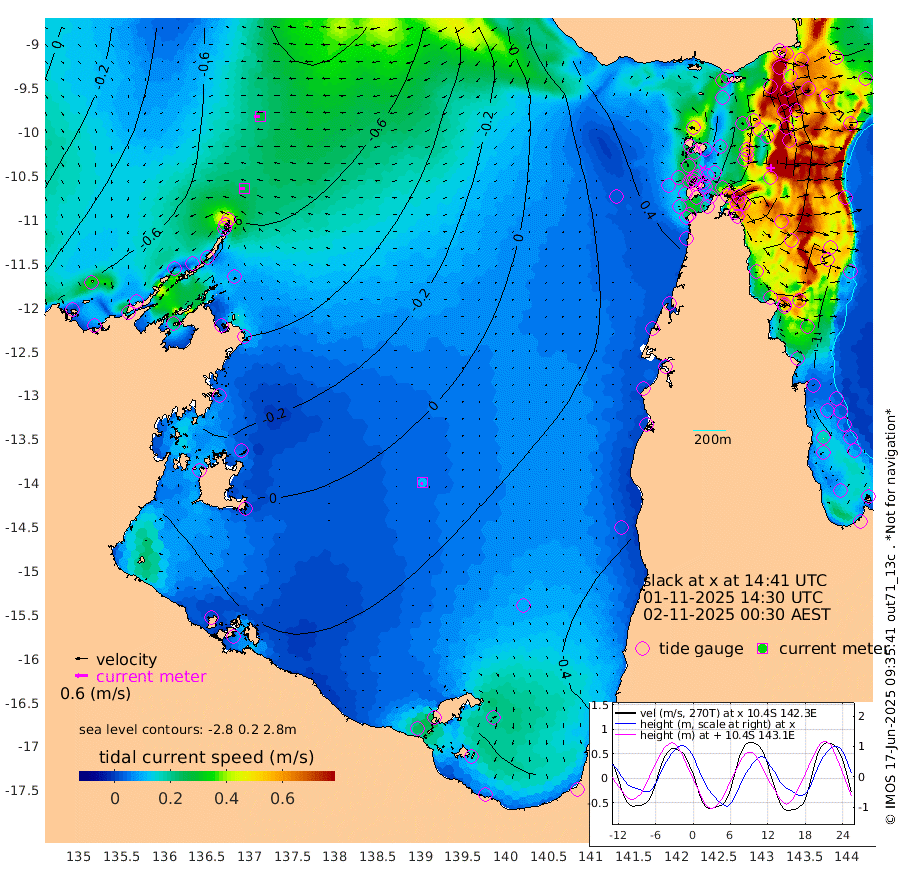 27cm/s -92T +3cm/s rms + 7cm/s -42T. ARA-GOC87 57m 12cm/s -144T +3cm/s rms + 2cm/s -2T. ARA-GOC87 60m 29cm/s -97T +2cm/s rms + 3cm/s 61T. ARA-GOC87 47m -69cm Daru -78cm Bobo Island -89cm Meer Island Barge -100cm Bramble Cay -97cm Unnamed Cay -81cm Pearce Cay -97cm Stephens Island -104cm Merrie England Shoals -76cm Mutacomal Reef -95cm Darnley Island Barge -98cm East Cay -80cm Yorke Island Barge -78cm Rennel Island -67cm Aureed Island -45cm Dungeness Reef 2cm Zagai Island 1cm Yam Island 70cm Dauan Island 55cm Saibai Island 58cm Phipi Reef 17cm Warrior Reef - West 46cm Mabuiag Island Barge -76cm Half Way Island -53cm Coconut Island -65cm Dugong Islet -21cm Poll Island -36cm Kirkcaldie Reef 11cm Suarji Island -27cm Sue Islet 38cm Hawkesbury Island 8cm Alert Patches 4cm Twin Island 50cm Badu Island 22cm St Pauls (Moa Island) 37cm Kubin (Moa Island) 26cm Ince Point 32cm Thursday Island 33cm Nardana Patches 38cm Turtle Head 29cm Round Island 41cm Goods Island 47cm Booby Island 39cm White Rocks Area 32cm Carpentaria 8cm Papou Point 13cm Bampfield Head 43cm Crab Island 53cm Red Wallis Island 47cm Packe Island -69cm Harrington Reef 38cm Herald Camp 14cm Sharp Point 26cm Red Island Point 10cm Possession Island -9cm Alpha Rock -26cm Frederick Point -72cm Wyborn Reef Light -59cm Tetley Island -63cm Triangle Reef -87cm Turtle Head Island -80cm Maclennan Cay -79cm Raine Island -87cm Mcsweeny Reef -89cm Collette Reef -82cm Shadwell Reef -102cm Hannibal Island -103cm Round Point 39cm Vrilya Point -97cm Cape Grenville -95cm Hicks Island -94cm Sir Charles Hardy Island -30cm Harvey Island -103cm Kay Reef -88cm Rocky Island -83cm Chapman Island -83cm Ham Reef -87cm Jubilee Reef -73cm Night Island -82cm Unnamed Reef No. 3 -93cm Morris Island -86cm 1st 3 Mile Opening -87cm Creech Reef -89cm Fife Island -105cm Eden Reef -99cm Stanley Island -111cm Normanby River -83cm Yabooma Island -93cm Hutchison River -72cm Elcho Island -62cm North West Crocodile Island -86cm Cape Wessel -89cm Stevens Island -102cm Guluwuru Island -80cm Hopeful Bay -86cm Auster Point -83cm Two Island Bay -99cm Cadell Strait -172cm Mallison Island -83cm Melville Bay (Gove Harbour) -92cm Truant Island -57cm Cape Arnhem -46cm Cape Grey -18cm Hawk Island -3cm Milner Bay (Groote Eylandt) 11cm Cape Beatrice 34cm West Island 38cm Centre Island 53cm Mornington Island 46cm West Wellesley Islands 48cm Bountiful Island 81cm Albert River Mouth 68cm Sweers Island 83cm Karumba 57cm Nassau River Offshore 44cm Christmas Creek 31cm Archer River 28cm Boyd Point 33cm Weipa (Humbug Point) 29cm Pennefather River 44cm Cullen Point