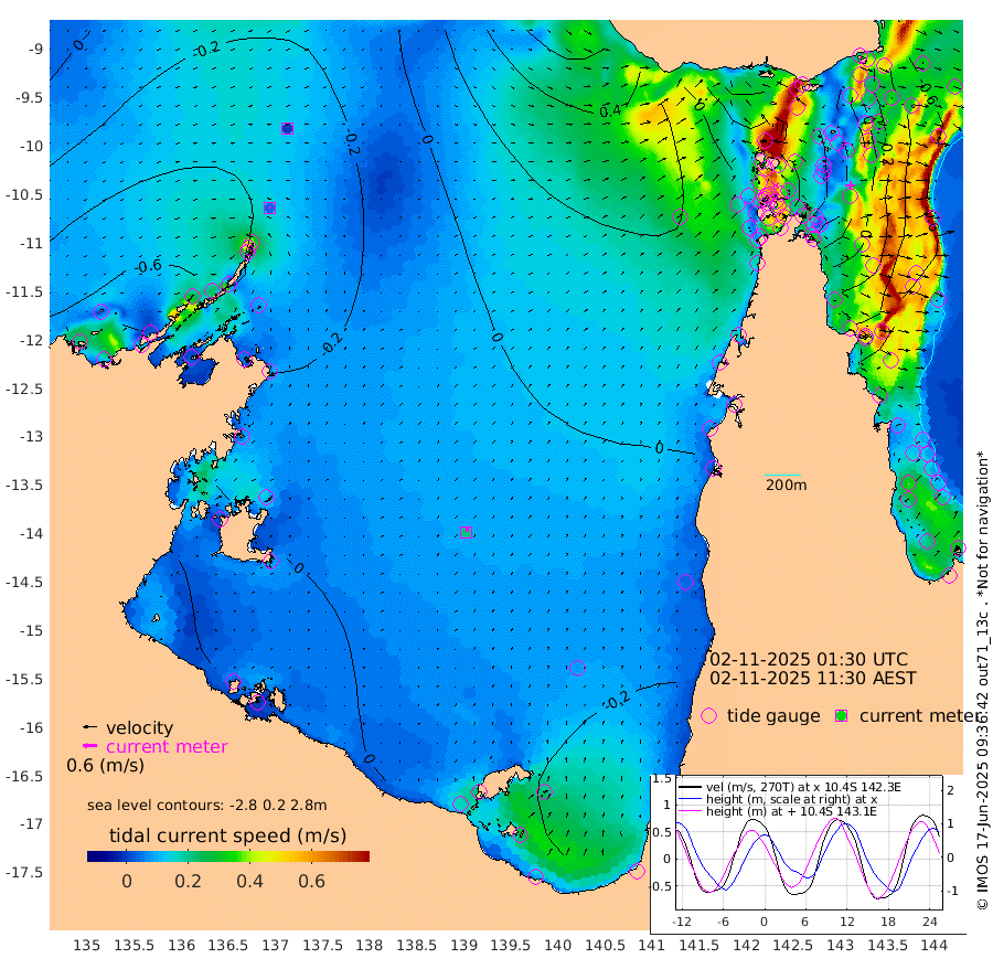 5cm/s -43T +3cm/s rms + 7cm/s -42T. ARA-GOC87 57m 21cm/s 18T +3cm/s rms + 2cm/s -2T. ARA-GOC87 60m 1cm/s 82T +2cm/s rms + 3cm/s 61T. ARA-GOC87 47m 3cm Daru 2cm Bobo Island -52cm Meer Island Barge -46cm Bramble Cay -22cm Unnamed Cay -18cm Pearce Cay -33cm Stephens Island -31cm Merrie England Shoals 2cm Mutacomal Reef -34cm Darnley Island Barge -53cm East Cay -12cm Yorke Island Barge -9cm Rennel Island 1cm Aureed Island 13cm Dungeness Reef 64cm Zagai Island 56cm Yam Island 64cm Dauan Island 79cm Saibai Island 64cm Phipi Reef 55cm Warrior Reef - West 77cm Mabuiag Island Barge -13cm Half Way Island 28cm Coconut Island 0cm Dugong Islet 40cm Poll Island 30cm Kirkcaldie Reef 81cm Suarji Island 45cm Sue Islet 30cm Hawkesbury Island 64cm Alert Patches 64cm Twin Island 48cm Badu Island 74cm St Pauls (Moa Island) 38cm Kubin (Moa Island) 60cm Ince Point 57cm Thursday Island 59cm Nardana Patches 40cm Turtle Head 50cm Round Island 24cm Goods Island 25cm Booby Island 30cm White Rocks Area 47cm Carpentaria 68cm Papou Point 57cm Bampfield Head 20cm Crab Island 25cm Red Wallis Island 26cm Packe Island 18cm Harrington Reef 33cm Herald Camp 29cm Sharp Point 44cm Red Island Point 65cm Possession Island 57cm Alpha Rock 45cm Frederick Point 17cm Wyborn Reef Light 28cm Tetley Island -29cm Triangle Reef 6cm Turtle Head Island -43cm Maclennan Cay -56cm Raine Island -21cm Mcsweeny Reef -27cm Collette Reef -44cm Shadwell Reef -35cm Hannibal Island -48cm Round Point 14cm Vrilya Point -46cm Cape Grenville -48cm Hicks Island -49cm Sir Charles Hardy Island -15cm Harvey Island -55cm Kay Reef -56cm Rocky Island -56cm Chapman Island -54cm Ham Reef -57cm Jubilee Reef -52cm Night Island -55cm Unnamed Reef No. 3 -61cm Morris Island -57cm 1st 3 Mile Opening -59cm Creech Reef -68cm Fife Island -79cm Eden Reef -67cm Stanley Island -73cm Normanby River -67cm Yabooma Island -70cm Hutchison River -61cm Elcho Island -59cm North West Crocodile Island -25cm Cape Wessel -54cm Stevens Island -38cm Guluwuru Island -52cm Hopeful Bay -34cm Auster Point -49cm Two Island Bay -82cm Cadell Strait -90cm Mallison Island -33cm Melville Bay (Gove Harbour) -30cm Truant Island -17cm Cape Arnhem -3cm Cape Grey -2cm Hawk Island 17cm Milner Bay (Groote Eylandt) 4cm Cape Beatrice 22cm West Island 32cm Centre Island -17cm Mornington Island -20cm West Wellesley Islands -25cm Bountiful Island -41cm Albert River Mouth -27cm Sweers Island -39cm Karumba -44cm Nassau River Offshore -40cm Christmas Creek -26cm Archer River -10cm Boyd Point -20cm Weipa (Humbug Point) -5cm Pennefather River 11cm Cullen Point