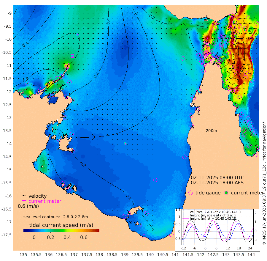 16cm/s 113T +3cm/s rms + 7cm/s -42T. ARA-GOC87 57m 16cm/s 170T +3cm/s rms + 2cm/s -2T. ARA-GOC87 60m 13cm/s 110T +2cm/s rms + 3cm/s 61T. ARA-GOC87 47m 42cm Daru 46cm Bobo Island 85cm Meer Island Barge 86cm Bramble Cay 70cm Unnamed Cay 62cm Pearce Cay 78cm Stephens Island 75cm Merrie England Shoals 47cm Mutacomal Reef 77cm Darnley Island Barge 92cm East Cay 57cm Yorke Island Barge 54cm Rennel Island 42cm Aureed Island 28cm Dungeness Reef -23cm Zagai Island -10cm Yam Island -45cm Dauan Island -46cm Saibai Island -50cm Phipi Reef -22cm Warrior Reef - West -39cm Mabuiag Island Barge 57cm Half Way Island 19cm Coconut Island 47cm Dugong Islet 2cm Poll Island 17cm Kirkcaldie Reef -36cm Suarji Island 3cm Sue Islet 15cm Hawkesbury Island -24cm Alert Patches -19cm Twin Island -10cm Badu Island -32cm St Pauls (Moa Island) 1cm Kubin (Moa Island) -22cm Ince Point -19cm Thursday Island -22cm Nardana Patches -7cm Turtle Head -9cm Round Island 11cm Goods Island 10cm Booby Island 11cm White Rocks Area -4cm Carpentaria -20cm Papou Point 3cm Bampfield Head 1cm Crab Island 6cm Red Wallis Island 4cm Packe Island 35cm Harrington Reef 12cm Herald Camp -22cm Sharp Point -4cm Red Island Point -23cm Possession Island -11cm Alpha Rock 3cm Frederick Point 35cm Wyborn Reef Light 24cm Tetley Island 60cm Triangle Reef 50cm Turtle Head Island 80cm Maclennan Cay 82cm Raine Island 64cm Mcsweeny Reef 66cm Collette Reef 74cm Shadwell Reef 77cm Hannibal Island 88cm Round Point 1cm Vrilya Point 84cm Cape Grenville 87cm Hicks Island 97cm Sir Charles Hardy Island 27cm Harvey Island 94cm Kay Reef 89cm Rocky Island 86cm Chapman Island 86cm Ham Reef 89cm Jubilee Reef 75cm Night Island 85cm Unnamed Reef No. 3 93cm Morris Island 87cm 1st 3 Mile Opening 89cm Creech Reef 92cm Fife Island 112cm Eden Reef 99cm Stanley Island 111cm Normanby River 112cm Yabooma Island 116cm Hutchison River 93cm Elcho Island 89cm North West Crocodile Island 77cm Cape Wessel 92cm Stevens Island 85cm Guluwuru Island 84cm Hopeful Bay 78cm Auster Point 91cm Two Island Bay 121cm Cadell Strait 128cm Mallison Island 69cm Melville Bay (Gove Harbour) 73cm Truant Island 39cm Cape Arnhem 18cm Cape Grey -7cm Hawk Island -32cm Milner Bay (Groote Eylandt) -33cm Cape Beatrice -60cm West Island -73cm Centre Island -55cm Mornington Island -47cm West Wellesley Islands -35cm Bountiful Island -68cm Albert River Mouth -84cm Sweers Island -69cm Karumba -15cm Nassau River Offshore 6cm Christmas Creek 13cm Archer River 13cm Boyd Point 21cm Weipa (Humbug Point) -2cm Pennefather River 3cm Cullen Point