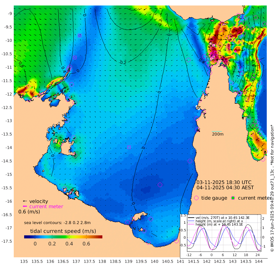 6cm/s -159T +3cm/s rms + 7cm/s -42T. ARA-GOC87 57m 9cm/s -52T +3cm/s rms + 2cm/s -2T. ARA-GOC87 60m 7cm/s 171T +2cm/s rms + 3cm/s 61T. ARA-GOC87 47m -149cm Daru -141cm Bobo Island -47cm Meer Island Barge -84cm Bramble Cay -128cm Unnamed Cay -119cm Pearce Cay -108cm Stephens Island -123cm Merrie England Shoals -154cm Mutacomal Reef -97cm Darnley Island Barge -56cm East Cay -123cm Yorke Island Barge -128cm Rennel Island -127cm Aureed Island -138cm Dungeness Reef -149cm Zagai Island -152cm Yam Island -106cm Dauan Island -117cm Saibai Island -118cm Phipi Reef -149cm Warrior Reef - West -95cm Mabuiag Island Barge -127cm Half Way Island -147cm Coconut Island -141cm Dugong Islet -146cm Poll Island -149cm Kirkcaldie Reef -151cm Suarji Island -148cm Sue Islet -21cm Hawkesbury Island -130cm Alert Patches -138cm Twin Island -33cm Badu Island -142cm St Pauls (Moa Island) -53cm Kubin (Moa Island) -104cm Ince Point -83cm Thursday Island -89cm Nardana Patches -51cm Turtle Head -43cm Round Island -3cm Goods Island 26cm Booby Island 10cm White Rocks Area 20cm Carpentaria -125cm Papou Point -1cm Bampfield Head 31cm Crab Island 16cm Red Wallis Island -30cm Packe Island -158cm Harrington Reef -17cm Herald Camp -48cm Sharp Point -51cm Red Island Point -96cm Possession Island -139cm Alpha Rock -147cm Frederick Point -157cm Wyborn Reef Light -160cm Tetley Island -56cm Triangle Reef -146cm Turtle Head Island -52cm Maclennan Cay -15cm Raine Island -113cm Mcsweeny Reef -99cm Collette Reef -51cm Shadwell Reef -107cm Hannibal Island -83cm Round Point 39cm Vrilya Point -74cm Cape Grenville -62cm Hicks Island -65cm Sir Charles Hardy Island -23cm Harvey Island -54cm Kay Reef -33cm Rocky Island -20cm Chapman Island -21cm Ham Reef -29cm Jubilee Reef -28cm Night Island -21cm Unnamed Reef No. 3 -31cm Morris Island -20cm 1st 3 Mile Opening -26cm Creech Reef -25cm Fife Island -20cm Eden Reef -29cm Stanley Island -37cm Normanby River 57cm Yabooma Island 51cm Hutchison River 61cm Elcho Island 56cm North West Crocodile Island 5cm Cape Wessel 32cm Stevens Island -24cm Guluwuru Island 41cm Hopeful Bay 21cm Auster Point 23cm Two Island Bay 31cm Cadell Strait -73cm Mallison Island -12cm Melville Bay (Gove Harbour) -14cm Truant Island -13cm Cape Arnhem -16cm Cape Grey -10cm Hawk Island -2cm Milner Bay (Groote Eylandt) 1cm Cape Beatrice -6cm West Island -2cm Centre Island 3cm Mornington Island 5cm West Wellesley Islands -3cm Bountiful Island 39cm Albert River Mouth 37cm Sweers Island 32cm Karumba 8cm Nassau River Offshore 5cm Christmas Creek 26cm Archer River 19cm Boyd Point 32cm Weipa (Humbug Point) 35cm Pennefather River 31cm Cullen Point