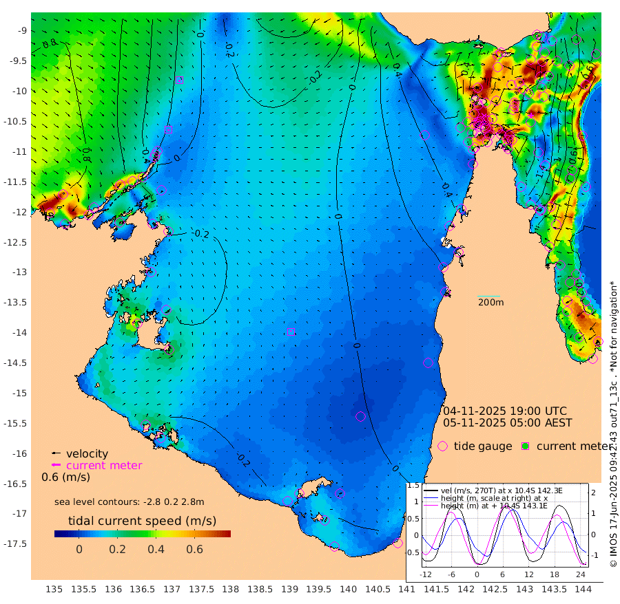 8cm/s -171T +3cm/s rms + 7cm/s -42T. ARA-GOC87 57m 9cm/s -27T +3cm/s rms + 2cm/s -2T. ARA-GOC87 60m 11cm/s 169T +2cm/s rms + 3cm/s 61T. ARA-GOC87 47m -155cm Daru -147cm Bobo Island -54cm Meer Island Barge -89cm Bramble Cay -134cm Unnamed Cay -126cm Pearce Cay -115cm Stephens Island -127cm Merrie England Shoals -158cm Mutacomal Reef -106cm Darnley Island Barge -60cm East Cay -131cm Yorke Island Barge -133cm Rennel Island -135cm Aureed Island -145cm Dungeness Reef -155cm Zagai Island -155cm Yam Island -114cm Dauan Island -121cm Saibai Island -132cm Phipi Reef -158cm Warrior Reef - West -88cm Mabuiag Island Barge -131cm Half Way Island -150cm Coconut Island -146cm Dugong Islet -149cm Poll Island -150cm Kirkcaldie Reef -154cm Suarji Island -151cm Sue Islet 2cm Hawkesbury Island -127cm Alert Patches -134cm Twin Island -14cm Badu Island -140cm St Pauls (Moa Island) -39cm Kubin (Moa Island) -96cm Ince Point -72cm Thursday Island -79cm Nardana Patches -39cm Turtle Head -29cm Round Island 17cm Goods Island 52cm Booby Island 37cm White Rocks Area 50cm Carpentaria -119cm Papou Point 25cm Bampfield Head 55cm Crab Island 43cm Red Wallis Island -13cm Packe Island -160cm Harrington Reef 1cm Herald Camp -49cm Sharp Point -35cm Red Island Point -90cm Possession Island -136cm Alpha Rock -146cm Frederick Point -159cm Wyborn Reef Light -160cm Tetley Island -60cm Triangle Reef -148cm Turtle Head Island -57cm Maclennan Cay -18cm Raine Island -119cm Mcsweeny Reef -105cm Collette Reef -57cm Shadwell Reef -113cm Hannibal Island -87cm Round Point 65cm Vrilya Point -78cm Cape Grenville -68cm Hicks Island -71cm Sir Charles Hardy Island -24cm Harvey Island -56cm Kay Reef -38cm Rocky Island -23cm Chapman Island -23cm Ham Reef -32cm Jubilee Reef -33cm Night Island -22cm Unnamed Reef No. 3 -35cm Morris Island -25cm 1st 3 Mile Opening -30cm Creech Reef -30cm Fife Island -26cm Eden Reef -33cm Stanley Island -41cm Normanby River 67cm Yabooma Island 58cm Hutchison River 69cm Elcho Island 65cm North West Crocodile Island 12cm Cape Wessel 40cm Stevens Island -29cm Guluwuru Island 46cm Hopeful Bay 27cm Auster Point 27cm Two Island Bay 31cm Cadell Strait -86cm Mallison Island -17cm Melville Bay (Gove Harbour) -17cm Truant Island -18cm Cape Arnhem -23cm Cape Grey -21cm Hawk Island -12cm Milner Bay (Groote Eylandt) -9cm Cape Beatrice -18cm West Island -14cm Centre Island -26cm Mornington Island -23cm West Wellesley Islands -40cm Bountiful Island -2cm Albert River Mouth -8cm Sweers Island -8cm Karumba -16cm Nassau River Offshore -9cm Christmas Creek 27cm Archer River 25cm Boyd Point 37cm Weipa (Humbug Point) 48cm Pennefather River 49cm Cullen Point
