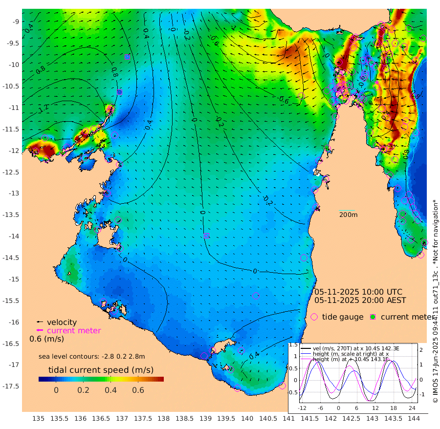 2cm/s 50T +3cm/s rms + 7cm/s -42T. ARA-GOC87 57m 10cm/s -110T +3cm/s rms + 2cm/s -2T. ARA-GOC87 60m 7cm/s 58T +2cm/s rms + 3cm/s 61T. ARA-GOC87 47m 31cm Daru 41cm Bobo Island 67cm Meer Island Barge 73cm Bramble Cay 55cm Unnamed Cay 56cm Pearce Cay 64cm Stephens Island 58cm Merrie England Shoals 34cm Mutacomal Reef 57cm Darnley Island Barge 78cm East Cay 40cm Yorke Island Barge 43cm Rennel Island 36cm Aureed Island 20cm Dungeness Reef -31cm Zagai Island -21cm Yam Island -59cm Dauan Island -63cm Saibai Island -41cm Phipi Reef -26cm Warrior Reef - West -61cm Mabuiag Island Barge 40cm Half Way Island 11cm Coconut Island 30cm Dugong Islet -7cm Poll Island 0cm Kirkcaldie Reef -35cm Suarji Island -16cm Sue Islet -32cm Hawkesbury Island -42cm Alert Patches -36cm Twin Island -48cm Badu Island -49cm St Pauls (Moa Island) -33cm Kubin (Moa Island) -46cm Ince Point -50cm Thursday Island -50cm Nardana Patches -41cm Turtle Head -37cm Round Island -34cm Goods Island -50cm Booby Island -39cm White Rocks Area -81cm Carpentaria -35cm Papou Point -52cm Bampfield Head -53cm Crab Island -51cm Red Wallis Island -35cm Packe Island 24cm Harrington Reef -32cm Herald Camp -25cm Sharp Point -30cm Red Island Point -37cm Possession Island -31cm Alpha Rock -11cm Frederick Point 22cm Wyborn Reef Light 11cm Tetley Island 45cm Triangle Reef 31cm Turtle Head Island 62cm Maclennan Cay 64cm Raine Island 48cm Mcsweeny Reef 50cm Collette Reef 54cm Shadwell Reef 61cm Hannibal Island 76cm Round Point -67cm Vrilya Point 67cm Cape Grenville 73cm Hicks Island 74cm Sir Charles Hardy Island 21cm Harvey Island 75cm Kay Reef 73cm Rocky Island 69cm Chapman Island 66cm Ham Reef 67cm Jubilee Reef 59cm Night Island 65cm Unnamed Reef No. 3 76cm Morris Island 64cm 1st 3 Mile Opening 68cm Creech Reef 75cm Fife Island 91cm Eden Reef 75cm Stanley Island 94cm Normanby River 174cm Yabooma Island 197cm Hutchison River 165cm Elcho Island 165cm North West Crocodile Island 97cm Cape Wessel 141cm Stevens Island 87cm Guluwuru Island 136cm Hopeful Bay 111cm Auster Point 120cm Two Island Bay 163cm Cadell Strait 29cm Mallison Island 86cm Melville Bay (Gove Harbour) 83cm Truant Island 48cm Cape Arnhem 39cm Cape Grey 30cm Hawk Island 8cm Milner Bay (Groote Eylandt) 11cm Cape Beatrice -14cm West Island -25cm Centre Island 19cm Mornington Island 16cm West Wellesley Islands 68cm Bountiful Island 66cm Albert River Mouth 67cm Sweers Island 67cm Karumba 29cm Nassau River Offshore 14cm Christmas Creek -7cm Archer River -24cm Boyd Point -10cm Weipa (Humbug Point) -50cm Pennefather River -50cm Cullen Point