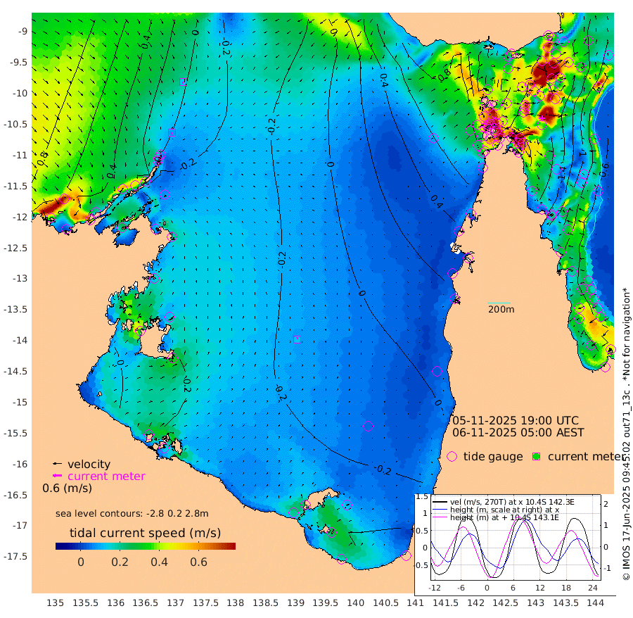 9cm/s -142T +3cm/s rms + 7cm/s -42T. ARA-GOC87 57m 13cm/s 1T +3cm/s rms + 2cm/s -2T. ARA-GOC87 60m 12cm/s -170T +2cm/s rms + 3cm/s 61T. ARA-GOC87 47m -170cm Daru -165cm Bobo Island -84cm Meer Island Barge -118cm Bramble Cay -155cm Unnamed Cay -151cm Pearce Cay -141cm Stephens Island -148cm Merrie England Shoals -169cm Mutacomal Reef -133cm Darnley Island Barge -92cm East Cay -150cm Yorke Island Barge -151cm Rennel Island -155cm Aureed Island -159cm Dungeness Reef -152cm Zagai Island -149cm Yam Island -107cm Dauan Island -105cm Saibai Island -133cm Phipi Reef -158cm Warrior Reef - West -67cm Mabuiag Island Barge -149cm Half Way Island -159cm Coconut Island -159cm Dugong Islet -150cm Poll Island -152cm Kirkcaldie Reef -148cm Suarji Island -147cm Sue Islet 19cm Hawkesbury Island -117cm Alert Patches -124cm Twin Island 1cm Badu Island -127cm St Pauls (Moa Island) -28cm Kubin (Moa Island) -83cm Ince Point -57cm Thursday Island -65cm Nardana Patches -30cm Turtle Head -17cm Round Island 25cm Goods Island 67cm Booby Island 52cm White Rocks Area 77cm Carpentaria -106cm Papou Point 38cm Bampfield Head 69cm Crab Island 60cm Red Wallis Island -4cm Packe Island -170cm Harrington Reef 11cm Herald Camp -41cm Sharp Point -22cm Red Island Point -81cm Possession Island -124cm Alpha Rock -144cm Frederick Point -167cm Wyborn Reef Light -164cm Tetley Island -82cm Triangle Reef -161cm Turtle Head Island -84cm Maclennan Cay -48cm Raine Island -139cm Mcsweeny Reef -127cm Collette Reef -83cm Shadwell Reef -139cm Hannibal Island -116cm Round Point 84cm Vrilya Point -105cm Cape Grenville -98cm Hicks Island -100cm Sir Charles Hardy Island -33cm Harvey Island -84cm Kay Reef -68cm Rocky Island -53cm Chapman Island -51cm Ham Reef -61cm Jubilee Reef -61cm Night Island -50cm Unnamed Reef No. 3 -68cm Morris Island -57cm 1st 3 Mile Opening -61cm Creech Reef -62cm Fife Island -67cm Eden Reef -66cm Stanley Island -76cm Normanby River 35cm Yabooma Island 15cm Hutchison River 35cm Elcho Island 36cm North West Crocodile Island -5cm Cape Wessel 13cm Stevens Island -57cm Guluwuru Island 18cm Hopeful Bay 4cm Auster Point 4cm Two Island Bay -9cm Cadell Strait -112cm Mallison Island -43cm Melville Bay (Gove Harbour) -42cm Truant Island -37cm Cape Arnhem -35cm Cape Grey -33cm Hawk Island -13cm Milner Bay (Groote Eylandt) -12cm Cape Beatrice -9cm West Island -6cm Centre Island -45cm Mornington Island -40cm West Wellesley Islands -67cm Bountiful Island -36cm Albert River Mouth -41cm Sweers Island -42cm Karumba -38cm Nassau River Offshore -28cm Christmas Creek 17cm Archer River 24cm Boyd Point 30cm Weipa (Humbug Point) 54cm Pennefather River 61cm Cullen Point