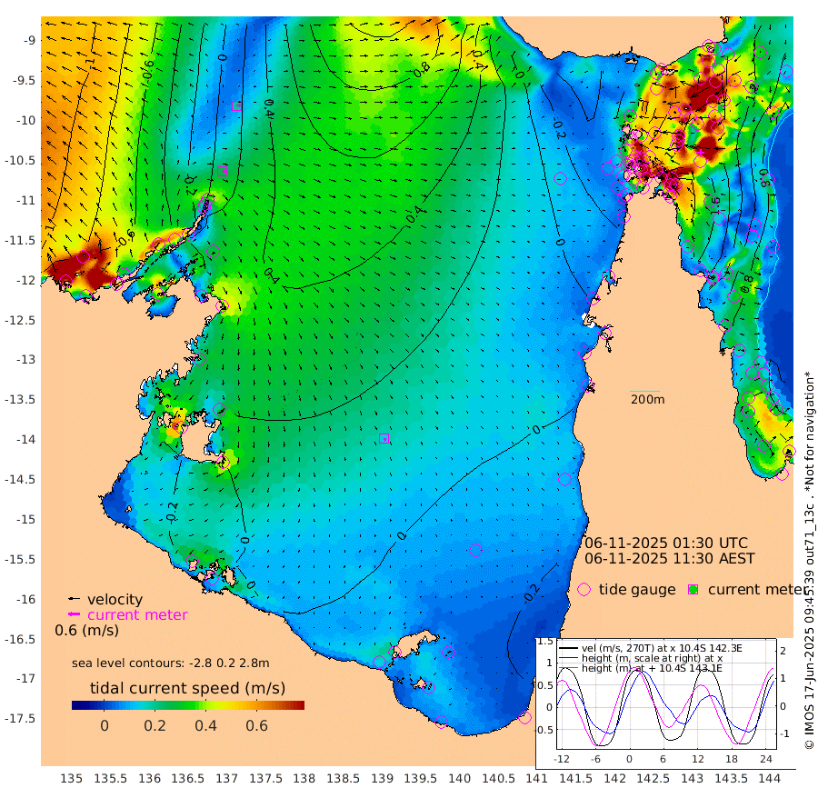 26cm/s 102T +3cm/s rms + 7cm/s -42T. ARA-GOC87 57m 15cm/s 152T +3cm/s rms + 2cm/s -2T. ARA-GOC87 60m 19cm/s 88T +2cm/s rms + 3cm/s 61T. ARA-GOC87 47m 173cm Daru 170cm Bobo Island 92cm Meer Island Barge 121cm Bramble Cay 156cm Unnamed Cay 157cm Pearce Cay 146cm Stephens Island 153cm Merrie England Shoals 169cm Mutacomal Reef 138cm Darnley Island Barge 95cm East Cay 154cm Yorke Island Barge 157cm Rennel Island 160cm Aureed Island 163cm Dungeness Reef 158cm Zagai Island 148cm Yam Island 109cm Dauan Island 103cm Saibai Island 132cm Phipi Reef 156cm Warrior Reef - West 78cm Mabuiag Island Barge 155cm Half Way Island 172cm Coconut Island 162cm Dugong Islet 158cm Poll Island 160cm Kirkcaldie Reef 154cm Suarji Island 152cm Sue Islet 17cm Hawkesbury Island 137cm Alert Patches 141cm Twin Island 40cm Badu Island 141cm St Pauls (Moa Island) 58cm Kubin (Moa Island) 105cm Ince Point 86cm Thursday Island 91cm Nardana Patches 65cm Turtle Head 50cm Round Island 21cm Goods Island -7cm Booby Island -1cm White Rocks Area -8cm Carpentaria 121cm Papou Point 26cm Bampfield Head -6cm Crab Island -4cm Red Wallis Island 43cm Packe Island 179cm Harrington Reef 20cm Herald Camp 41cm Sharp Point 48cm Red Island Point 105cm Possession Island 132cm Alpha Rock 157cm Frederick Point 173cm Wyborn Reef Light 171cm Tetley Island 90cm Triangle Reef 179cm Turtle Head Island 89cm Maclennan Cay 60cm Raine Island 145cm Mcsweeny Reef 134cm Collette Reef 92cm Shadwell Reef 145cm Hannibal Island 121cm Round Point -13cm Vrilya Point 108cm Cape Grenville 102cm Hicks Island 99cm Sir Charles Hardy Island 34cm Harvey Island 88cm Kay Reef 71cm Rocky Island 60cm Chapman Island 57cm Ham Reef 69cm Jubilee Reef 70cm Night Island 60cm Unnamed Reef No. 3 75cm Morris Island 71cm 1st 3 Mile Opening 72cm Creech Reef 70cm Fife Island 75cm Eden Reef 74cm Stanley Island 77cm Normanby River -64cm Yabooma Island -38cm Hutchison River -56cm Elcho Island -66cm North West Crocodile Island 3cm Cape Wessel -26cm Stevens Island 65cm Guluwuru Island -37cm Hopeful Bay -8cm Auster Point -14cm Two Island Bay 0cm Cadell Strait 154cm Mallison Island 43cm Melville Bay (Gove Harbour) 50cm Truant Island 42cm Cape Arnhem 23cm Cape Grey 14cm Hawk Island -17cm Milner Bay (Groote Eylandt) -22cm Cape Beatrice -41cm West Island -35cm Centre Island -18cm Mornington Island -23cm West Wellesley Islands -45cm Bountiful Island -70cm Albert River Mouth -75cm Sweers Island -66cm Karumba -13cm Nassau River Offshore 7cm Christmas Creek -1cm Archer River 5cm Boyd Point -7cm Weipa (Humbug Point) 3cm Pennefather River -13cm Cullen Point
