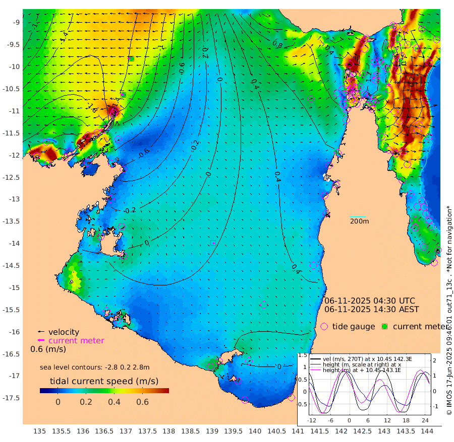 27cm/s -79T +3cm/s rms + 7cm/s -42T. ARA-GOC87 57m 14cm/s 147T +3cm/s rms + 2cm/s -2T. ARA-GOC87 60m 33cm/s -89T +2cm/s rms + 3cm/s 61T. ARA-GOC87 47m 17cm Daru -2cm Bobo Island -35cm Meer Island Barge -37cm Bramble Cay -7cm Unnamed Cay -20cm Pearce Cay -23cm Stephens Island -17cm Merrie England Shoals 15cm Mutacomal Reef -17cm Darnley Island Barge -43cm East Cay 4cm Yorke Island Barge 1cm Rennel Island 8cm Aureed Island 32cm Dungeness Reef 80cm Zagai Island 78cm Yam Island 122cm Dauan Island 125cm Saibai Island 112cm Phipi Reef 87cm Warrior Reef - West 108cm Mabuiag Island Barge 0cm Half Way Island 31cm Coconut Island 19cm Dugong Islet 54cm Poll Island 49cm Kirkcaldie Reef 98cm Suarji Island 67cm Sue Islet 66cm Hawkesbury Island 92cm Alert Patches 82cm Twin Island 79cm Badu Island 99cm St Pauls (Moa Island) 72cm Kubin (Moa Island) 90cm Ince Point 91cm Thursday Island 92cm Nardana Patches 82cm Turtle Head 81cm Round Island 66cm Goods Island 73cm Booby Island 63cm White Rocks Area 89cm Carpentaria 74cm Papou Point 93cm Bampfield Head 60cm Crab Island 70cm Red Wallis Island 72cm Packe Island 22cm Harrington Reef 92cm Herald Camp 41cm Sharp Point 62cm Red Island Point 83cm Possession Island 76cm Alpha Rock 56cm Frederick Point 21cm Wyborn Reef Light 33cm Tetley Island -14cm Triangle Reef 4cm Turtle Head Island -26cm Maclennan Cay -39cm Raine Island -7cm Mcsweeny Reef -10cm Collette Reef -21cm Shadwell Reef -19cm Hannibal Island -40cm Round Point 61cm Vrilya Point -29cm Cape Grenville -35cm Hicks Island -23cm Sir Charles Hardy Island -9cm Harvey Island -39cm Kay Reef -38cm Rocky Island -37cm Chapman Island -35cm Ham Reef -38cm Jubilee Reef -33cm Night Island -37cm Unnamed Reef No. 3 -45cm Morris Island -33cm 1st 3 Mile Opening -37cm Creech Reef -49cm Fife Island -61cm Eden Reef -43cm Stanley Island -61cm Normanby River -236cm Yabooma Island -276cm Hutchison River -242cm Elcho Island -237cm North West Crocodile Island -151cm Cape Wessel -215cm Stevens Island -131cm Guluwuru Island -194cm Hopeful Bay -168cm Auster Point -181cm Two Island Bay -244cm Cadell Strait -64cm Mallison Island -123cm Melville Bay (Gove Harbour) -125cm Truant Island -73cm Cape Arnhem -48cm Cape Grey -35cm Hawk Island -9cm Milner Bay (Groote Eylandt) -7cm Cape Beatrice 38cm West Island 46cm Centre Island 29cm Mornington Island 34cm West Wellesley Islands 21cm Bountiful Island -22cm Albert River Mouth -19cm Sweers Island -12cm Karumba 32cm Nassau River Offshore 48cm Christmas Creek 41cm Archer River 54cm Boyd Point 48cm Weipa (Humbug Point) 44cm Pennefather River 68cm Cullen Point