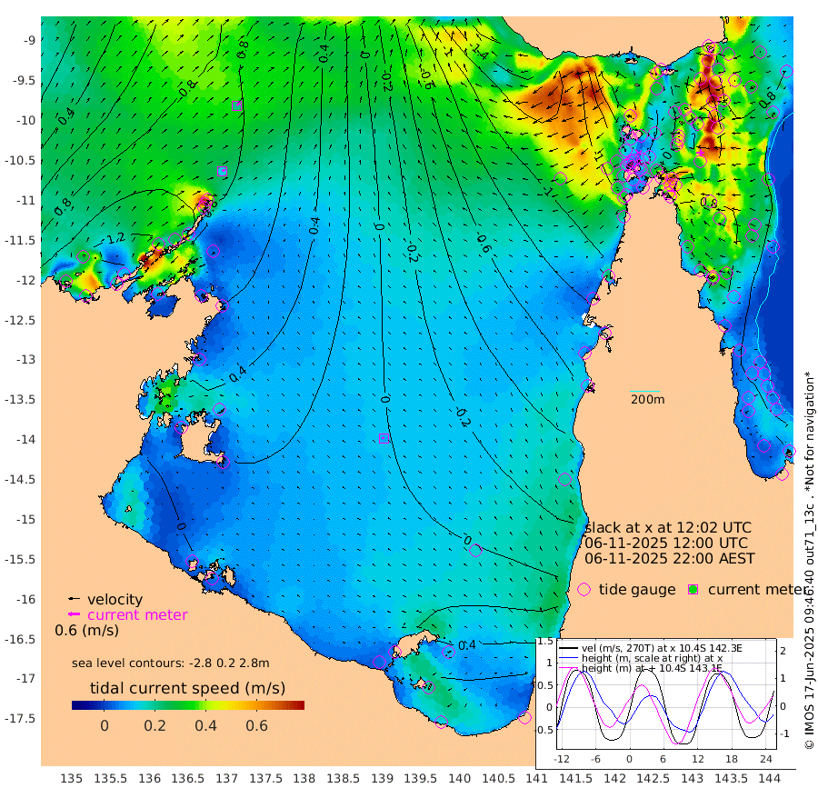15cm/s 60T +3cm/s rms + 7cm/s -42T. ARA-GOC87 57m 10cm/s -86T +3cm/s rms + 2cm/s -2T. ARA-GOC87 60m 21cm/s 51T +2cm/s rms + 3cm/s 61T. ARA-GOC87 47m 76cm Daru 86cm Bobo Island 59cm Meer Island Barge 80cm Bramble Cay 82cm Unnamed Cay 88cm Pearce Cay 83cm Stephens Island 82cm Merrie England Shoals 77cm Mutacomal Reef 75cm Darnley Island Barge 67cm East Cay 74cm Yorke Island Barge 73cm Rennel Island 74cm Aureed Island 61cm Dungeness Reef 30cm Zagai Island 29cm Yam Island -18cm Dauan Island -20cm Saibai Island 4cm Phipi Reef 33cm Warrior Reef - West -44cm Mabuiag Island Barge 73cm Half Way Island 56cm Coconut Island 68cm Dugong Islet 41cm Poll Island 42cm Kirkcaldie Reef 13cm Suarji Island 32cm Sue Islet -91cm Hawkesbury Island -12cm Alert Patches 1cm Twin Island -87cm Badu Island -5cm St Pauls (Moa Island) -60cm Kubin (Moa Island) -32cm Ince Point -52cm Thursday Island -46cm Nardana Patches -67cm Turtle Head -76cm Round Island -98cm Goods Island -135cm Booby Island -116cm White Rocks Area -154cm Carpentaria -2cm Papou Point -138cm Bampfield Head -125cm Crab Island -126cm Red Wallis Island -79cm Packe Island 69cm Harrington Reef -103cm Herald Camp -4cm Sharp Point -56cm Red Island Point -30cm Possession Island 8cm Alpha Rock 31cm Frederick Point 68cm Wyborn Reef Light 60cm Tetley Island 45cm Triangle Reef 69cm Turtle Head Island 53cm Maclennan Cay 37cm Raine Island 72cm Mcsweeny Reef 67cm Collette Reef 48cm Shadwell Reef 79cm Hannibal Island 79cm Round Point -137cm Vrilya Point 65cm Cape Grenville 66cm Hicks Island 61cm Sir Charles Hardy Island 21cm Harvey Island 59cm Kay Reef 52cm Rocky Island 41cm Chapman Island 39cm Ham Reef 46cm Jubilee Reef 44cm Night Island 38cm Unnamed Reef No. 3 54cm Morris Island 37cm 1st 3 Mile Opening 44cm Creech Reef 54cm Fife Island 63cm Eden Reef 50cm Stanley Island 71cm Normanby River 142cm Yabooma Island 179cm Hutchison River 146cm Elcho Island 146cm North West Crocodile Island 102cm Cape Wessel 138cm Stevens Island 118cm Guluwuru Island 123cm Hopeful Bay 108cm Auster Point 121cm Two Island Bay 171cm Cadell Strait 97cm Mallison Island 108cm Melville Bay (Gove Harbour) 106cm Truant Island 70cm Cape Arnhem 61cm Cape Grey 57cm Hawk Island 34cm Milner Bay (Groote Eylandt) 35cm Cape Beatrice 12cm West Island 2cm Centre Island 50cm Mornington Island 43cm West Wellesley Islands 89cm Bountiful Island 108cm Albert River Mouth 114cm Sweers Island 102cm Karumba 32cm Nassau River Offshore -6cm Christmas Creek -51cm Archer River -71cm Boyd Point -69cm Weipa (Humbug Point) -95cm Pennefather River -116cm Cullen Point