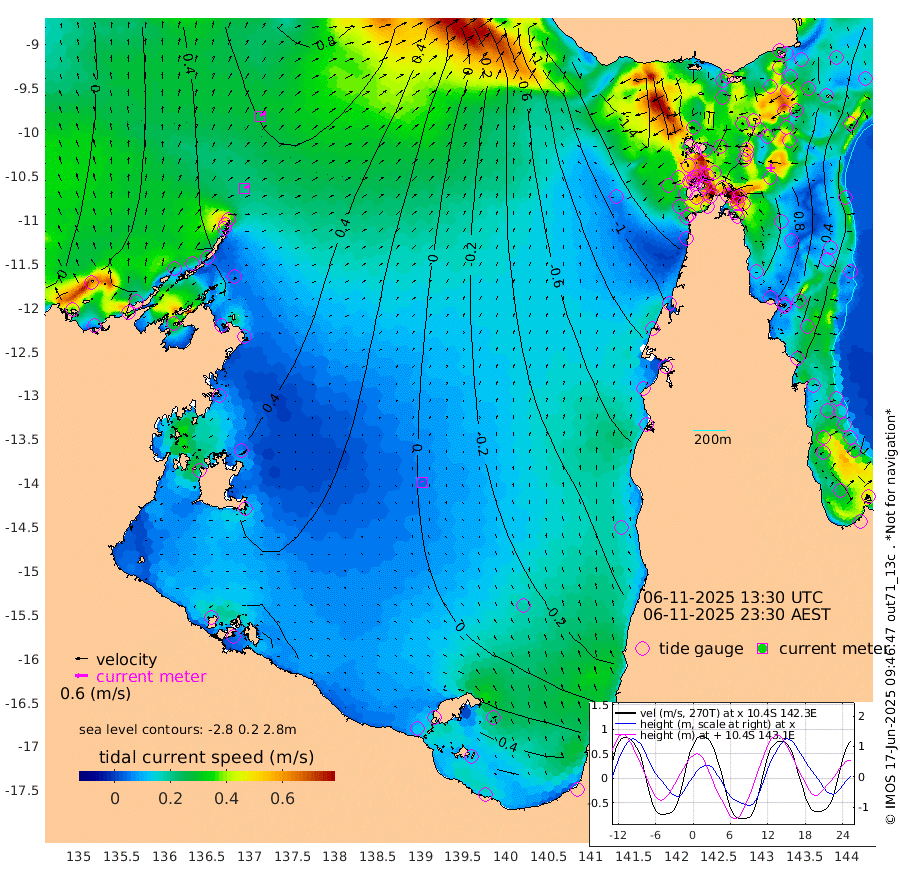 22cm/s 55T +3cm/s rms + 7cm/s -42T. ARA-GOC87 57m 5cm/s -41T +3cm/s rms + 2cm/s -2T. ARA-GOC87 60m 27cm/s 44T +2cm/s rms + 3cm/s 61T. ARA-GOC87 47m 84cm Daru 88cm Bobo Island 25cm Meer Island Barge 50cm Bramble Cay 72cm Unnamed Cay 76cm Pearce Cay 65cm Stephens Island 69cm Merrie England Shoals 83cm Mutacomal Reef 60cm Darnley Island Barge 26cm East Cay 73cm Yorke Island Barge 68cm Rennel Island 75cm Aureed Island 68cm Dungeness Reef 67cm Zagai Island 60cm Yam Island 16cm Dauan Island 23cm Saibai Island 26cm Phipi Reef 66cm Warrior Reef - West -15cm Mabuiag Island Barge 72cm Half Way Island 68cm Coconut Island 75cm Dugong Islet 64cm Poll Island 61cm Kirkcaldie Reef 40cm Suarji Island 64cm Sue Islet -118cm Hawkesbury Island 13cm Alert Patches 28cm Twin Island -103cm Badu Island 31cm St Pauls (Moa Island) -71cm Kubin (Moa Island) -13cm Ince Point -41cm Thursday Island -33cm Nardana Patches -77cm Turtle Head -96cm Round Island -132cm Goods Island -171cm Booby Island -154cm White Rocks Area -160cm Carpentaria 24cm Papou Point -180cm Bampfield Head -152cm Crab Island -156cm Red Wallis Island -102cm Packe Island 79cm Harrington Reef -139cm Herald Camp 18cm Sharp Point -65cm Red Island Point -24cm Possession Island 40cm Alpha Rock 51cm Frederick Point 79cm Wyborn Reef Light 77cm Tetley Island 22cm Triangle Reef 74cm Turtle Head Island 19cm Maclennan Cay -8cm Raine Island 62cm Mcsweeny Reef 52cm Collette Reef 19cm Shadwell Reef 61cm Hannibal Island 45cm Round Point -151cm Vrilya Point 34cm Cape Grenville 29cm Hicks Island 22cm Sir Charles Hardy Island 12cm Harvey Island 19cm Kay Reef 7cm Rocky Island -7cm Chapman Island -5cm Ham Reef 5cm Jubilee Reef 7cm Night Island -6cm Unnamed Reef No. 3 7cm Morris Island -7cm 1st 3 Mile Opening 1cm Creech Reef 8cm Fife Island 6cm Eden Reef 4cm Stanley Island 19cm Normanby River 36cm Yabooma Island 63cm Hutchison River 47cm Elcho Island 50cm North West Crocodile Island 61cm Cape Wessel 64cm Stevens Island 95cm Guluwuru Island 46cm Hopeful Bay 52cm Auster Point 66cm Two Island Bay 97cm Cadell Strait 142cm Mallison Island 78cm Melville Bay (Gove Harbour) 77cm Truant Island 58cm Cape Arnhem 54cm Cape Grey 53cm Hawk Island 44cm Milner Bay (Groote Eylandt) 42cm Cape Beatrice 36cm West Island 28cm Centre Island 47cm Mornington Island 43cm West Wellesley Islands 59cm Bountiful Island 80cm Albert River Mouth 90cm Sweers Island 70cm Karumba 10cm Nassau River Offshore -32cm Christmas Creek -82cm Archer River -93cm Boyd Point -108cm Weipa (Humbug Point) -105cm Pennefather River -135cm Cullen Point