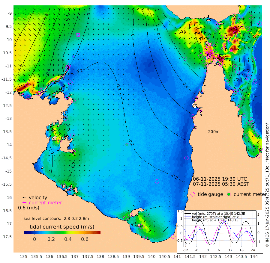 8cm/s -140T +3cm/s rms + 7cm/s -42T. ARA-GOC87 57m 19cm/s 9T +3cm/s rms + 2cm/s -2T. ARA-GOC87 60m 12cm/s -177T +2cm/s rms + 3cm/s 61T. ARA-GOC87 47m -162cm Daru -158cm Bobo Island -87cm Meer Island Barge -116cm Bramble Cay -147cm Unnamed Cay -147cm Pearce Cay -137cm Stephens Island -140cm Merrie England Shoals -158cm Mutacomal Reef -131cm Darnley Island Barge -93cm East Cay -146cm Yorke Island Barge -144cm Rennel Island -151cm Aureed Island -154cm Dungeness Reef -146cm Zagai Island -141cm Yam Island -112cm Dauan Island -105cm Saibai Island -139cm Phipi Reef -156cm Warrior Reef - West -60cm Mabuiag Island Barge -142cm Half Way Island -149cm Coconut Island -151cm Dugong Islet -142cm Poll Island -142cm Kirkcaldie Reef -140cm Suarji Island -137cm Sue Islet 26cm Hawkesbury Island -107cm Alert Patches -114cm Twin Island 4cm Badu Island -117cm St Pauls (Moa Island) -23cm Kubin (Moa Island) -75cm Ince Point -49cm Thursday Island -57cm Nardana Patches -28cm Turtle Head -10cm Round Island 26cm Goods Island 69cm Booby Island 56cm White Rocks Area 86cm Carpentaria -95cm Papou Point 48cm Bampfield Head 71cm Crab Island 62cm Red Wallis Island -3cm Packe Island -158cm Harrington Reef 15cm Herald Camp -37cm Sharp Point -14cm Red Island Point -71cm Possession Island -110cm Alpha Rock -133cm Frederick Point -154cm Wyborn Reef Light -150cm Tetley Island -84cm Triangle Reef -147cm Turtle Head Island -85cm Maclennan Cay -53cm Raine Island -134cm Mcsweeny Reef -123cm Collette Reef -84cm Shadwell Reef -135cm Hannibal Island -113cm Round Point 87cm Vrilya Point -102cm Cape Grenville -98cm Hicks Island -103cm Sir Charles Hardy Island -33cm Harvey Island -84cm Kay Reef -71cm Rocky Island -58cm Chapman Island -54cm Ham Reef -65cm Jubilee Reef -66cm Night Island -54cm Unnamed Reef No. 3 -71cm Morris Island -62cm 1st 3 Mile Opening -66cm Creech Reef -67cm Fife Island -74cm Eden Reef -69cm Stanley Island -78cm Normanby River 38cm Yabooma Island 16cm Hutchison River 36cm Elcho Island 38cm North West Crocodile Island 0cm Cape Wessel 18cm Stevens Island -58cm Guluwuru Island 21cm Hopeful Bay 9cm Auster Point 8cm Two Island Bay -12cm Cadell Strait -118cm Mallison Island -44cm Melville Bay (Gove Harbour) -42cm Truant Island -38cm Cape Arnhem -33cm Cape Grey -35cm Hawk Island -11cm Milner Bay (Groote Eylandt) -14cm Cape Beatrice -8cm West Island -6cm Centre Island -62cm Mornington Island -57cm West Wellesley Islands -88cm Bountiful Island -65cm Albert River Mouth -66cm Sweers Island -68cm Karumba -60cm Nassau River Offshore -48cm Christmas Creek 5cm Archer River 16cm Boyd Point 18cm Weipa (Humbug Point) 52cm Pennefather River 60cm Cullen Point