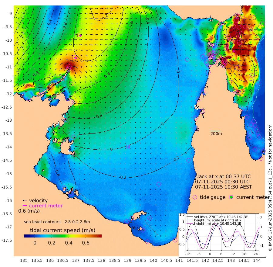 48cm/s 111T +3cm/s rms + 7cm/s -42T. ARA-GOC87 57m 12cm/s 165T +3cm/s rms + 2cm/s -2T. ARA-GOC87 60m 42cm/s 103T +2cm/s rms + 3cm/s 61T. ARA-GOC87 47m 137cm Daru 149cm Bobo Island 118cm Meer Island Barge 137cm Bramble Cay 141cm Unnamed Cay 155cm Pearce Cay 147cm Stephens Island 143cm Merrie England Shoals 132cm Mutacomal Reef 138cm Darnley Island Barge 126cm East Cay 134cm Yorke Island Barge 138cm Rennel Island 137cm Aureed Island 125cm Dungeness Reef 89cm Zagai Island 82cm Yam Island 37cm Dauan Island 24cm Saibai Island 59cm Phipi Reef 85cm Warrior Reef - West 20cm Mabuiag Island Barge 136cm Half Way Island 133cm Coconut Island 128cm Dugong Islet 105cm Poll Island 110cm Kirkcaldie Reef 80cm Suarji Island 89cm Sue Islet 32cm Hawkesbury Island 75cm Alert Patches 82cm Twin Island 41cm Badu Island 70cm St Pauls (Moa Island) 50cm Kubin (Moa Island) 57cm Ince Point 48cm Thursday Island 50cm Nardana Patches 50cm Turtle Head 41cm Round Island 41cm Goods Island 21cm Booby Island 27cm White Rocks Area -2cm Carpentaria 71cm Papou Point 42cm Bampfield Head 19cm Crab Island 20cm Red Wallis Island 46cm Packe Island 140cm Harrington Reef 23cm Herald Camp 6cm Sharp Point 41cm Red Island Point 64cm Possession Island 69cm Alpha Rock 106cm Frederick Point 135cm Wyborn Reef Light 126cm Tetley Island 103cm Triangle Reef 155cm Turtle Head Island 110cm Maclennan Cay 100cm Raine Island 134cm Mcsweeny Reef 128cm Collette Reef 107cm Shadwell Reef 143cm Hannibal Island 141cm Round Point 6cm Vrilya Point 122cm Cape Grenville 125cm Hicks Island 120cm Sir Charles Hardy Island 39cm Harvey Island 116cm Kay Reef 105cm Rocky Island 100cm Chapman Island 94cm Ham Reef 104cm Jubilee Reef 99cm Night Island 98cm Unnamed Reef No. 3 113cm Morris Island 107cm 1st 3 Mile Opening 108cm Creech Reef 109cm Fife Island 129cm Eden Reef 111cm Stanley Island 123cm Normanby River 112cm Yabooma Island 163cm Hutchison River 120cm Elcho Island 103cm North West Crocodile Island 107cm Cape Wessel 122cm Stevens Island 147cm Guluwuru Island 101cm Hopeful Bay 111cm Auster Point 110cm Two Island Bay 168cm Cadell Strait 172cm Mallison Island 120cm Melville Bay (Gove Harbour) 132cm Truant Island 86cm Cape Arnhem 40cm Cape Grey 17cm Hawk Island -39cm Milner Bay (Groote Eylandt) -47cm Cape Beatrice -107cm West Island -103cm Centre Island -74cm Mornington Island -82cm West Wellesley Islands -98cm Bountiful Island -107cm Albert River Mouth -125cm Sweers Island -107cm Karumba -46cm Nassau River Offshore -12cm Christmas Creek 7cm Archer River 11cm Boyd Point 11cm Weipa (Humbug Point) 13cm Pennefather River -1cm Cullen Point