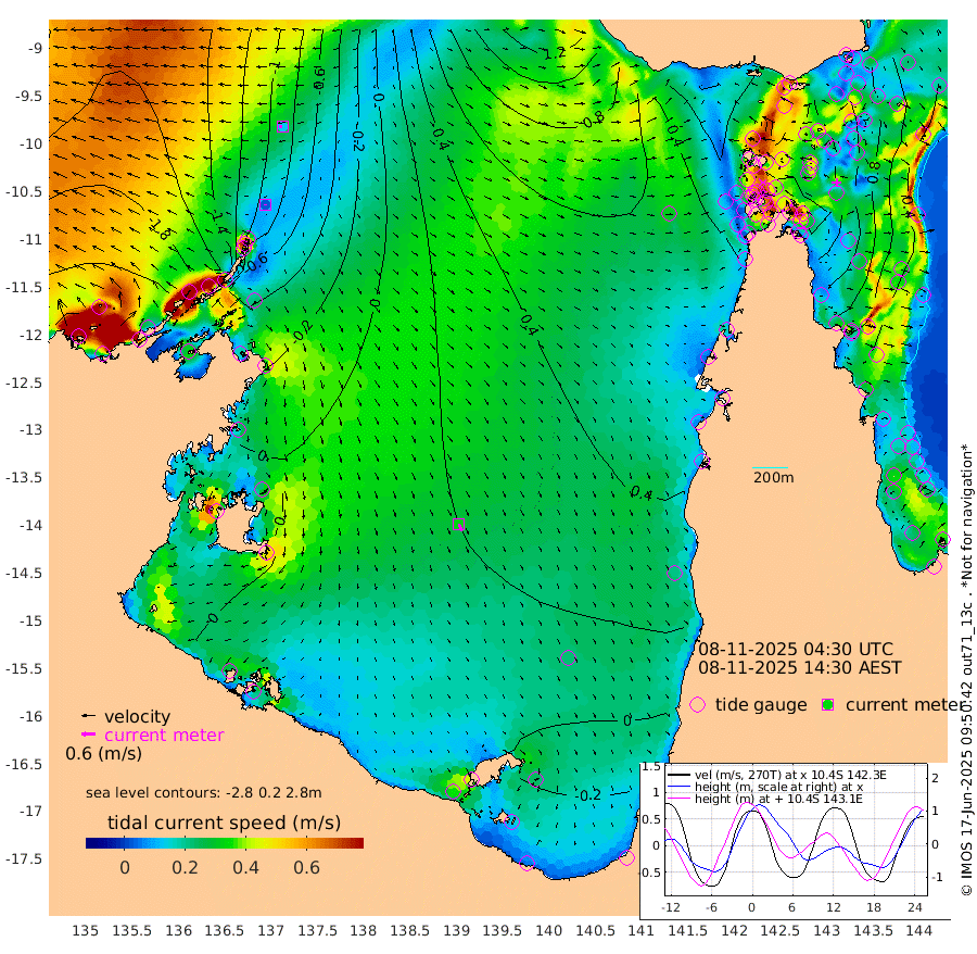2cm/s -170T +3cm/s rms + 7cm/s -42T. ARA-GOC87 57m 32cm/s 159T +3cm/s rms + 2cm/s -2T. ARA-GOC87 60m 13cm/s -96T +2cm/s rms + 3cm/s 61T. ARA-GOC87 47m 115cm Daru 101cm Bobo Island 50cm Meer Island Barge 61cm Bramble Cay 94cm Unnamed Cay 89cm Pearce Cay 84cm Stephens Island 88cm Merrie England Shoals 110cm Mutacomal Reef 86cm Darnley Island Barge 47cm East Cay 103cm Yorke Island Barge 98cm Rennel Island 104cm Aureed Island 117cm Dungeness Reef 132cm Zagai Island 130cm Yam Island 136cm Dauan Island 133cm Saibai Island 132cm Phipi Reef 140cm Warrior Reef - West 105cm Mabuiag Island Barge 101cm Half Way Island 115cm Coconut Island 116cm Dugong Islet 122cm Poll Island 126cm Kirkcaldie Reef 134cm Suarji Island 130cm Sue Islet 62cm Hawkesbury Island 129cm Alert Patches 127cm Twin Island 74cm Badu Island 136cm St Pauls (Moa Island) 82cm Kubin (Moa Island) 114cm Ince Point 106cm Thursday Island 108cm Nardana Patches 92cm Turtle Head 71cm Round Island 63cm Goods Island 55cm Booby Island 47cm White Rocks Area 67cm Carpentaria 109cm Papou Point 66cm Bampfield Head 46cm Crab Island 57cm Red Wallis Island 79cm Packe Island 120cm Harrington Reef 75cm Herald Camp 46cm Sharp Point 71cm Red Island Point 99cm Possession Island 119cm Alpha Rock 123cm Frederick Point 111cm Wyborn Reef Light 116cm Tetley Island 56cm Triangle Reef 110cm Turtle Head Island 53cm Maclennan Cay 29cm Raine Island 91cm Mcsweeny Reef 82cm Collette Reef 56cm Shadwell Reef 84cm Hannibal Island 59cm Round Point 51cm Vrilya Point 61cm Cape Grenville 53cm Hicks Island 65cm Sir Charles Hardy Island 20cm Harvey Island 45cm Kay Reef 36cm Rocky Island 31cm Chapman Island 32cm Ham Reef 38cm Jubilee Reef 39cm Night Island 33cm Unnamed Reef No. 3 35cm Morris Island 40cm 1st 3 Mile Opening 40cm Creech Reef 35cm Fife Island 31cm Eden Reef 39cm Stanley Island 31cm Normanby River -215cm Yabooma Island -236cm Hutchison River -222cm Elcho Island -221cm North West Crocodile Island -108cm Cape Wessel -180cm Stevens Island -51cm Guluwuru Island -172cm Hopeful Bay -133cm Auster Point -137cm Two Island Bay -165cm Cadell Strait 89cm Mallison Island -65cm Melville Bay (Gove Harbour) -62cm Truant Island -30cm Cape Arnhem -31cm Cape Grey -34cm Hawk Island -40cm Milner Bay (Groote Eylandt) -35cm Cape Beatrice -16cm West Island -14cm Centre Island -8cm Mornington Island -1cm West Wellesley Islands -34cm Bountiful Island -90cm Albert River Mouth -103cm Sweers Island -79cm Karumba 20cm Nassau River Offshore 54cm Christmas Creek 44cm Archer River 57cm Boyd Point 45cm Weipa (Humbug Point) 47cm Pennefather River 53cm Cullen Point