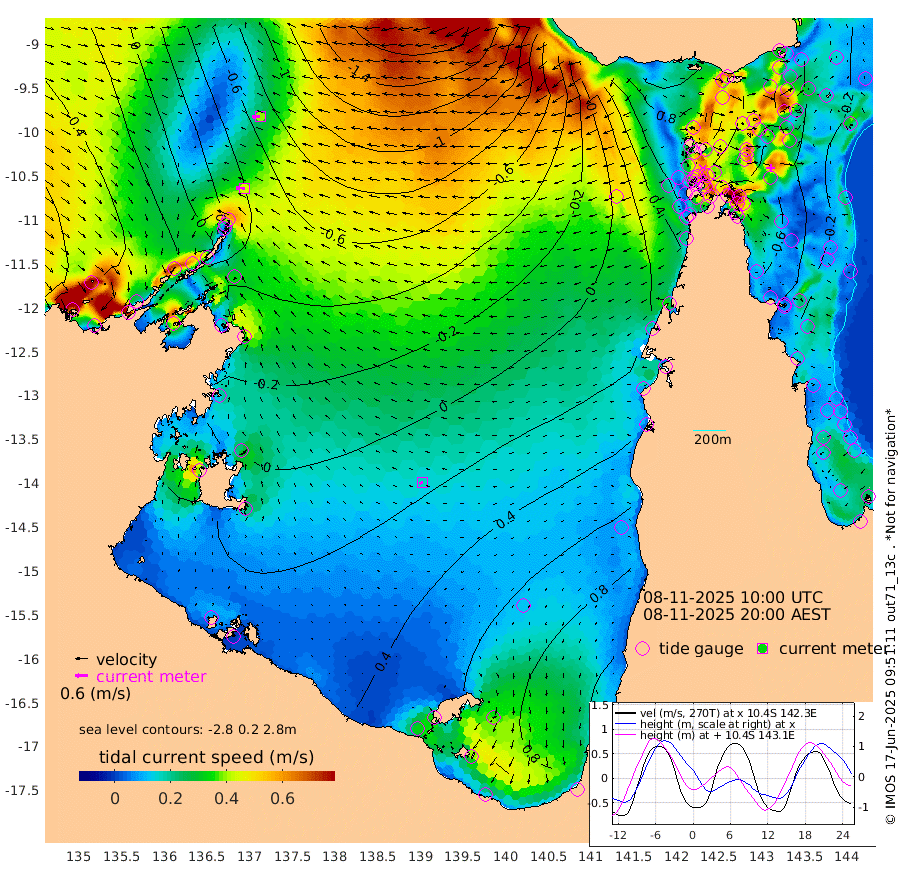 43cm/s -88T +3cm/s rms + 7cm/s -42T. ARA-GOC87 57m 16cm/s -111T +3cm/s rms + 2cm/s -2T. ARA-GOC87 60m 39cm/s -95T +2cm/s rms + 3cm/s 61T. ARA-GOC87 47m -49cm Daru -55cm Bobo Island -21cm Meer Island Barge -27cm Bramble Cay -41cm Unnamed Cay -45cm Pearce Cay -41cm Stephens Island -40cm Merrie England Shoals -45cm Mutacomal Reef -45cm Darnley Island Barge -15cm East Cay -52cm Yorke Island Barge -40cm Rennel Island -48cm Aureed Island -37cm Dungeness Reef -47cm Zagai Island -34cm Yam Island -2cm Dauan Island -17cm Saibai Island 14cm Phipi Reef -31cm Warrior Reef - West -3cm Mabuiag Island Barge -48cm Half Way Island -48cm Coconut Island -48cm Dugong Islet -42cm Poll Island -41cm Kirkcaldie Reef -21cm Suarji Island -51cm Sue Islet 47cm Hawkesbury Island -20cm Alert Patches -30cm Twin Island 42cm Badu Island -30cm St Pauls (Moa Island) 27cm Kubin (Moa Island) -7cm Ince Point 5cm Thursday Island 3cm Nardana Patches 32cm Turtle Head 41cm Round Island 56cm Goods Island 60cm Booby Island 62cm White Rocks Area 12cm Carpentaria -30cm Papou Point 51cm Bampfield Head 45cm Crab Island 55cm Red Wallis Island 46cm Packe Island -54cm Harrington Reef 64cm Herald Camp -13cm Sharp Point 25cm Red Island Point -2cm Possession Island -37cm Alpha Rock -41cm Frederick Point -54cm Wyborn Reef Light -54cm Tetley Island -18cm Triangle Reef -65cm Turtle Head Island -14cm Maclennan Cay 0cm Raine Island -41cm Mcsweeny Reef -35cm Collette Reef -17cm Shadwell Reef -38cm Hannibal Island -24cm Round Point 26cm Vrilya Point -20cm Cape Grenville -17cm Hicks Island -12cm Sir Charles Hardy Island -7cm Harvey Island -11cm Kay Reef -2cm Rocky Island 3cm Chapman Island -3cm Ham Reef -9cm Jubilee Reef -6cm Night Island -2cm Unnamed Reef No. 3 -4cm Morris Island -4cm 1st 3 Mile Opening -7cm Creech Reef -6cm Fife Island -5cm Eden Reef -7cm Stanley Island -8cm Normanby River 39cm Yabooma Island 32cm Hutchison River 34cm Elcho Island 41cm North West Crocodile Island -48cm Cape Wessel -7cm Stevens Island -83cm Guluwuru Island 10cm Hopeful Bay -27cm Auster Point -34cm Two Island Bay -37cm Cadell Strait -208cm Mallison Island -53cm Melville Bay (Gove Harbour) -68cm Truant Island -49cm Cape Arnhem -24cm Cape Grey -4cm Hawk Island 9cm Milner Bay (Groote Eylandt) 25cm Cape Beatrice 41cm West Island 38cm Centre Island 89cm Mornington Island 83cm West Wellesley Islands 143cm Bountiful Island 155cm Albert River Mouth 151cm Sweers Island 163cm Karumba 103cm Nassau River Offshore 84cm Christmas Creek 63cm Archer River 41cm Boyd Point 69cm Weipa (Humbug Point) 20cm Pennefather River 41cm Cullen Point
