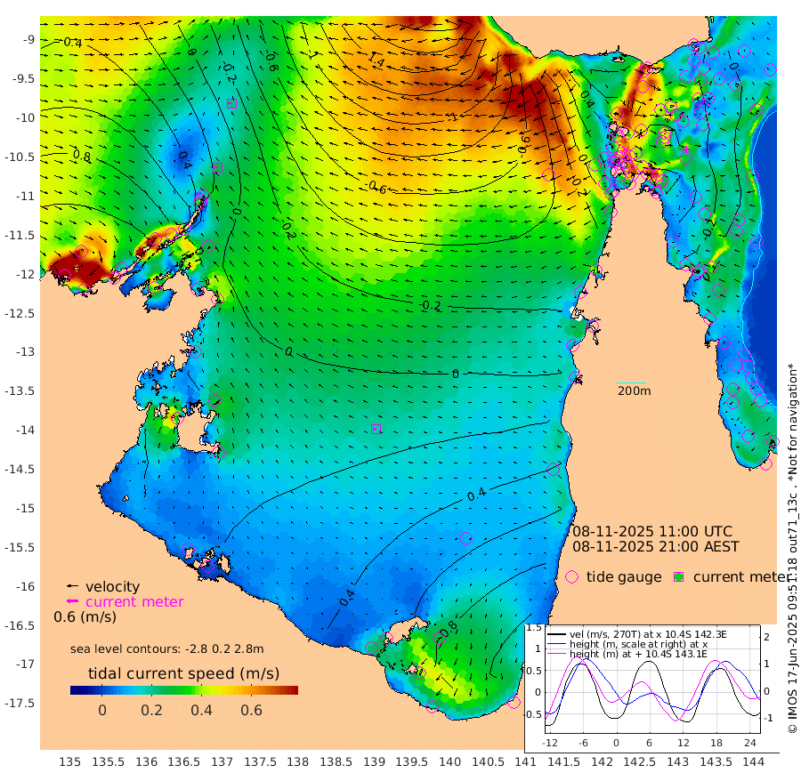 27cm/s -85T +3cm/s rms + 7cm/s -42T. ARA-GOC87 57m 19cm/s -95T +3cm/s rms + 2cm/s -2T. ARA-GOC87 60m 21cm/s -86T +2cm/s rms + 3cm/s 61T. ARA-GOC87 47m -30cm Daru -29cm Bobo Island -4cm Meer Island Barge -4cm Bramble Cay -21cm Unnamed Cay -18cm Pearce Cay -18cm Stephens Island -21cm Merrie England Shoals -28cm Mutacomal Reef -23cm Darnley Island Barge 3cm East Cay -32cm Yorke Island Barge -23cm Rennel Island -26cm Aureed Island -24cm Dungeness Reef -40cm Zagai Island -33cm Yam Island -15cm Dauan Island -30cm Saibai Island 8cm Phipi Reef -26cm Warrior Reef - West -28cm Mabuiag Island Barge -31cm Half Way Island -34cm Coconut Island -35cm Dugong Islet -35cm Poll Island -38cm Kirkcaldie Reef -26cm Suarji Island -48cm Sue Islet -3cm Hawkesbury Island -36cm Alert Patches -40cm Twin Island -1cm Badu Island -42cm St Pauls (Moa Island) -8cm Kubin (Moa Island) -30cm Ince Point -27cm Thursday Island -26cm Nardana Patches -6cm Turtle Head -1cm Round Island 6cm Goods Island -4cm Booby Island 4cm White Rocks Area -55cm Carpentaria -39cm Papou Point -13cm Bampfield Head -11cm Crab Island -5cm Red Wallis Island 2cm Packe Island -40cm Harrington Reef 6cm Herald Camp -18cm Sharp Point -9cm Red Island Point -24cm Possession Island -45cm Alpha Rock -40cm Frederick Point -38cm Wyborn Reef Light -41cm Tetley Island -5cm Triangle Reef -48cm Turtle Head Island -1cm Maclennan Cay 9cm Raine Island -23cm Mcsweeny Reef -18cm Collette Reef -5cm Shadwell Reef -17cm Hannibal Island -2cm Round Point -34cm Vrilya Point -5cm Cape Grenville 0cm Hicks Island 2cm Sir Charles Hardy Island -2cm Harvey Island 2cm Kay Reef 11cm Rocky Island 14cm Chapman Island 6cm Ham Reef 3cm Jubilee Reef 5cm Night Island 7cm Unnamed Reef No. 3 10cm Morris Island 5cm 1st 3 Mile Opening 4cm Creech Reef 8cm Fife Island 14cm Eden Reef 5cm Stanley Island 10cm Normanby River 112cm Yabooma Island 128cm Hutchison River 114cm Elcho Island 117cm North West Crocodile Island 15cm Cape Wessel 71cm Stevens Island -11cm Guluwuru Island 79cm Hopeful Bay 38cm Auster Point 35cm Two Island Bay 59cm Cadell Strait -134cm Mallison Island 12cm Melville Bay (Gove Harbour) -2cm Truant Island -4cm Cape Arnhem 8cm Cape Grey 25cm Hawk Island 25cm Milner Bay (Groote Eylandt) 36cm Cape Beatrice 33cm West Island 29cm Centre Island 94cm Mornington Island 85cm West Wellesley Islands 155cm Bountiful Island 184cm Albert River Mouth 183cm Sweers Island 185cm Karumba 96cm Nassau River Offshore 64cm Christmas Creek 31cm Archer River 4cm Boyd Point 30cm Weipa (Humbug Point) -22cm Pennefather River -13cm Cullen Point