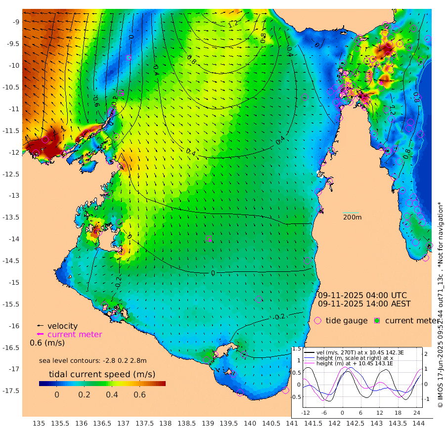 28cm/s 111T +3cm/s rms + 7cm/s -42T. ARA-GOC87 57m 35cm/s 160T +3cm/s rms + 2cm/s -2T. ARA-GOC87 60m 15cm/s 108T +2cm/s rms + 3cm/s 61T. ARA-GOC87 47m 134cm Daru 133cm Bobo Island 92cm Meer Island Barge 104cm Bramble Cay 124cm Unnamed Cay 130cm Pearce Cay 123cm Stephens Island 118cm Merrie England Shoals 127cm Mutacomal Reef 124cm Darnley Island Barge 92cm East Cay 131cm Yorke Island Barge 124cm Rennel Island 132cm Aureed Island 130cm Dungeness Reef 126cm Zagai Island 121cm Yam Island 112cm Dauan Island 108cm Saibai Island 108cm Phipi Reef 132cm Warrior Reef - West 78cm Mabuiag Island Barge 127cm Half Way Island 129cm Coconut Island 133cm Dugong Islet 124cm Poll Island 128cm Kirkcaldie Reef 114cm Suarji Island 126cm Sue Islet 55cm Hawkesbury Island 110cm Alert Patches 115cm Twin Island 62cm Badu Island 116cm St Pauls (Moa Island) 73cm Kubin (Moa Island) 95cm Ince Point 86cm Thursday Island 87cm Nardana Patches 76cm Turtle Head 55cm Round Island 54cm Goods Island 41cm Booby Island 36cm White Rocks Area 44cm Carpentaria 99cm Papou Point 50cm Bampfield Head 33cm Crab Island 43cm Red Wallis Island 68cm Packe Island 136cm Harrington Reef 56cm Herald Camp 31cm Sharp Point 61cm Red Island Point 83cm Possession Island 105cm Alpha Rock 123cm Frederick Point 129cm Wyborn Reef Light 128cm Tetley Island 88cm Triangle Reef 137cm Turtle Head Island 90cm Maclennan Cay 69cm Raine Island 120cm Mcsweeny Reef 112cm Collette Reef 88cm Shadwell Reef 119cm Hannibal Island 103cm Round Point 34cm Vrilya Point 96cm Cape Grenville 94cm Hicks Island 105cm Sir Charles Hardy Island 31cm Harvey Island 85cm Kay Reef 77cm Rocky Island 73cm Chapman Island 72cm Ham Reef 79cm Jubilee Reef 74cm Night Island 73cm Unnamed Reef No. 3 78cm Morris Island 78cm 1st 3 Mile Opening 81cm Creech Reef 78cm Fife Island 86cm Eden Reef 81cm Stanley Island 82cm Normanby River -96cm Yabooma Island -91cm Hutchison River -102cm Elcho Island -108cm North West Crocodile Island -12cm Cape Wessel -65cm Stevens Island 50cm Guluwuru Island -70cm Hopeful Bay -34cm Auster Point -32cm Two Island Bay -19cm Cadell Strait 195cm Mallison Island 21cm Melville Bay (Gove Harbour) 31cm Truant Island 27cm Cape Arnhem -3cm Cape Grey -20cm Hawk Island -57cm Milner Bay (Groote Eylandt) -58cm Cape Beatrice -77cm West Island -76cm Centre Island -59cm Mornington Island -55cm West Wellesley Islands -88cm Bountiful Island -143cm Albert River Mouth -163cm Sweers Island -135cm Karumba -17cm Nassau River Offshore 28cm Christmas Creek 32cm Archer River 45cm Boyd Point 35cm Weipa (Humbug Point) 33cm Pennefather River 35cm Cullen Point