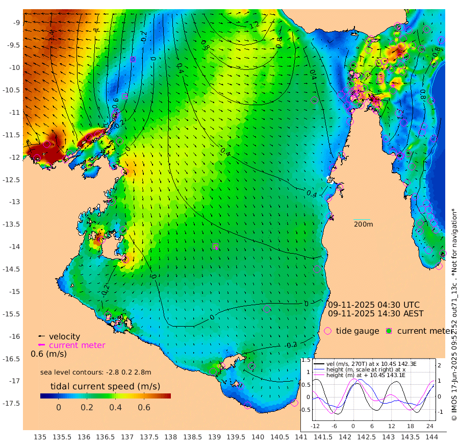 18cm/s 114T +3cm/s rms + 7cm/s -42T. ARA-GOC87 57m 37cm/s 160T +3cm/s rms + 2cm/s -2T. ARA-GOC87 60m 5cm/s 140T +2cm/s rms + 3cm/s 61T. ARA-GOC87 47m 129cm Daru 123cm Bobo Island 82cm Meer Island Barge 93cm Bramble Cay 116cm Unnamed Cay 118cm Pearce Cay 113cm Stephens Island 111cm Merrie England Shoals 123cm Mutacomal Reef 115cm Darnley Island Barge 82cm East Cay 124cm Yorke Island Barge 117cm Rennel Island 124cm Aureed Island 127cm Dungeness Reef 125cm Zagai Island 123cm Yam Island 117cm Dauan Island 114cm Saibai Island 112cm Phipi Reef 133cm Warrior Reef - West 85cm Mabuiag Island Barge 121cm Half Way Island 124cm Coconut Island 130cm Dugong Islet 122cm Poll Island 128cm Kirkcaldie Reef 118cm Suarji Island 128cm Sue Islet 59cm Hawkesbury Island 115cm Alert Patches 118cm Twin Island 65cm Badu Island 120cm St Pauls (Moa Island) 76cm Kubin (Moa Island) 100cm Ince Point 92cm Thursday Island 93cm Nardana Patches 81cm Turtle Head 59cm Round Island 58cm Goods Island 47cm Booby Island 41cm White Rocks Area 55cm Carpentaria 100cm Papou Point 54cm Bampfield Head 39cm Crab Island 50cm Red Wallis Island 73cm Packe Island 132cm Harrington Reef 64cm Herald Camp 36cm Sharp Point 65cm Red Island Point 87cm Possession Island 109cm Alpha Rock 123cm Frederick Point 123cm Wyborn Reef Light 124cm Tetley Island 80cm Triangle Reef 130cm Turtle Head Island 82cm Maclennan Cay 59cm Raine Island 113cm Mcsweeny Reef 105cm Collette Reef 81cm Shadwell Reef 111cm Hannibal Island 92cm Round Point 44cm Vrilya Point 88cm Cape Grenville 85cm Hicks Island 96cm Sir Charles Hardy Island 29cm Harvey Island 77cm Kay Reef 68cm Rocky Island 63cm Chapman Island 63cm Ham Reef 70cm Jubilee Reef 66cm Night Island 64cm Unnamed Reef No. 3 68cm Morris Island 70cm 1st 3 Mile Opening 72cm Creech Reef 69cm Fife Island 73cm Eden Reef 72cm Stanley Island 71cm Normanby River -146cm Yabooma Island -153cm Hutchison River -154cm Elcho Island -157cm North West Crocodile Island -50cm Cape Wessel -114cm Stevens Island 11cm Guluwuru Island -113cm Hopeful Bay -75cm Auster Point -74cm Two Island Bay -76cm Cadell Strait 162cm Mallison Island -14cm Melville Bay (Gove Harbour) -6cm Truant Island 3cm Cape Arnhem -16cm Cape Grey -29cm Hawk Island -55cm Milner Bay (Groote Eylandt) -53cm Cape Beatrice -57cm West Island -57cm Centre Island -43cm Mornington Island -36cm West Wellesley Islands -71cm Bountiful Island -131cm Albert River Mouth -149cm Sweers Island -121cm Karumba -2cm Nassau River Offshore 41cm Christmas Creek 40cm Archer River 53cm Boyd Point 42cm Weipa (Humbug Point) 41cm Pennefather River 44cm Cullen Point