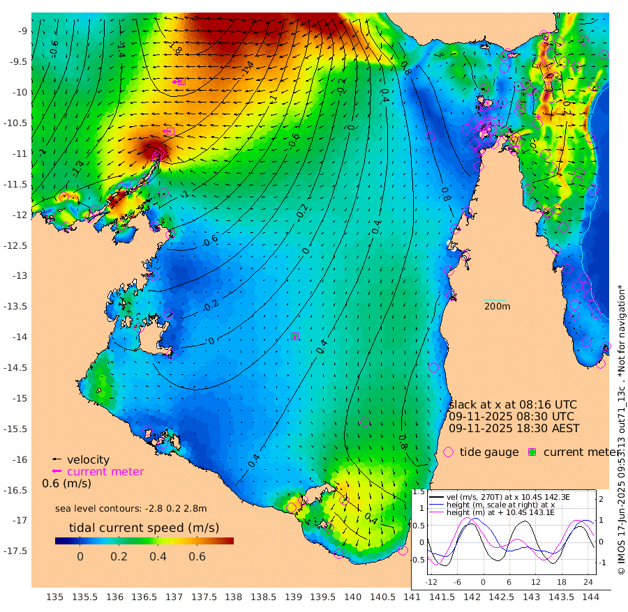 56cm/s -88T +3cm/s rms + 7cm/s -42T. ARA-GOC87 57m 22cm/s -175T +3cm/s rms + 2cm/s -2T. ARA-GOC87 60m 62cm/s -97T +2cm/s rms + 3cm/s 61T. ARA-GOC87 47m -1cm Daru -25cm Bobo Island -22cm Meer Island Barge -23cm Bramble Cay -10cm Unnamed Cay -25cm Pearce Cay -19cm Stephens Island -10cm Merrie England Shoals 3cm Mutacomal Reef -23cm Darnley Island Barge -19cm East Cay -16cm Yorke Island Barge -3cm Rennel Island -15cm Aureed Island 12cm Dungeness Reef 17cm Zagai Island 36cm Yam Island 67cm Dauan Island 56cm Saibai Island 73cm Phipi Reef 35cm Warrior Reef - West 72cm Mabuiag Island Barge -5cm Half Way Island 3cm Coconut Island 5cm Dugong Islet 20cm Poll Island 30cm Kirkcaldie Reef 51cm Suarji Island 21cm Sue Islet 111cm Hawkesbury Island 64cm Alert Patches 50cm Twin Island 104cm Badu Island 56cm St Pauls (Moa Island) 91cm Kubin (Moa Island) 74cm Ince Point 86cm Thursday Island 83cm Nardana Patches 102cm Turtle Head 99cm Round Island 115cm Goods Island 129cm Booby Island 121cm White Rocks Area 106cm Carpentaria 40cm Papou Point 117cm Bampfield Head 111cm Crab Island 126cm Red Wallis Island 113cm Packe Island 4cm Harrington Reef 132cm Herald Camp 21cm Sharp Point 87cm Red Island Point 65cm Possession Island 39cm Alpha Rock 29cm Frederick Point -5cm Wyborn Reef Light 1cm Tetley Island -10cm Triangle Reef -14cm Turtle Head Island -9cm Maclennan Cay -10cm Raine Island -10cm Mcsweeny Reef -10cm Collette Reef -9cm Shadwell Reef -17cm Hannibal Island -20cm Round Point 108cm Vrilya Point -9cm Cape Grenville -15cm Hicks Island -7cm Sir Charles Hardy Island -4cm Harvey Island -11cm Kay Reef -11cm Rocky Island -10cm Chapman Island -10cm Ham Reef -13cm Jubilee Reef -8cm Night Island -8cm Unnamed Reef No. 3 -13cm Morris Island -8cm 1st 3 Mile Opening -10cm Creech Reef -13cm Fife Island -26cm Eden Reef -10cm Stanley Island -23cm Normanby River -176cm Yabooma Island -221cm Hutchison River -189cm Elcho Island -174cm North West Crocodile Island -176cm Cape Wessel -195cm Stevens Island -190cm Guluwuru Island -170cm Hopeful Bay -175cm Auster Point -184cm Two Island Bay -236cm Cadell Strait -226cm Mallison Island -162cm Melville Bay (Gove Harbour) -176cm Truant Island -116cm Cape Arnhem -76cm Cape Grey -55cm Hawk Island -24cm Milner Bay (Groote Eylandt) -1cm Cape Beatrice 51cm West Island 49cm Centre Island 70cm Mornington Island 72cm West Wellesley Islands 86cm Bountiful Island 57cm Albert River Mouth 44cm Sweers Island 77cm Karumba 102cm Nassau River Offshore 110cm Christmas Creek 97cm Archer River 90cm Boyd Point 104cm Weipa (Humbug Point) 83cm Pennefather River 108cm Cullen Point