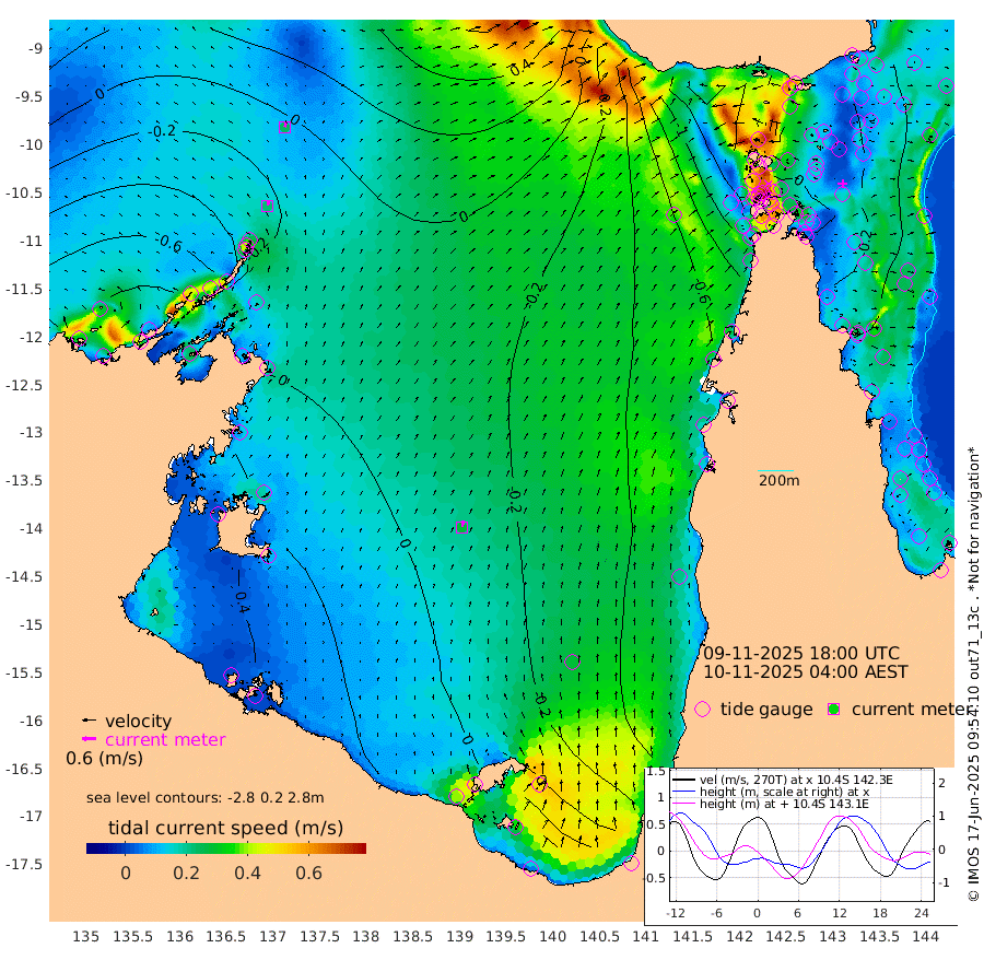 23cm/s 10T +3cm/s rms + 7cm/s -42T. ARA-GOC87 57m 28cm/s 9T +3cm/s rms + 2cm/s -2T. ARA-GOC87 60m 24cm/s 18T +2cm/s rms + 3cm/s 61T. ARA-GOC87 47m -44cm Daru -41cm Bobo Island -45cm Meer Island Barge -49cm Bramble Cay -43cm Unnamed Cay -53cm Pearce Cay -44cm Stephens Island -41cm Merrie England Shoals -43cm Mutacomal Reef -37cm Darnley Island Barge -53cm East Cay -35cm Yorke Island Barge -48cm Rennel Island -41cm Aureed Island -57cm Dungeness Reef -49cm Zagai Island -60cm Yam Island -93cm Dauan Island -70cm Saibai Island -104cm Phipi Reef -67cm Warrior Reef - West -83cm Mabuiag Island Barge -41cm Half Way Island -51cm Coconut Island -42cm Dugong Islet -53cm Poll Island -55cm Kirkcaldie Reef -67cm Suarji Island -38cm Sue Islet -172cm Hawkesbury Island -78cm Alert Patches -71cm Twin Island -168cm Badu Island -70cm St Pauls (Moa Island) -141cm Kubin (Moa Island) -93cm Ince Point -107cm Thursday Island -104cm Nardana Patches -141cm Turtle Head -143cm Round Island -175cm Goods Island -177cm Booby Island -173cm White Rocks Area -107cm Carpentaria -67cm Papou Point -173cm Bampfield Head -147cm Crab Island -169cm Red Wallis Island -162cm Packe Island -42cm Harrington Reef -170cm Herald Camp -5cm Sharp Point -126cm Red Island Point -91cm Possession Island -46cm Alpha Rock -59cm Frederick Point -42cm Wyborn Reef Light -43cm Tetley Island -51cm Triangle Reef -46cm Turtle Head Island -52cm Maclennan Cay -57cm Raine Island -41cm Mcsweeny Reef -40cm Collette Reef -46cm Shadwell Reef -42cm Hannibal Island -54cm Round Point -120cm Vrilya Point -46cm Cape Grenville -52cm Hicks Island -62cm Sir Charles Hardy Island -13cm Harvey Island -50cm Kay Reef -55cm Rocky Island -62cm Chapman Island -53cm Ham Reef -52cm Jubilee Reef -47cm Night Island -56cm Unnamed Reef No. 3 -56cm Morris Island -57cm 1st 3 Mile Opening -54cm Creech Reef -47cm Fife Island -62cm Eden Reef -51cm Stanley Island -51cm Normanby River -93cm Yabooma Island -114cm Hutchison River -86cm Elcho Island -84cm North West Crocodile Island -19cm Cape Wessel -54cm Stevens Island -11cm Guluwuru Island -53cm Hopeful Bay -33cm Auster Point -28cm Two Island Bay -64cm Cadell Strait 74cm Mallison Island -14cm Melville Bay (Gove Harbour) -13cm Truant Island 1cm Cape Arnhem 23cm Cape Grey 29cm Hawk Island 69cm Milner Bay (Groote Eylandt) 60cm Cape Beatrice 96cm West Island 95cm Centre Island 42cm Mornington Island 51cm West Wellesley Islands 23cm Bountiful Island 45cm Albert River Mouth 82cm Sweers Island 30cm Karumba -29cm Nassau River Offshore -73cm Christmas Creek -99cm Archer River -97cm Boyd Point -124cm Weipa (Humbug Point) -84cm Pennefather River -118cm Cullen Point