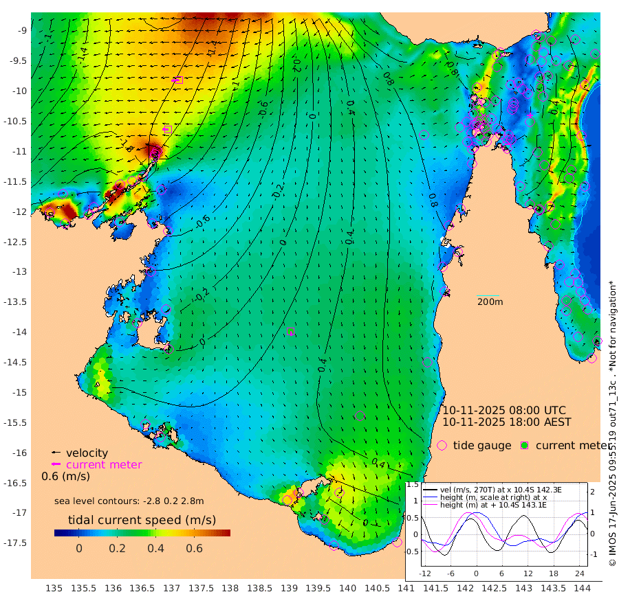 42cm/s -90T +3cm/s rms + 7cm/s -42T. ARA-GOC87 57m 33cm/s 170T +3cm/s rms + 2cm/s -2T. ARA-GOC87 60m 53cm/s -98T +2cm/s rms + 3cm/s 61T. ARA-GOC87 47m 65cm Daru 42cm Bobo Island 20cm Meer Island Barge 28cm Bramble Cay 52cm Unnamed Cay 40cm Pearce Cay 44cm Stephens Island 53cm Merrie England Shoals 67cm Mutacomal Reef 38cm Darnley Island Barge 25cm East Cay 49cm Yorke Island Barge 58cm Rennel Island 48cm Aureed Island 70cm Dungeness Reef 66cm Zagai Island 85cm Yam Island 89cm Dauan Island 81cm Saibai Island 93cm Phipi Reef 82cm Warrior Reef - West 88cm Mabuiag Island Barge 61cm Half Way Island 63cm Coconut Island 73cm Dugong Islet 75cm Poll Island 91cm Kirkcaldie Reef 90cm Suarji Island 79cm Sue Islet 109cm Hawkesbury Island 104cm Alert Patches 95cm Twin Island 100cm Badu Island 100cm St Pauls (Moa Island) 100cm Kubin (Moa Island) 103cm Ince Point 108cm Thursday Island 105cm Nardana Patches 110cm Turtle Head 96cm Round Island 107cm Goods Island 115cm Booby Island 107cm White Rocks Area 106cm Carpentaria 79cm Papou Point 102cm Bampfield Head 101cm Crab Island 116cm Red Wallis Island 116cm Packe Island 75cm Harrington Reef 124cm Herald Camp 35cm Sharp Point 98cm Red Island Point 88cm Possession Island 84cm Alpha Rock 85cm Frederick Point 59cm Wyborn Reef Light 64cm Tetley Island 27cm Triangle Reef 59cm Turtle Head Island 32cm Maclennan Cay 17cm Raine Island 50cm Mcsweeny Reef 44cm Collette Reef 30cm Shadwell Reef 42cm Hannibal Island 31cm Round Point 107cm Vrilya Point 38cm Cape Grenville 29cm Hicks Island 37cm Sir Charles Hardy Island 12cm Harvey Island 29cm Kay Reef 21cm Rocky Island 16cm Chapman Island 19cm Ham Reef 21cm Jubilee Reef 24cm Night Island 22cm Unnamed Reef No. 3 21cm Morris Island 23cm 1st 3 Mile Opening 25cm Creech Reef 23cm Fife Island 10cm Eden Reef 26cm Stanley Island 18cm Normanby River -226cm Yabooma Island -272cm Hutchison River -241cm Elcho Island -227cm North West Crocodile Island -178cm Cape Wessel -225cm Stevens Island -166cm Guluwuru Island -205cm Hopeful Bay -189cm Auster Point -192cm Two Island Bay -242cm Cadell Strait -130cm Mallison Island -152cm Melville Bay (Gove Harbour) -162cm Truant Island -104cm Cape Arnhem -75cm Cape Grey -63cm Hawk Island -43cm Milner Bay (Groote Eylandt) -21cm Cape Beatrice 27cm West Island 24cm Centre Island 38cm Mornington Island 43cm West Wellesley Islands 31cm Bountiful Island -21cm Albert River Mouth -38cm Sweers Island 4cm Karumba 80cm Nassau River Offshore 102cm Christmas Creek 89cm Archer River 90cm Boyd Point 92cm Weipa (Humbug Point) 85cm Pennefather River 102cm Cullen Point