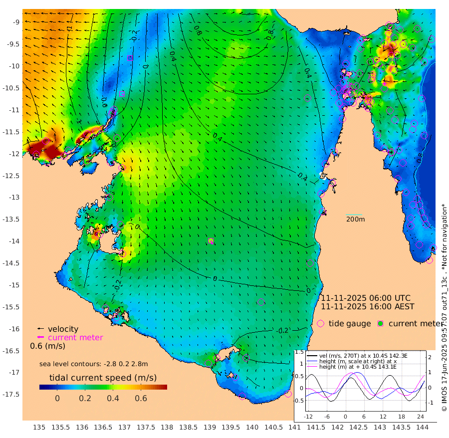 15cm/s 119T +3cm/s rms + 7cm/s -42T. ARA-GOC87 57m 39cm/s 161T +3cm/s rms + 2cm/s -2T. ARA-GOC87 60m 4cm/s 178T +2cm/s rms + 3cm/s 61T. ARA-GOC87 47m 108cm Daru 107cm Bobo Island 93cm Meer Island Barge 100cm Bramble Cay 109cm Unnamed Cay 111cm Pearce Cay 112cm Stephens Island 108cm Merrie England Shoals 106cm Mutacomal Reef 114cm Darnley Island Barge 98cm East Cay 112cm Yorke Island Barge 106cm Rennel Island 108cm Aureed Island 100cm Dungeness Reef 79cm Zagai Island 83cm Yam Island 67cm Dauan Island 67cm Saibai Island 57cm Phipi Reef 88cm Warrior Reef - West 48cm Mabuiag Island Barge 110cm Half Way Island 97cm Coconut Island 112cm Dugong Islet 89cm Poll Island 99cm Kirkcaldie Reef 70cm Suarji Island 94cm Sue Islet 59cm Hawkesbury Island 75cm Alert Patches 80cm Twin Island 46cm Badu Island 75cm St Pauls (Moa Island) 60cm Kubin (Moa Island) 67cm Ince Point 64cm Thursday Island 62cm Nardana Patches 60cm Turtle Head 44cm Round Island 52cm Goods Island 47cm Booby Island 41cm White Rocks Area 53cm Carpentaria 66cm Papou Point 49cm Bampfield Head 39cm Crab Island 51cm Red Wallis Island 63cm Packe Island 110cm Harrington Reef 63cm Herald Camp 18cm Sharp Point 54cm Red Island Point 57cm Possession Island 76cm Alpha Rock 93cm Frederick Point 101cm Wyborn Reef Light 98cm Tetley Island 84cm Triangle Reef 112cm Turtle Head Island 93cm Maclennan Cay 76cm Raine Island 107cm Mcsweeny Reef 102cm Collette Reef 88cm Shadwell Reef 109cm Hannibal Island 102cm Round Point 46cm Vrilya Point 99cm Cape Grenville 96cm Hicks Island 110cm Sir Charles Hardy Island 32cm Harvey Island 95cm Kay Reef 86cm Rocky Island 85cm Chapman Island 85cm Ham Reef 87cm Jubilee Reef 80cm Night Island 85cm Unnamed Reef No. 3 87cm Morris Island 83cm 1st 3 Mile Opening 90cm Creech Reef 93cm Fife Island 97cm Eden Reef 93cm Stanley Island 98cm Normanby River -101cm Yabooma Island -115cm Hutchison River -117cm Elcho Island -118cm North West Crocodile Island -26cm Cape Wessel -82cm Stevens Island 16cm Guluwuru Island -79cm Hopeful Bay -50cm Auster Point -43cm Two Island Bay -42cm Cadell Strait 167cm Mallison Island -5cm Melville Bay (Gove Harbour) 2cm Truant Island 3cm Cape Arnhem -19cm Cape Grey -35cm Hawk Island -66cm Milner Bay (Groote Eylandt) -61cm Cape Beatrice -69cm West Island -74cm Centre Island -59cm Mornington Island -51cm West Wellesley Islands -81cm Bountiful Island -151cm Albert River Mouth -167cm Sweers Island -134cm Karumba -5cm Nassau River Offshore 40cm Christmas Creek 44cm Archer River 55cm Boyd Point 48cm Weipa (Humbug Point) 40cm Pennefather River 48cm Cullen Point