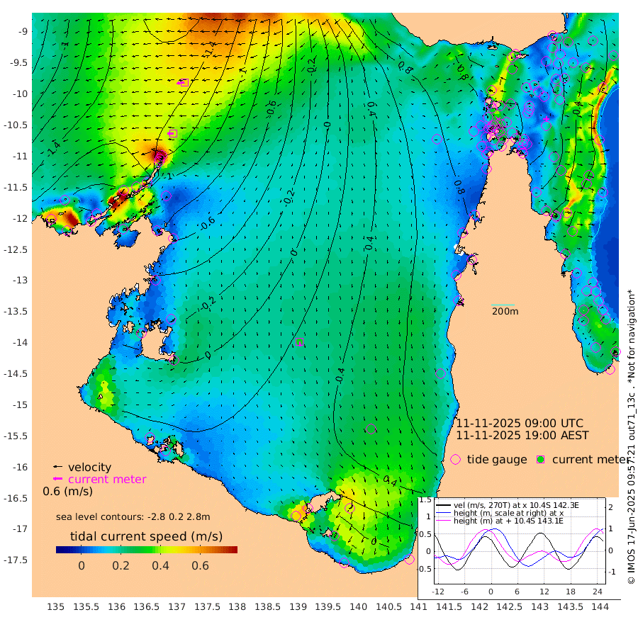42cm/s -91T +3cm/s rms + 7cm/s -42T. ARA-GOC87 57m 32cm/s 173T +3cm/s rms + 2cm/s -2T. ARA-GOC87 60m 52cm/s -99T +2cm/s rms + 3cm/s 61T. ARA-GOC87 47m 77cm Daru 56cm Bobo Island 24cm Meer Island Barge 37cm Bramble Cay 62cm Unnamed Cay 54cm Pearce Cay 55cm Stephens Island 64cm Merrie England Shoals 80cm Mutacomal Reef 45cm Darnley Island Barge 31cm East Cay 57cm Yorke Island Barge 71cm Rennel Island 58cm Aureed Island 82cm Dungeness Reef 72cm Zagai Island 93cm Yam Island 86cm Dauan Island 77cm Saibai Island 97cm Phipi Reef 89cm Warrior Reef - West 87cm Mabuiag Island Barge 74cm Half Way Island 75cm Coconut Island 85cm Dugong Islet 86cm Poll Island 103cm Kirkcaldie Reef 96cm Suarji Island 85cm Sue Islet 113cm Hawkesbury Island 110cm Alert Patches 104cm Twin Island 101cm Badu Island 107cm St Pauls (Moa Island) 105cm Kubin (Moa Island) 108cm Ince Point 111cm Thursday Island 109cm Nardana Patches 112cm Turtle Head 97cm Round Island 107cm Goods Island 111cm Booby Island 105cm White Rocks Area 94cm Carpentaria 88cm Papou Point 92cm Bampfield Head 99cm Crab Island 113cm Red Wallis Island 119cm Packe Island 90cm Harrington Reef 120cm Herald Camp 36cm Sharp Point 105cm Red Island Point 93cm Possession Island 90cm Alpha Rock 96cm Frederick Point 72cm Wyborn Reef Light 76cm Tetley Island 30cm Triangle Reef 75cm Turtle Head Island 36cm Maclennan Cay 18cm Raine Island 59cm Mcsweeny Reef 51cm Collette Reef 32cm Shadwell Reef 51cm Hannibal Island 41cm Round Point 102cm Vrilya Point 45cm Cape Grenville 36cm Hicks Island 39cm Sir Charles Hardy Island 14cm Harvey Island 33cm Kay Reef 24cm Rocky Island 16cm Chapman Island 18cm Ham Reef 22cm Jubilee Reef 26cm Night Island 22cm Unnamed Reef No. 3 24cm Morris Island 22cm 1st 3 Mile Opening 26cm Creech Reef 26cm Fife Island 13cm Eden Reef 28cm Stanley Island 23cm Normanby River -195cm Yabooma Island -232cm Hutchison River -207cm Elcho Island -191cm North West Crocodile Island -164cm Cape Wessel -199cm Stevens Island -157cm Guluwuru Island -183cm Hopeful Bay -171cm Auster Point -171cm Two Island Bay -212cm Cadell Strait -157cm Mallison Island -142cm Melville Bay (Gove Harbour) -153cm Truant Island -101cm Cape Arnhem -71cm Cape Grey -59cm Hawk Island -43cm Milner Bay (Groote Eylandt) -19cm Cape Beatrice 25cm West Island 20cm Centre Island 40cm Mornington Island 40cm West Wellesley Islands 34cm Bountiful Island -11cm Albert River Mouth -29cm Sweers Island 16cm Karumba 82cm Nassau River Offshore 99cm Christmas Creek 85cm Archer River 82cm Boyd Point 86cm Weipa (Humbug Point) 81cm Pennefather River 94cm Cullen Point