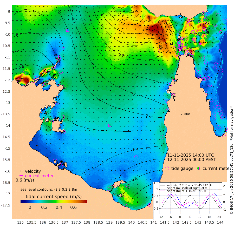 11cm/s -78T +3cm/s rms + 7cm/s -42T. ARA-GOC87 57m 19cm/s -89T +3cm/s rms + 2cm/s -2T. ARA-GOC87 60m 8cm/s -47T +2cm/s rms + 3cm/s 61T. ARA-GOC87 47m -63cm Daru -63cm Bobo Island -48cm Meer Island Barge -55cm Bramble Cay -69cm Unnamed Cay -58cm Pearce Cay -69cm Stephens Island -72cm Merrie England Shoals -68cm Mutacomal Reef -64cm Darnley Island Barge -53cm East Cay -65cm Yorke Island Barge -68cm Rennel Island -59cm Aureed Island -52cm Dungeness Reef -35cm Zagai Island -44cm Yam Island 14cm Dauan Island -2cm Saibai Island 25cm Phipi Reef -20cm Warrior Reef - West -23cm Mabuiag Island Barge -72cm Half Way Island -63cm Coconut Island -73cm Dugong Islet -53cm Poll Island -66cm Kirkcaldie Reef -40cm Suarji Island -60cm Sue Islet -49cm Hawkesbury Island -53cm Alert Patches -58cm Twin Island -22cm Badu Island -50cm St Pauls (Moa Island) -43cm Kubin (Moa Island) -47cm Ince Point -48cm Thursday Island -45cm Nardana Patches -35cm Turtle Head -48cm Round Island -36cm Goods Island -50cm Booby Island -47cm White Rocks Area -91cm Carpentaria -53cm Papou Point -83cm Bampfield Head -44cm Crab Island -49cm Red Wallis Island -41cm Packe Island -83cm Harrington Reef -60cm Herald Camp -12cm Sharp Point -40cm Red Island Point -55cm Possession Island -62cm Alpha Rock -67cm Frederick Point -74cm Wyborn Reef Light -73cm Tetley Island -40cm Triangle Reef -92cm Turtle Head Island -51cm Maclennan Cay -36cm Raine Island -67cm Mcsweeny Reef -61cm Collette Reef -45cm Shadwell Reef -64cm Hannibal Island -59cm Round Point -60cm Vrilya Point -61cm Cape Grenville -55cm Hicks Island -55cm Sir Charles Hardy Island -20cm Harvey Island -56cm Kay Reef -41cm Rocky Island -34cm Chapman Island -42cm Ham Reef -44cm Jubilee Reef -39cm Night Island -42cm Unnamed Reef No. 3 -44cm Morris Island -42cm 1st 3 Mile Opening -45cm Creech Reef -45cm Fife Island -41cm Eden Reef -51cm Stanley Island -54cm Normanby River 69cm Yabooma Island 93cm Hutchison River 85cm Elcho Island 86cm North West Crocodile Island 5cm Cape Wessel 54cm Stevens Island 6cm Guluwuru Island 55cm Hopeful Bay 23cm Auster Point 18cm Two Island Bay 58cm Cadell Strait -57cm Mallison Island 19cm Melville Bay (Gove Harbour) 6cm Truant Island 9cm Cape Arnhem 18cm Cape Grey 36cm Hawk Island 39cm Milner Bay (Groote Eylandt) 49cm Cape Beatrice 44cm West Island 44cm Centre Island 111cm Mornington Island 104cm West Wellesley Islands 157cm Bountiful Island 221cm Albert River Mouth 218cm Sweers Island 207cm Karumba 97cm Nassau River Offshore 53cm Christmas Creek 14cm Archer River -17cm Boyd Point 2cm Weipa (Humbug Point) -31cm Pennefather River -44cm Cullen Point