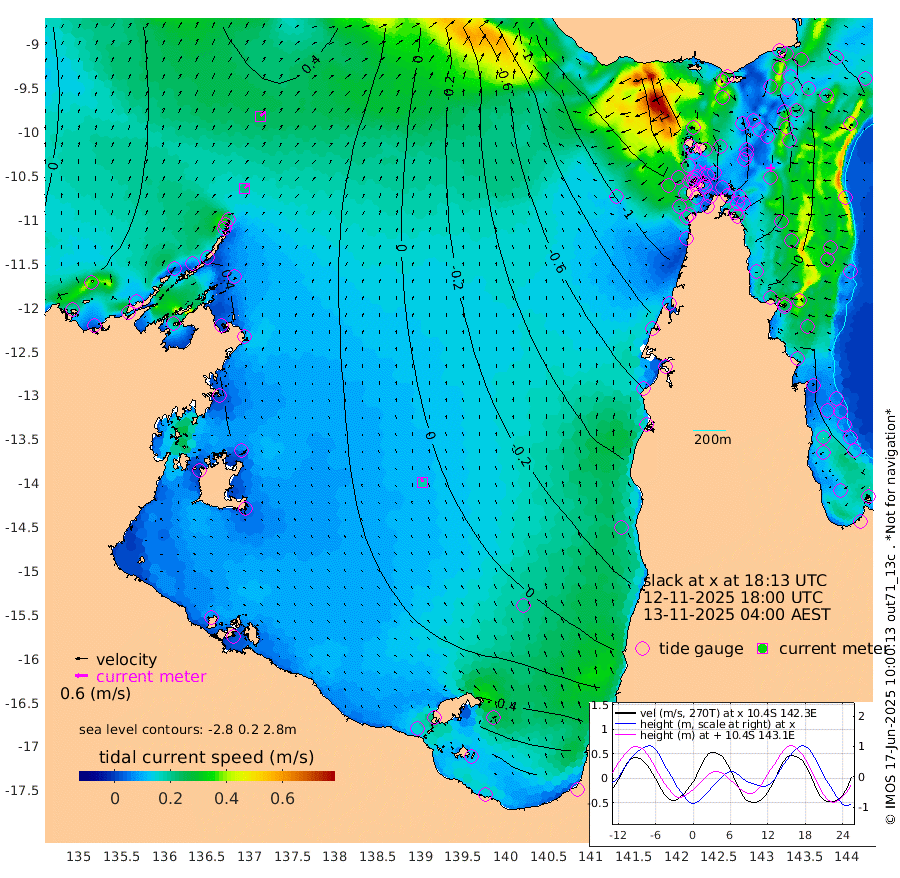 21cm/s 45T +3cm/s rms + 7cm/s -42T. ARA-GOC87 57m 18cm/s -25T +3cm/s rms + 2cm/s -2T. ARA-GOC87 60m 28cm/s 44T +2cm/s rms + 3cm/s 61T. ARA-GOC87 47m -42cm Daru -27cm Bobo Island 8cm Meer Island Barge -1cm Bramble Cay -25cm Unnamed Cay -21cm Pearce Cay -13cm Stephens Island -19cm Merrie England Shoals -46cm Mutacomal Reef -4cm Darnley Island Barge 5cm East Cay -21cm Yorke Island Barge -36cm Rennel Island -23cm Aureed Island -57cm Dungeness Reef -78cm Zagai Island -100cm Yam Island -114cm Dauan Island -106cm Saibai Island -111cm Phipi Reef -86cm Warrior Reef - West -132cm Mabuiag Island Barge -37cm Half Way Island -56cm Coconut Island -51cm Dugong Islet -78cm Poll Island -84cm Kirkcaldie Reef -102cm Suarji Island -74cm Sue Islet -202cm Hawkesbury Island -119cm Alert Patches -115cm Twin Island -181cm Badu Island -124cm St Pauls (Moa Island) -170cm Kubin (Moa Island) -136cm Ince Point -149cm Thursday Island -146cm Nardana Patches -158cm Turtle Head -176cm Round Island -180cm Goods Island -193cm Booby Island -186cm White Rocks Area -159cm Carpentaria -116cm Papou Point -201cm Bampfield Head -162cm Crab Island -187cm Red Wallis Island -176cm Packe Island -56cm Harrington Reef -203cm Herald Camp -32cm Sharp Point -150cm Red Island Point -132cm Possession Island -95cm Alpha Rock -90cm Frederick Point -53cm Wyborn Reef Light -64cm Tetley Island -10cm Triangle Reef -59cm Turtle Head Island -6cm Maclennan Cay 7cm Raine Island -19cm Mcsweeny Reef -11cm Collette Reef 1cm Shadwell Reef -6cm Hannibal Island -4cm Round Point -150cm Vrilya Point -5cm Cape Grenville -3cm Hicks Island -8cm Sir Charles Hardy Island -1cm Harvey Island 5cm Kay Reef 8cm Rocky Island 11cm Chapman Island 9cm Ham Reef 8cm Jubilee Reef 7cm Night Island 9cm Unnamed Reef No. 3 10cm Morris Island 5cm 1st 3 Mile Opening 8cm Creech Reef 22cm Fife Island 23cm Eden Reef 12cm Stanley Island 17cm Normanby River 10cm Yabooma Island 23cm Hutchison River 26cm Elcho Island 17cm North West Crocodile Island 40cm Cape Wessel 38cm Stevens Island 64cm Guluwuru Island 39cm Hopeful Bay 35cm Auster Point 31cm Two Island Bay 53cm Cadell Strait 159cm Mallison Island 57cm Melville Bay (Gove Harbour) 56cm Truant Island 49cm Cape Arnhem 52cm Cape Grey 55cm Hawk Island 66cm Milner Bay (Groote Eylandt) 64cm Cape Beatrice 65cm West Island 63cm Centre Island 85cm Mornington Island 91cm West Wellesley Islands 94cm Bountiful Island 140cm Albert River Mouth 167cm Sweers Island 117cm Karumba 31cm Nassau River Offshore -18cm Christmas Creek -59cm Archer River -82cm Boyd Point -89cm Weipa (Humbug Point) -89cm Pennefather River -136cm Cullen Point