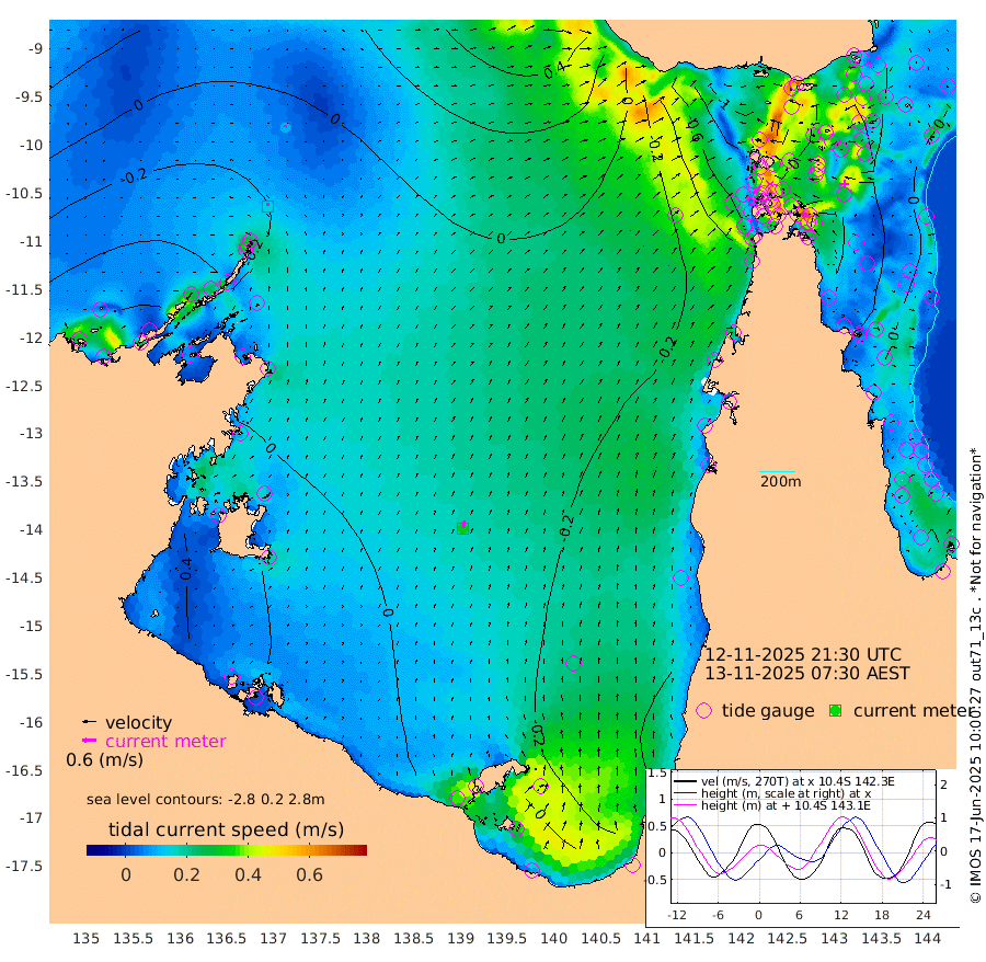 14cm/s -9T +3cm/s rms + 7cm/s -42T. ARA-GOC87 57m 31cm/s 10T +3cm/s rms + 2cm/s -2T. ARA-GOC87 60m 10cm/s 16T +2cm/s rms + 3cm/s 61T. ARA-GOC87 47m 20cm Daru 23cm Bobo Island 1cm Meer Island Barge 9cm Bramble Cay 22cm Unnamed Cay 13cm Pearce Cay 22cm Stephens Island 27cm Merrie England Shoals 23cm Mutacomal Reef 15cm Darnley Island Barge 3cm East Cay 18cm Yorke Island Barge 23cm Rennel Island 19cm Aureed Island 8cm Dungeness Reef -6cm Zagai Island -9cm Yam Island -79cm Dauan Island -66cm Saibai Island -67cm Phipi Reef -28cm Warrior Reef - West -47cm Mabuiag Island Barge 25cm Half Way Island 22cm Coconut Island 23cm Dugong Islet 8cm Poll Island 13cm Kirkcaldie Reef 3cm Suarji Island 7cm Sue Islet -93cm Hawkesbury Island -7cm Alert Patches -3cm Twin Island -91cm Badu Island -9cm St Pauls (Moa Island) -64cm Kubin (Moa Island) -26cm Ince Point -36cm Thursday Island -35cm Nardana Patches -61cm Turtle Head -55cm Round Island -85cm Goods Island -84cm Booby Island -73cm White Rocks Area -32cm Carpentaria -5cm Papou Point -55cm Bampfield Head -68cm Crab Island -81cm Red Wallis Island -75cm Packe Island 39cm Harrington Reef -80cm Herald Camp 2cm Sharp Point -53cm Red Island Point -12cm Possession Island 8cm Alpha Rock 12cm Frederick Point 27cm Wyborn Reef Light 23cm Tetley Island -8cm Triangle Reef 35cm Turtle Head Island 0cm Maclennan Cay -11cm Raine Island 21cm Mcsweeny Reef 16cm Collette Reef -2cm Shadwell Reef 20cm Hannibal Island 10cm Round Point -54cm Vrilya Point 13cm Cape Grenville 6cm Hicks Island -9cm Sir Charles Hardy Island 5cm Harvey Island 5cm Kay Reef -8cm Rocky Island -19cm Chapman Island -12cm Ham Reef -8cm Jubilee Reef -3cm Night Island -11cm Unnamed Reef No. 3 -3cm Morris Island -5cm 1st 3 Mile Opening -5cm Creech Reef -1cm Fife Island -12cm Eden Reef -1cm Stanley Island 2cm Normanby River -60cm Yabooma Island -65cm Hutchison River -51cm Elcho Island -53cm North West Crocodile Island -15cm Cape Wessel -38cm Stevens Island -20cm Guluwuru Island -40cm Hopeful Bay -20cm Auster Point -26cm Two Island Bay -66cm Cadell Strait -46cm Mallison Island -19cm Melville Bay (Gove Harbour) -16cm Truant Island -6cm Cape Arnhem 15cm Cape Grey 15cm Hawk Island 48cm Milner Bay (Groote Eylandt) 41cm Cape Beatrice 68cm West Island 71cm Centre Island 14cm Mornington Island 16cm West Wellesley Islands -12cm Bountiful Island -4cm Albert River Mouth 21cm Sweers Island -11cm Karumba -43cm Nassau River Offshore -65cm Christmas Creek -69cm Archer River -60cm Boyd Point -80cm Weipa (Humbug Point) -42cm Pennefather River -63cm Cullen Point