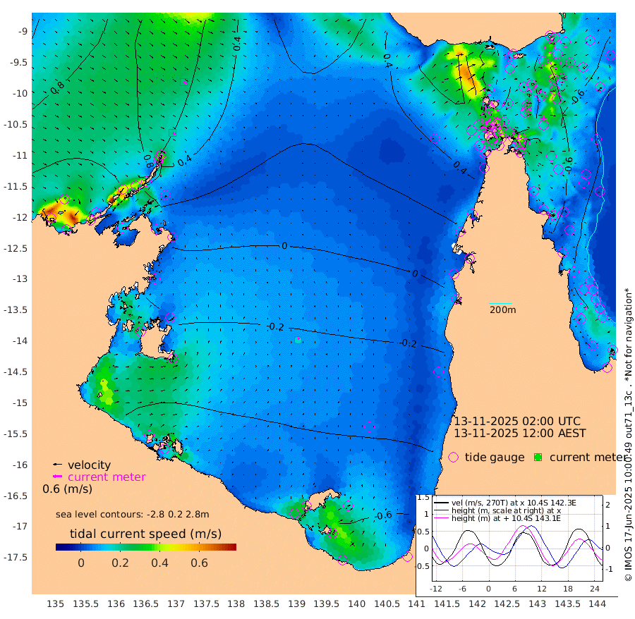 19cm/s 128T +3cm/s rms + 7cm/s -42T. ARA-GOC87 57m 15cm/s 16T +3cm/s rms + 2cm/s -2T. ARA-GOC87 60m 23cm/s 122T +2cm/s rms + 3cm/s 61T. ARA-GOC87 47m -53cm Daru -54cm Bobo Island -45cm Meer Island Barge -54cm Bramble Cay -54cm Unnamed Cay -59cm Pearce Cay -62cm Stephens Island -63cm Merrie England Shoals -52cm Mutacomal Reef -58cm Darnley Island Barge -51cm East Cay -53cm Yorke Island Barge -53cm Rennel Island -55cm Aureed Island -40cm Dungeness Reef -4cm Zagai Island -2cm Yam Island 34cm Dauan Island 34cm Saibai Island 15cm Phipi Reef -12cm Warrior Reef - West 52cm Mabuiag Island Barge -55cm Half Way Island -36cm Coconut Island -51cm Dugong Islet -21cm Poll Island -31cm Kirkcaldie Reef 3cm Suarji Island -20cm Sue Islet 98cm Hawkesbury Island 9cm Alert Patches 6cm Twin Island 91cm Badu Island 14cm St Pauls (Moa Island) 71cm Kubin (Moa Island) 31cm Ince Point 45cm Thursday Island 43cm Nardana Patches 57cm Turtle Head 90cm Round Island 88cm Goods Island 105cm Booby Island 100cm White Rocks Area 93cm Carpentaria 21cm Papou Point 134cm Bampfield Head 83cm Crab Island 93cm Red Wallis Island 68cm Packe Island -53cm Harrington Reef 102cm Herald Camp -3cm Sharp Point 49cm Red Island Point 41cm Possession Island 1cm Alpha Rock -18cm Frederick Point -37cm Wyborn Reef Light -29cm Tetley Island -32cm Triangle Reef -38cm Turtle Head Island -40cm Maclennan Cay -32cm Raine Island -56cm Mcsweeny Reef -54cm Collette Reef -41cm Shadwell Reef -61cm Hannibal Island -56cm Round Point 70cm Vrilya Point -53cm Cape Grenville -47cm Hicks Island -41cm Sir Charles Hardy Island -17cm Harvey Island -49cm Kay Reef -40cm Rocky Island -34cm Chapman Island -34cm Ham Reef -38cm Jubilee Reef -41cm Night Island -38cm Unnamed Reef No. 3 -43cm Morris Island -32cm 1st 3 Mile Opening -41cm Creech Reef -57cm Fife Island -48cm Eden Reef -47cm Stanley Island -54cm Normanby River 126cm Yabooma Island 135cm Hutchison River 119cm Elcho Island 113cm North West Crocodile Island 77cm Cape Wessel 103cm Stevens Island 47cm Guluwuru Island 94cm Hopeful Bay 88cm Auster Point 86cm Two Island Bay 85cm Cadell Strait -31cm Mallison Island 45cm Melville Bay (Gove Harbour) 54cm Truant Island 25cm Cape Arnhem 5cm Cape Grey -8cm Hawk Island -20cm Milner Bay (Groote Eylandt) -40cm Cape Beatrice -70cm West Island -62cm Centre Island -107cm Mornington Island -109cm West Wellesley Islands -108cm Bountiful Island -115cm Albert River Mouth -124cm Sweers Island -121cm Karumba -96cm Nassau River Offshore -62cm Christmas Creek -8cm Archer River 18cm Boyd Point 24cm Weipa (Humbug Point) 24cm Pennefather River 63cm Cullen Point