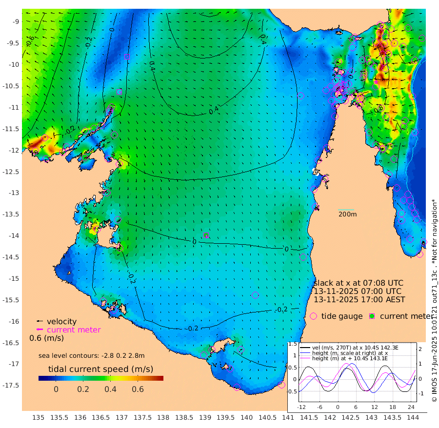14cm/s 112T +3cm/s rms + 7cm/s -42T. ARA-GOC87 57m 31cm/s 163T +3cm/s rms + 2cm/s -2T. ARA-GOC87 60m 6cm/s 117T +2cm/s rms + 3cm/s 61T. ARA-GOC87 47m 79cm Daru 85cm Bobo Island 93cm Meer Island Barge 99cm Bramble Cay 93cm Unnamed Cay 94cm Pearce Cay 100cm Stephens Island 96cm Merrie England Shoals 82cm Mutacomal Reef 100cm Darnley Island Barge 103cm East Cay 89cm Yorke Island Barge 85cm Rennel Island 83cm Aureed Island 65cm Dungeness Reef 31cm Zagai Island 38cm Yam Island 11cm Dauan Island 16cm Saibai Island 1cm Phipi Reef 38cm Warrior Reef - West 4cm Mabuiag Island Barge 85cm Half Way Island 64cm Coconut Island 81cm Dugong Islet 49cm Poll Island 57cm Kirkcaldie Reef 19cm Suarji Island 51cm Sue Islet 36cm Hawkesbury Island 25cm Alert Patches 33cm Twin Island 11cm Badu Island 21cm St Pauls (Moa Island) 29cm Kubin (Moa Island) 21cm Ince Point 20cm Thursday Island 18cm Nardana Patches 22cm Turtle Head 20cm Round Island 25cm Goods Island 21cm Booby Island 19cm White Rocks Area 23cm Carpentaria 23cm Papou Point 29cm Bampfield Head 14cm Crab Island 26cm Red Wallis Island 36cm Packe Island 77cm Harrington Reef 43cm Herald Camp -2cm Sharp Point 24cm Red Island Point 19cm Possession Island 37cm Alpha Rock 53cm Frederick Point 76cm Wyborn Reef Light 69cm Tetley Island 81cm Triangle Reef 82cm Turtle Head Island 91cm Maclennan Cay 83cm Raine Island 91cm Mcsweeny Reef 90cm Collette Reef 86cm Shadwell Reef 99cm Hannibal Island 104cm Round Point 17cm Vrilya Point 98cm Cape Grenville 97cm Hicks Island 111cm Sir Charles Hardy Island 31cm Harvey Island 102cm Kay Reef 93cm Rocky Island 96cm Chapman Island 94cm Ham Reef 93cm Jubilee Reef 84cm Night Island 94cm Unnamed Reef No. 3 95cm Morris Island 85cm 1st 3 Mile Opening 94cm Creech Reef 103cm Fife Island 110cm Eden Reef 100cm Stanley Island 111cm Normanby River -3cm Yabooma Island -11cm Hutchison River -22cm Elcho Island -25cm North West Crocodile Island 33cm Cape Wessel 3cm Stevens Island 52cm Guluwuru Island 5cm Hopeful Bay 15cm Auster Point 26cm Two Island Bay 37cm Cadell Strait 187cm Mallison Island 35cm Melville Bay (Gove Harbour) 43cm Truant Island 25cm Cape Arnhem -5cm Cape Grey -20cm Hawk Island -57cm Milner Bay (Groote Eylandt) -56cm Cape Beatrice -77cm West Island -84cm Centre Island -66cm Mornington Island -61cm West Wellesley Islands -74cm Bountiful Island -136cm Albert River Mouth -146cm Sweers Island -121cm Karumba -15cm Nassau River Offshore 22cm Christmas Creek 28cm Archer River 35cm Boyd Point 33cm Weipa (Humbug Point) 13cm Pennefather River 26cm Cullen Point