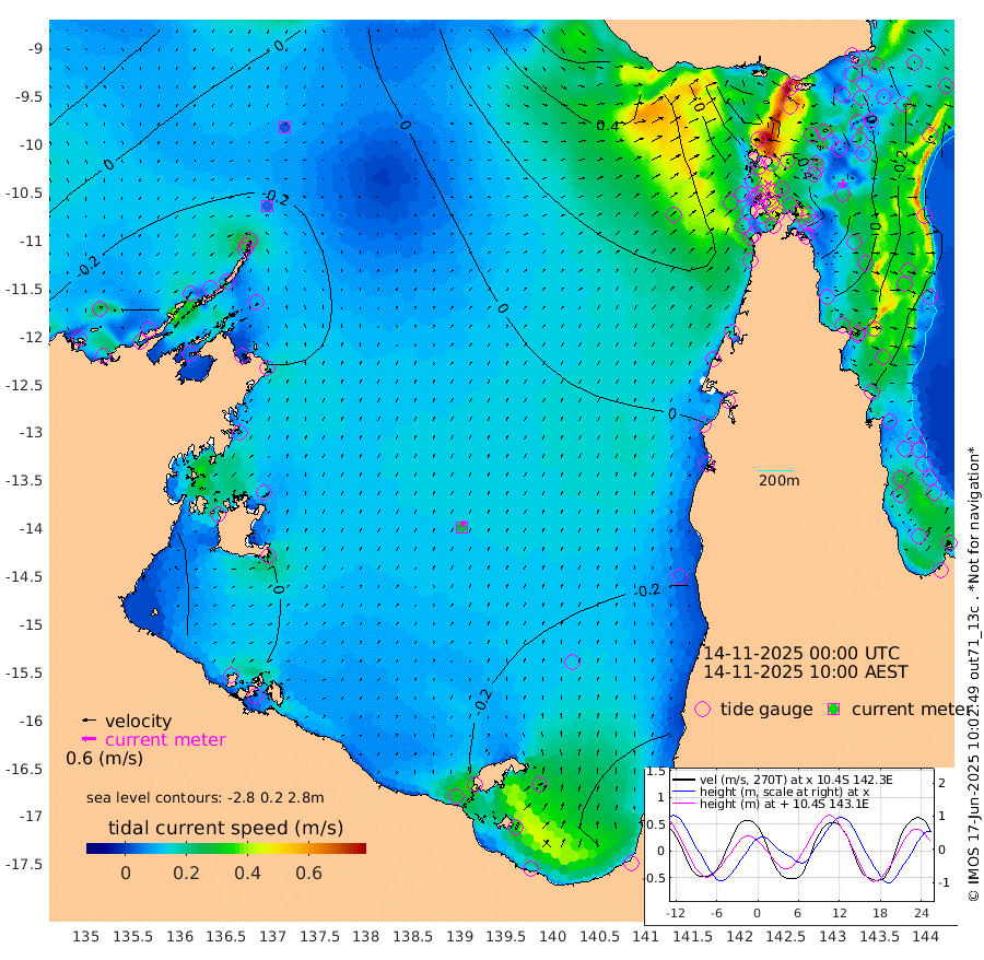 5cm/s -54T +3cm/s rms + 7cm/s -42T. ARA-GOC87 57m 27cm/s 13T +3cm/s rms + 2cm/s -2T. ARA-GOC87 60m 2cm/s 158T +2cm/s rms + 3cm/s 61T. ARA-GOC87 47m 18cm Daru 13cm Bobo Island -28cm Meer Island Barge -21cm Bramble Cay 5cm Unnamed Cay -2cm Pearce Cay -4cm Stephens Island 0cm Merrie England Shoals 19cm Mutacomal Reef -11cm Darnley Island Barge -30cm East Cay 5cm Yorke Island Barge 13cm Rennel Island 10cm Aureed Island 24cm Dungeness Reef 44cm Zagai Island 46cm Yam Island 17cm Dauan Island 21cm Saibai Island 22cm Phipi Reef 28cm Warrior Reef - West 43cm Mabuiag Island Barge 16cm Half Way Island 34cm Coconut Island 23cm Dugong Islet 41cm Poll Island 41cm Kirkcaldie Reef 65cm Suarji Island 37cm Sue Islet 21cm Hawkesbury Island 56cm Alert Patches 56cm Twin Island 27cm Badu Island 62cm St Pauls (Moa Island) 36cm Kubin (Moa Island) 51cm Ince Point 49cm Thursday Island 50cm Nardana Patches 33cm Turtle Head 48cm Round Island 23cm Goods Island 28cm Booby Island 34cm White Rocks Area 51cm Carpentaria 59cm Papou Point 62cm Bampfield Head 23cm Crab Island 25cm Red Wallis Island 24cm Packe Island 39cm Harrington Reef 34cm Herald Camp 21cm Sharp Point 28cm Red Island Point 61cm Possession Island 51cm Alpha Rock 46cm Frederick Point 31cm Wyborn Reef Light 36cm Tetley Island -20cm Triangle Reef 36cm Turtle Head Island -21cm Maclennan Cay -35cm Raine Island 1cm Mcsweeny Reef -7cm Collette Reef -25cm Shadwell Reef -9cm Hannibal Island -22cm Round Point 21cm Vrilya Point -18cm Cape Grenville -22cm Hicks Island -30cm Sir Charles Hardy Island -5cm Harvey Island -31cm Kay Reef -36cm Rocky Island -46cm Chapman Island -40cm Ham Reef -36cm Jubilee Reef -30cm Night Island -41cm Unnamed Reef No. 3 -36cm Morris Island -28cm 1st 3 Mile Opening -35cm Creech Reef -46cm Fife Island -51cm Eden Reef -38cm Stanley Island -42cm Normanby River -30cm Yabooma Island -30cm Hutchison River -25cm Elcho Island -25cm North West Crocodile Island -16cm Cape Wessel -27cm Stevens Island -30cm Guluwuru Island -34cm Hopeful Bay -15cm Auster Point -21cm Two Island Bay -61cm Cadell Strait -136cm Mallison Island -27cm Melville Bay (Gove Harbour) -23cm Truant Island -16cm Cape Arnhem -1cm Cape Grey -4cm Hawk Island 21cm Milner Bay (Groote Eylandt) 10cm Cape Beatrice 27cm West Island 35cm Centre Island -28cm Mornington Island -30cm West Wellesley Islands -48cm Bountiful Island -49cm Albert River Mouth -43cm Sweers Island -54cm Karumba -61cm Nassau River Offshore -58cm Christmas Creek -39cm Archer River -17cm Boyd Point -28cm Weipa (Humbug Point) -1cm Pennefather River 10cm Cullen Point
