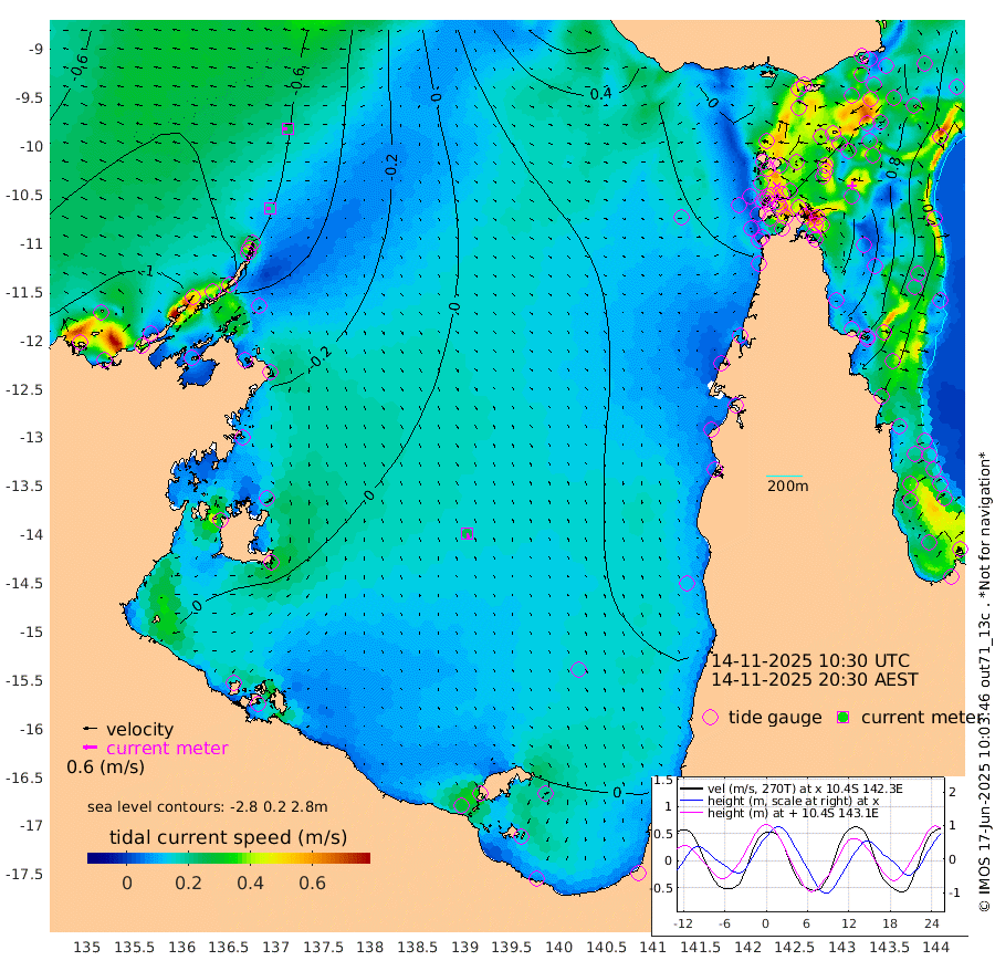 18cm/s -89T +3cm/s rms + 7cm/s -42T. ARA-GOC87 57m 25cm/s 170T +3cm/s rms + 2cm/s -2T. ARA-GOC87 60m 26cm/s -94T +2cm/s rms + 3cm/s 61T. ARA-GOC87 47m 111cm Daru 105cm Bobo Island 48cm Meer Island Barge 72cm Bramble Cay 97cm Unnamed Cay 102cm Pearce Cay 94cm Stephens Island 99cm Merrie England Shoals 114cm Mutacomal Reef 81cm Darnley Island Barge 59cm East Cay 94cm Yorke Island Barge 104cm Rennel Island 99cm Aureed Island 108cm Dungeness Reef 88cm Zagai Island 105cm Yam Island 61cm Dauan Island 56cm Saibai Island 76cm Phipi Reef 99cm Warrior Reef - West 56cm Mabuiag Island Barge 110cm Half Way Island 106cm Coconut Island 117cm Dugong Islet 107cm Poll Island 119cm Kirkcaldie Reef 97cm Suarji Island 100cm Sue Islet 55cm Hawkesbury Island 97cm Alert Patches 104cm Twin Island 39cm Badu Island 102cm St Pauls (Moa Island) 66cm Kubin (Moa Island) 85cm Ince Point 77cm Thursday Island 77cm Nardana Patches 61cm Turtle Head 49cm Round Island 39cm Goods Island 26cm Booby Island 30cm White Rocks Area 18cm Carpentaria 89cm Papou Point 14cm Bampfield Head 23cm Crab Island 38cm Red Wallis Island 67cm Packe Island 127cm Harrington Reef 53cm Herald Camp 33cm Sharp Point 66cm Red Island Point 76cm Possession Island 95cm Alpha Rock 113cm Frederick Point 108cm Wyborn Reef Light 110cm Tetley Island 51cm Triangle Reef 116cm Turtle Head Island 56cm Maclennan Cay 26cm Raine Island 92cm Mcsweeny Reef 79cm Collette Reef 46cm Shadwell Reef 85cm Hannibal Island 76cm Round Point 25cm Vrilya Point 70cm Cape Grenville 62cm Hicks Island 59cm Sir Charles Hardy Island 23cm Harvey Island 54cm Kay Reef 39cm Rocky Island 27cm Chapman Island 30cm Ham Reef 35cm Jubilee Reef 41cm Night Island 33cm Unnamed Reef No. 3 41cm Morris Island 28cm 1st 3 Mile Opening 38cm Creech Reef 45cm Fife Island 35cm Eden Reef 41cm Stanley Island 51cm Normanby River -101cm Yabooma Island -114cm Hutchison River -108cm Elcho Island -95cm North West Crocodile Island -70cm Cape Wessel -96cm Stevens Island -62cm Guluwuru Island -93cm Hopeful Bay -81cm Auster Point -69cm Two Island Bay -84cm Cadell Strait -62cm Mallison Island -60cm Melville Bay (Gove Harbour) -64cm Truant Island -43cm Cape Arnhem -36cm Cape Grey -27cm Hawk Island -33cm Milner Bay (Groote Eylandt) -17cm Cape Beatrice 4cm West Island -2cm Centre Island 13cm Mornington Island 7cm West Wellesley Islands 1cm Bountiful Island -36cm Albert River Mouth -46cm Sweers Island -11cm Karumba 41cm Nassau River Offshore 47cm Christmas Creek 27cm Archer River 26cm Boyd Point 20cm Weipa (Humbug Point) 23cm Pennefather River 25cm Cullen Point