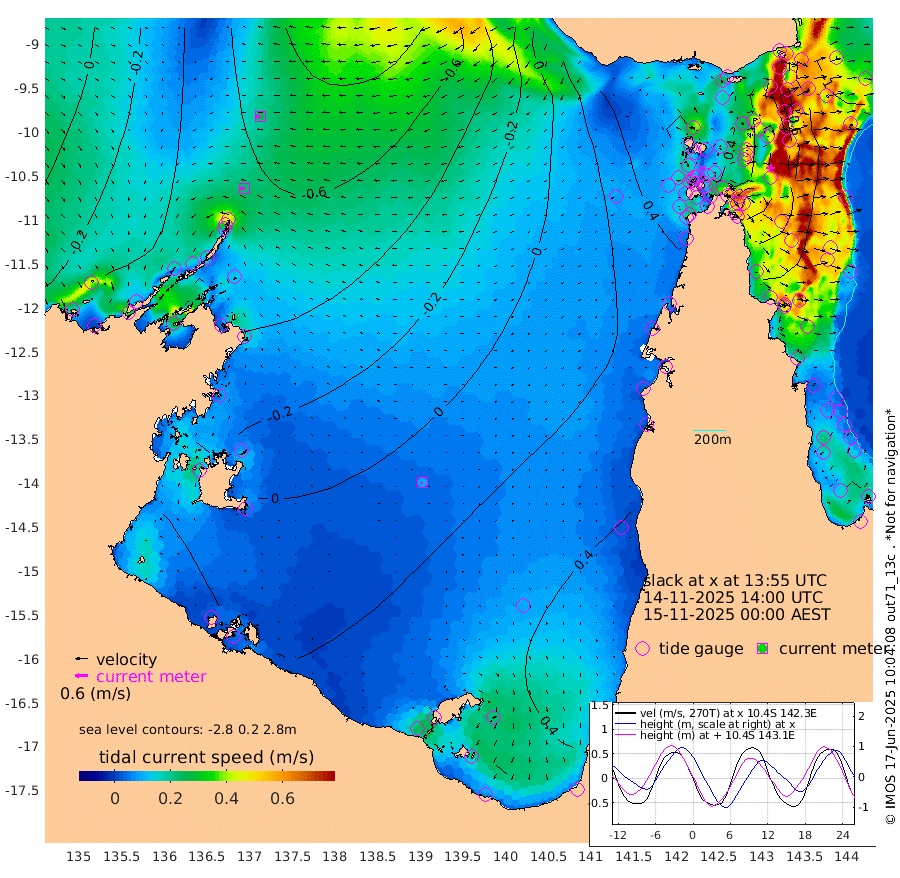 23cm/s -97T +3cm/s rms + 7cm/s -42T. ARA-GOC87 57m 10cm/s -136T +3cm/s rms + 2cm/s -2T. ARA-GOC87 60m 24cm/s -100T +2cm/s rms + 3cm/s 61T. ARA-GOC87 47m -50cm Daru -65cm Bobo Island -81cm Meer Island Barge -85cm Bramble Cay -74cm Unnamed Cay -67cm Pearce Cay -82cm Stephens Island -80cm Merrie England Shoals -55cm Mutacomal Reef -81cm Darnley Island Barge -91cm East Cay -65cm Yorke Island Barge -62cm Rennel Island -61cm Aureed Island -29cm Dungeness Reef 8cm Zagai Island 13cm Yam Island 71cm Dauan Island 57cm Saibai Island 73cm Phipi Reef 22cm Warrior Reef - West 57cm Mabuiag Island Barge -57cm Half Way Island -41cm Coconut Island -47cm Dugong Islet -10cm Poll Island -13cm Kirkcaldie Reef 14cm Suarji Island -10cm Sue Islet 58cm Hawkesbury Island 23cm Alert Patches 15cm Twin Island 67cm Badu Island 32cm St Pauls (Moa Island) 45cm Kubin (Moa Island) 36cm Ince Point 42cm Thursday Island 42cm Nardana Patches 46cm Turtle Head 38cm Round Island 49cm Goods Island 53cm Booby Island 43cm White Rocks Area 21cm Carpentaria 20cm Papou Point 11cm Bampfield Head 51cm Crab Island 50cm Red Wallis Island 45cm Packe Island -52cm Harrington Reef 40cm Herald Camp 19cm Sharp Point 45cm Red Island Point 22cm Possession Island -1cm Alpha Rock -14cm Frederick Point -55cm Wyborn Reef Light -44cm Tetley Island -61cm Triangle Reef -57cm Turtle Head Island -75cm Maclennan Cay -74cm Raine Island -72cm Mcsweeny Reef -74cm Collette Reef -72cm Shadwell Reef -84cm Hannibal Island -90cm Round Point 50cm Vrilya Point -85cm Cape Grenville -84cm Hicks Island -90cm Sir Charles Hardy Island -26cm Harvey Island -92cm Kay Reef -82cm Rocky Island -83cm Chapman Island -81cm Ham Reef -80cm Jubilee Reef -72cm Night Island -82cm Unnamed Reef No. 3 -87cm Morris Island -78cm 1st 3 Mile Opening -82cm Creech Reef -91cm Fife Island -100cm Eden Reef -90cm Stanley Island -102cm Normanby River -56cm Yabooma Island -65cm Hutchison River -52cm Elcho Island -37cm North West Crocodile Island -89cm Cape Wessel -70cm Stevens Island -97cm Guluwuru Island -66cm Hopeful Bay -75cm Auster Point -72cm Two Island Bay -75cm Cadell Strait -188cm Mallison Island -80cm Melville Bay (Gove Harbour) -92cm Truant Island -61cm Cape Arnhem -36cm Cape Grey -17cm Hawk Island 1cm Milner Bay (Groote Eylandt) 14cm Cape Beatrice 37cm West Island 38cm Centre Island 55cm Mornington Island 48cm West Wellesley Islands 65cm Bountiful Island 94cm Albert River Mouth 86cm Sweers Island 101cm Karumba 61cm Nassau River Offshore 45cm Christmas Creek 35cm Archer River 25cm Boyd Point 33cm Weipa (Humbug Point) 41cm Pennefather River 40cm Cullen Point