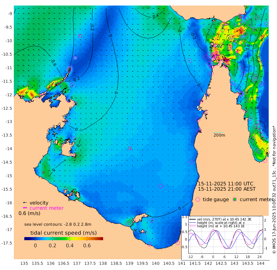 12cm/s -79T +3cm/s rms + 7cm/s -42T. ARA-GOC87 57m 20cm/s 171T +3cm/s rms + 2cm/s -2T. ARA-GOC87 60m 18cm/s -84T +2cm/s rms + 3cm/s 61T. ARA-GOC87 47m 106cm Daru 104cm Bobo Island 45cm Meer Island Barge 70cm Bramble Cay 93cm Unnamed Cay 100cm Pearce Cay 90cm Stephens Island 94cm Merrie England Shoals 110cm Mutacomal Reef 78cm Darnley Island Barge 55cm East Cay 90cm Yorke Island Barge 99cm Rennel Island 97cm Aureed Island 101cm Dungeness Reef 83cm Zagai Island 96cm Yam Island 48cm Dauan Island 46cm Saibai Island 62cm Phipi Reef 92cm Warrior Reef - West 39cm Mabuiag Island Barge 104cm Half Way Island 100cm Coconut Island 110cm Dugong Islet 100cm Poll Island 107cm Kirkcaldie Reef 87cm Suarji Island 91cm Sue Islet 22cm Hawkesbury Island 80cm Alert Patches 90cm Twin Island 10cm Badu Island 88cm St Pauls (Moa Island) 42cm Kubin (Moa Island) 66cm Ince Point 54cm Thursday Island 56cm Nardana Patches 35cm Turtle Head 24cm Round Island 7cm Goods Island -11cm Booby Island -3cm White Rocks Area -13cm Carpentaria 77cm Papou Point -19cm Bampfield Head -11cm Crab Island 4cm Red Wallis Island 39cm Packe Island 121cm Harrington Reef 21cm Herald Camp 29cm Sharp Point 40cm Red Island Point 58cm Possession Island 86cm Alpha Rock 103cm Frederick Point 105cm Wyborn Reef Light 106cm Tetley Island 48cm Triangle Reef 108cm Turtle Head Island 51cm Maclennan Cay 21cm Raine Island 87cm Mcsweeny Reef 74cm Collette Reef 41cm Shadwell Reef 82cm Hannibal Island 74cm Round Point -9cm Vrilya Point 66cm Cape Grenville 57cm Hicks Island 54cm Sir Charles Hardy Island 22cm Harvey Island 49cm Kay Reef 34cm Rocky Island 23cm Chapman Island 25cm Ham Reef 30cm Jubilee Reef 37cm Night Island 28cm Unnamed Reef No. 3 36cm Morris Island 21cm 1st 3 Mile Opening 32cm Creech Reef 41cm Fife Island 31cm Eden Reef 35cm Stanley Island 47cm Normanby River -69cm Yabooma Island -73cm Hutchison River -72cm Elcho Island -61cm North West Crocodile Island -38cm Cape Wessel -60cm Stevens Island -31cm Guluwuru Island -60cm Hopeful Bay -50cm Auster Point -36cm Two Island Bay -46cm Cadell Strait -25cm Mallison Island -31cm Melville Bay (Gove Harbour) -34cm Truant Island -23cm Cape Arnhem -22cm Cape Grey -12cm Hawk Island -21cm Milner Bay (Groote Eylandt) -9cm Cape Beatrice 6cm West Island 0cm Centre Island 14cm Mornington Island 7cm West Wellesley Islands 2cm Bountiful Island -24cm Albert River Mouth -30cm Sweers Island -4cm Karumba 31cm Nassau River Offshore 29cm Christmas Creek 4cm Archer River 2cm Boyd Point -5cm Weipa (Humbug Point) -4cm Pennefather River -3cm Cullen Point