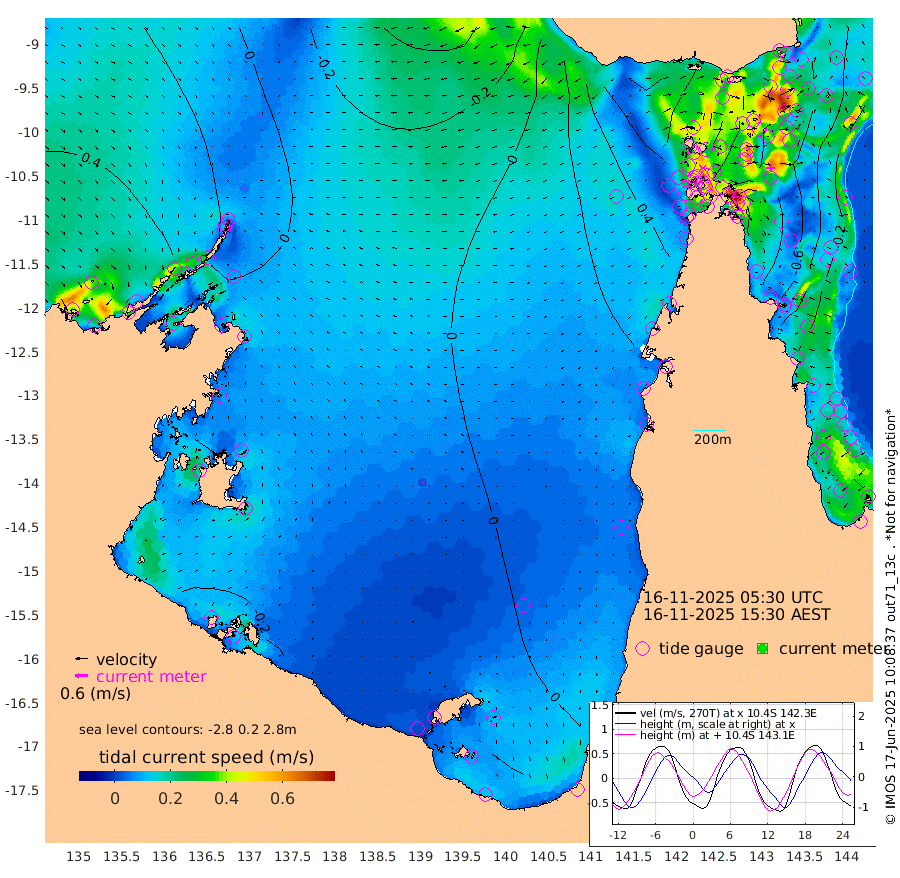 5cm/s -133T +3cm/s rms + 7cm/s -42T. ARA-GOC87 57m 2cm/s 177T +3cm/s rms + 2cm/s -2T. ARA-GOC87 60m 6cm/s -152T +2cm/s rms + 3cm/s 61T. ARA-GOC87 47m -69cm Daru -78cm Bobo Island -25cm Meer Island Barge -43cm Bramble Cay -57cm Unnamed Cay -74cm Pearce Cay -61cm Stephens Island -62cm Merrie England Shoals -67cm Mutacomal Reef -51cm Darnley Island Barge -31cm East Cay -60cm Yorke Island Barge -65cm Rennel Island -71cm Aureed Island -63cm Dungeness Reef -46cm Zagai Island -40cm Yam Island 10cm Dauan Island 8cm Saibai Island -16cm Phipi Reef -43cm Warrior Reef - West 12cm Mabuiag Island Barge -68cm Half Way Island -71cm Coconut Island -67cm Dugong Islet -59cm Poll Island -61cm Kirkcaldie Reef -46cm Suarji Island -50cm Sue Islet 59cm Hawkesbury Island -36cm Alert Patches -43cm Twin Island 49cm Badu Island -37cm St Pauls (Moa Island) 31cm Kubin (Moa Island) -13cm Ince Point 3cm Thursday Island 0cm Nardana Patches 25cm Turtle Head 45cm Round Island 58cm Goods Island 76cm Booby Island 67cm White Rocks Area 61cm Carpentaria -33cm Papou Point 87cm Bampfield Head 57cm Crab Island 65cm Red Wallis Island 38cm Packe Island -85cm Harrington Reef 77cm Herald Camp -16cm Sharp Point 11cm Red Island Point -12cm Possession Island -37cm Alpha Rock -59cm Frederick Point -66cm Wyborn Reef Light -64cm Tetley Island -24cm Triangle Reef -76cm Turtle Head Island -23cm Maclennan Cay -6cm Raine Island -58cm Mcsweeny Reef -49cm Collette Reef -21cm Shadwell Reef -55cm Hannibal Island -46cm Round Point 48cm Vrilya Point -37cm Cape Grenville -31cm Hicks Island -14cm Sir Charles Hardy Island -12cm Harvey Island -23cm Kay Reef -12cm Rocky Island -3cm Chapman Island -4cm Ham Reef -10cm Jubilee Reef -18cm Night Island -9cm Unnamed Reef No. 3 -16cm Morris Island -4cm 1st 3 Mile Opening -13cm Creech Reef -21cm Fife Island -13cm Eden Reef -13cm Stanley Island -22cm Normanby River 65cm Yabooma Island 48cm Hutchison River 46cm Elcho Island 43cm North West Crocodile Island 24cm Cape Wessel 38cm Stevens Island 8cm Guluwuru Island 42cm Hopeful Bay 29cm Auster Point 29cm Two Island Bay 23cm Cadell Strait 21cm Mallison Island 10cm Melville Bay (Gove Harbour) 12cm Truant Island 2cm Cape Arnhem -7cm Cape Grey -15cm Hawk Island -17cm Milner Bay (Groote Eylandt) -24cm Cape Beatrice -35cm West Island -37cm Centre Island -41cm Mornington Island -33cm West Wellesley Islands -16cm Bountiful Island -31cm Albert River Mouth -44cm Sweers Island -39cm Karumba -18cm Nassau River Offshore 5cm Christmas Creek 25cm Archer River 36cm Boyd Point 50cm Weipa (Humbug Point) 20cm Pennefather River 56cm Cullen Point