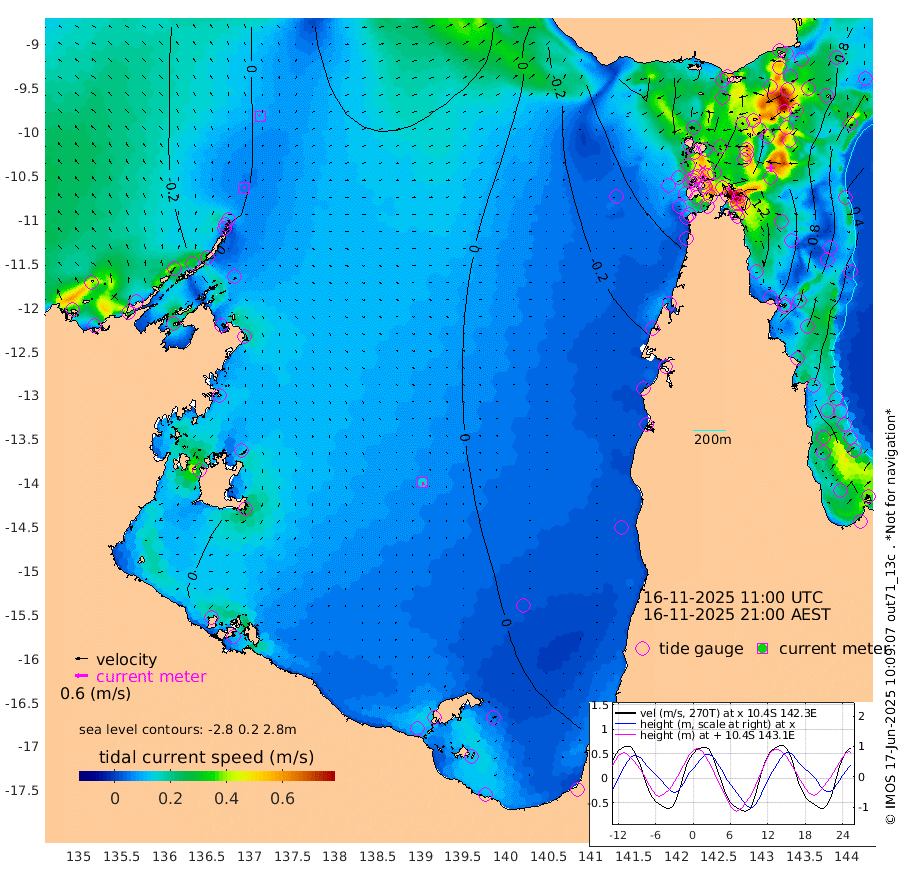 6cm/s -44T +3cm/s rms + 7cm/s -42T. ARA-GOC87 57m 15cm/s 176T +3cm/s rms + 2cm/s -2T. ARA-GOC87 60m 9cm/s -55T +2cm/s rms + 3cm/s 61T. ARA-GOC87 47m 101cm Daru 104cm Bobo Island 52cm Meer Island Barge 78cm Bramble Cay 94cm Unnamed Cay 100cm Pearce Cay 93cm Stephens Island 97cm Merrie England Shoals 107cm Mutacomal Reef 81cm Darnley Island Barge 64cm East Cay 88cm Yorke Island Barge 95cm Rennel Island 96cm Aureed Island 89cm Dungeness Reef 68cm Zagai Island 76cm Yam Island 22cm Dauan Island 24cm Saibai Island 34cm Phipi Reef 74cm Warrior Reef - West 11cm Mabuiag Island Barge 98cm Half Way Island 92cm Coconut Island 100cm Dugong Islet 85cm Poll Island 88cm Kirkcaldie Reef 65cm Suarji Island 74cm Sue Islet -17cm Hawkesbury Island 52cm Alert Patches 65cm Twin Island -26cm Badu Island 59cm St Pauls (Moa Island) 9cm Kubin (Moa Island) 36cm Ince Point 21cm Thursday Island 24cm Nardana Patches 1cm Turtle Head -8cm Round Island -29cm Goods Island -52cm Booby Island -39cm White Rocks Area -49cm Carpentaria 52cm Papou Point -53cm Bampfield Head -48cm Crab Island -33cm Red Wallis Island 7cm Packe Island 110cm Harrington Reef -16cm Herald Camp 19cm Sharp Point 6cm Red Island Point 30cm Possession Island 69cm Alpha Rock 85cm Frederick Point 101cm Wyborn Reef Light 99cm Tetley Island 53cm Triangle Reef 97cm Turtle Head Island 55cm Maclennan Cay 29cm Raine Island 88cm Mcsweeny Reef 77cm Collette Reef 47cm Shadwell Reef 87cm Hannibal Island 82cm Round Point -49cm Vrilya Point 72cm Cape Grenville 64cm Hicks Island 63cm Sir Charles Hardy Island 23cm Harvey Island 59cm Kay Reef 44cm Rocky Island 36cm Chapman Island 35cm Ham Reef 39cm Jubilee Reef 44cm Night Island 38cm Unnamed Reef No. 3 46cm Morris Island 27cm 1st 3 Mile Opening 40cm Creech Reef 52cm Fife Island 46cm Eden Reef 45cm Stanley Island 60cm Normanby River -19cm Yabooma Island -14cm Hutchison River -19cm Elcho Island -13cm North West Crocodile Island 7cm Cape Wessel -6cm Stevens Island 13cm Guluwuru Island -9cm Hopeful Bay -7cm Auster Point 7cm Two Island Bay 9cm Cadell Strait 49cm Mallison Island 10cm Melville Bay (Gove Harbour) 9cm Truant Island 6cm Cape Arnhem -3cm Cape Grey 6cm Hawk Island -9cm Milner Bay (Groote Eylandt) -1cm Cape Beatrice 2cm West Island -5cm Centre Island 15cm Mornington Island 8cm West Wellesley Islands 9cm Bountiful Island -8cm Albert River Mouth -12cm Sweers Island 4cm Karumba 24cm Nassau River Offshore 15cm Christmas Creek -15cm Archer River -20cm Boyd Point -27cm Weipa (Humbug Point) -34cm Pennefather River -35cm Cullen Point