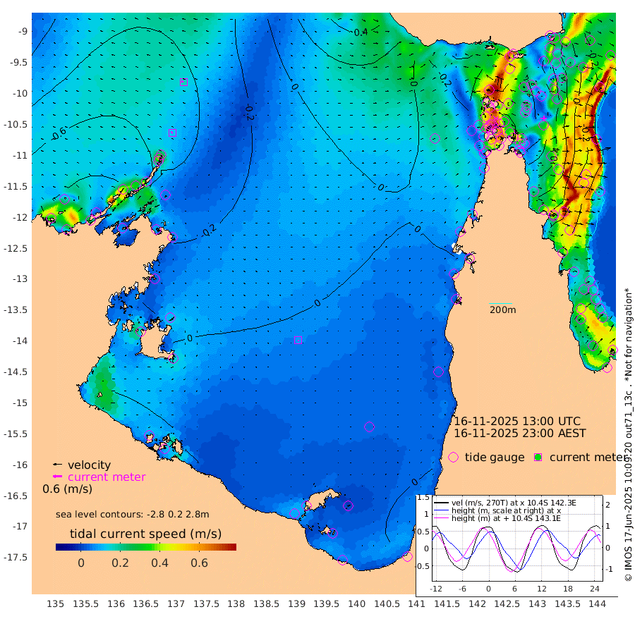 13cm/s -73T +3cm/s rms + 7cm/s -42T. ARA-GOC87 57m 8cm/s 174T +3cm/s rms + 2cm/s -2T. ARA-GOC87 60m 16cm/s -77T +2cm/s rms + 3cm/s 61T. ARA-GOC87 47m 42cm Daru 37cm Bobo Island -23cm Meer Island Barge -10cm Bramble Cay 16cm Unnamed Cay 27cm Pearce Cay 11cm Stephens Island 12cm Merrie England Shoals 40cm Mutacomal Reef 5cm Darnley Island Barge -24cm East Cay 25cm Yorke Island Barge 29cm Rennel Island 35cm Aureed Island 50cm Dungeness Reef 66cm Zagai Island 72cm Yam Island 61cm Dauan Island 56cm Saibai Island 65cm Phipi Reef 72cm Warrior Reef - West 46cm Mabuiag Island Barge 38cm Half Way Island 45cm Coconut Island 49cm Dugong Islet 63cm Poll Island 61cm Kirkcaldie Reef 68cm Suarji Island 58cm Sue Islet 7cm Hawkesbury Island 59cm Alert Patches 66cm Twin Island 6cm Badu Island 76cm St Pauls (Moa Island) 29cm Kubin (Moa Island) 53cm Ince Point 43cm Thursday Island 46cm Nardana Patches 21cm Turtle Head 11cm Round Island -8cm Goods Island -20cm Booby Island -17cm White Rocks Area -17cm Carpentaria 62cm Papou Point -39cm Bampfield Head -17cm Crab Island -7cm Red Wallis Island 19cm Packe Island 55cm Harrington Reef 2cm Herald Camp 32cm Sharp Point 23cm Red Island Point 42cm Possession Island 59cm Alpha Rock 61cm Frederick Point 41cm Wyborn Reef Light 49cm Tetley Island -9cm Triangle Reef 42cm Turtle Head Island -17cm Maclennan Cay -43cm Raine Island 15cm Mcsweeny Reef 2cm Collette Reef -23cm Shadwell Reef 1cm Hannibal Island -11cm Round Point -12cm Vrilya Point -13cm Cape Grenville -18cm Hicks Island -26cm Sir Charles Hardy Island -2cm Harvey Island -33cm Kay Reef -37cm Rocky Island -47cm Chapman Island -43cm Ham Reef -38cm Jubilee Reef -26cm Night Island -42cm Unnamed Reef No. 3 -39cm Morris Island -44cm 1st 3 Mile Opening -38cm Creech Reef -36cm Fife Island -51cm Eden Reef -41cm Stanley Island -38cm Normanby River -86cm Yabooma Island -95cm Hutchison River -83cm Elcho Island -70cm North West Crocodile Island -59cm Cape Wessel -77cm Stevens Island -58cm Guluwuru Island -77cm Hopeful Bay -66cm Auster Point -51cm Two Island Bay -69cm Cadell Strait -95cm Mallison Island -52cm Melville Bay (Gove Harbour) -57cm Truant Island -35cm Cape Arnhem -25cm Cape Grey -7cm Hawk Island 1cm Milner Bay (Groote Eylandt) 10cm Cape Beatrice 35cm West Island 34cm Centre Island 30cm Mornington Island 23cm West Wellesley Islands 15cm Bountiful Island 16cm Albert River Mouth 16cm Sweers Island 28cm Karumba 25cm Nassau River Offshore 10cm Christmas Creek -15cm Archer River -14cm Boyd Point -24cm Weipa (Humbug Point) -8cm Pennefather River -10cm Cullen Point